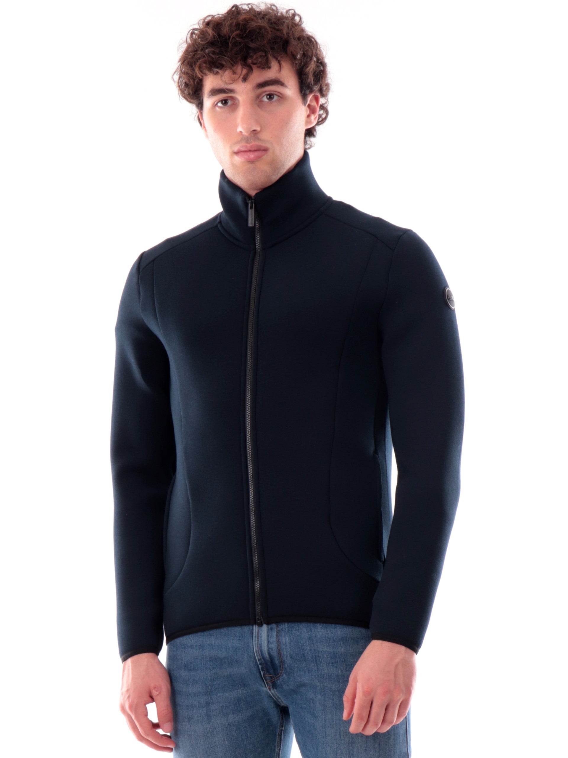 Felpa Colmar blu full zip girocollo da uomo tessuto tecnico 62914XF. Questa giacca uomo Colmar blu girocollo ha la chiusura full zip centrale, due tasche laterali aperte e il patch Colmar applicato sulla manica sinistra.