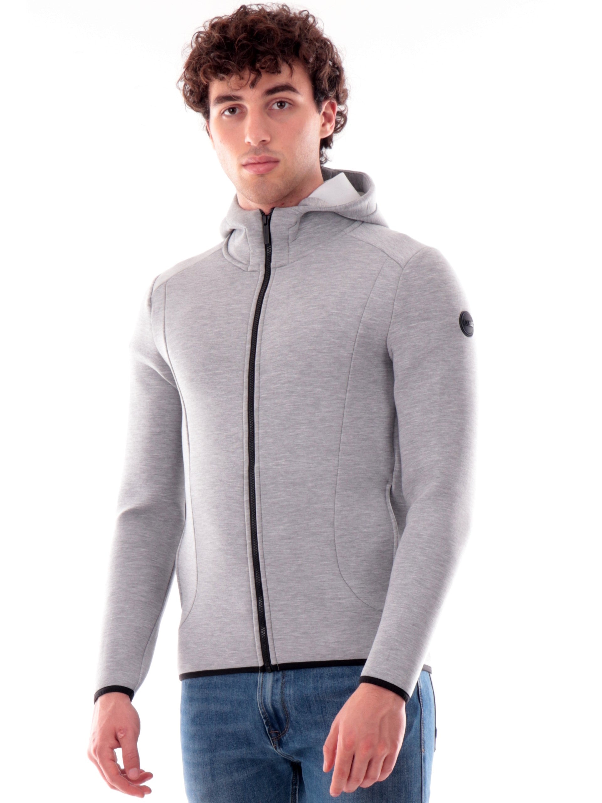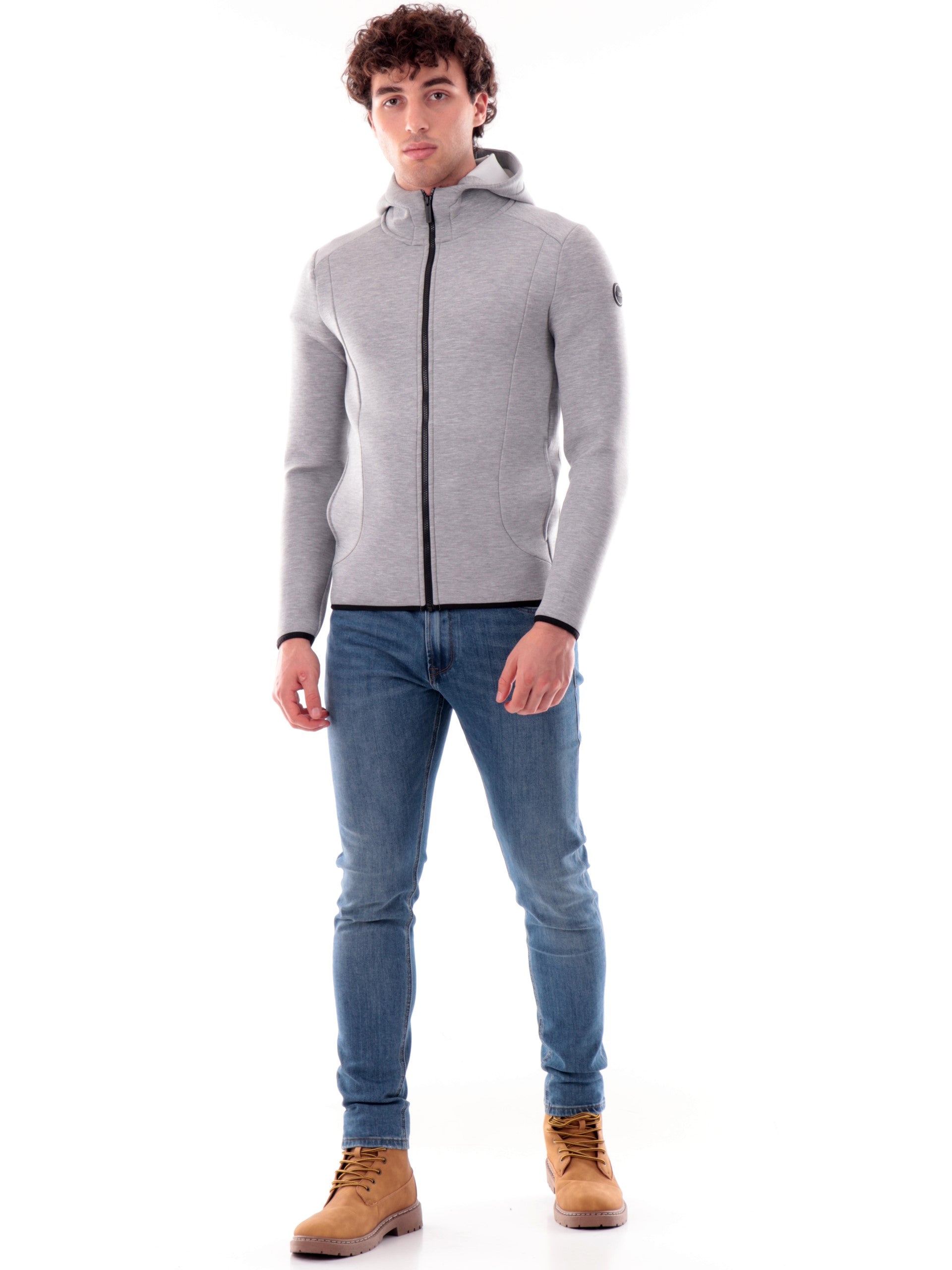 Felpa Colmar grigia full zip con cappuccio da uomo tessuto tecnico 62904XF. Questa giacca uomo Colmar grigia ha il cappuccio fisso, la chiusura full zip centrale, due tasche laterali aperte e il patch Colmar applicato sulla manica sinistra.
