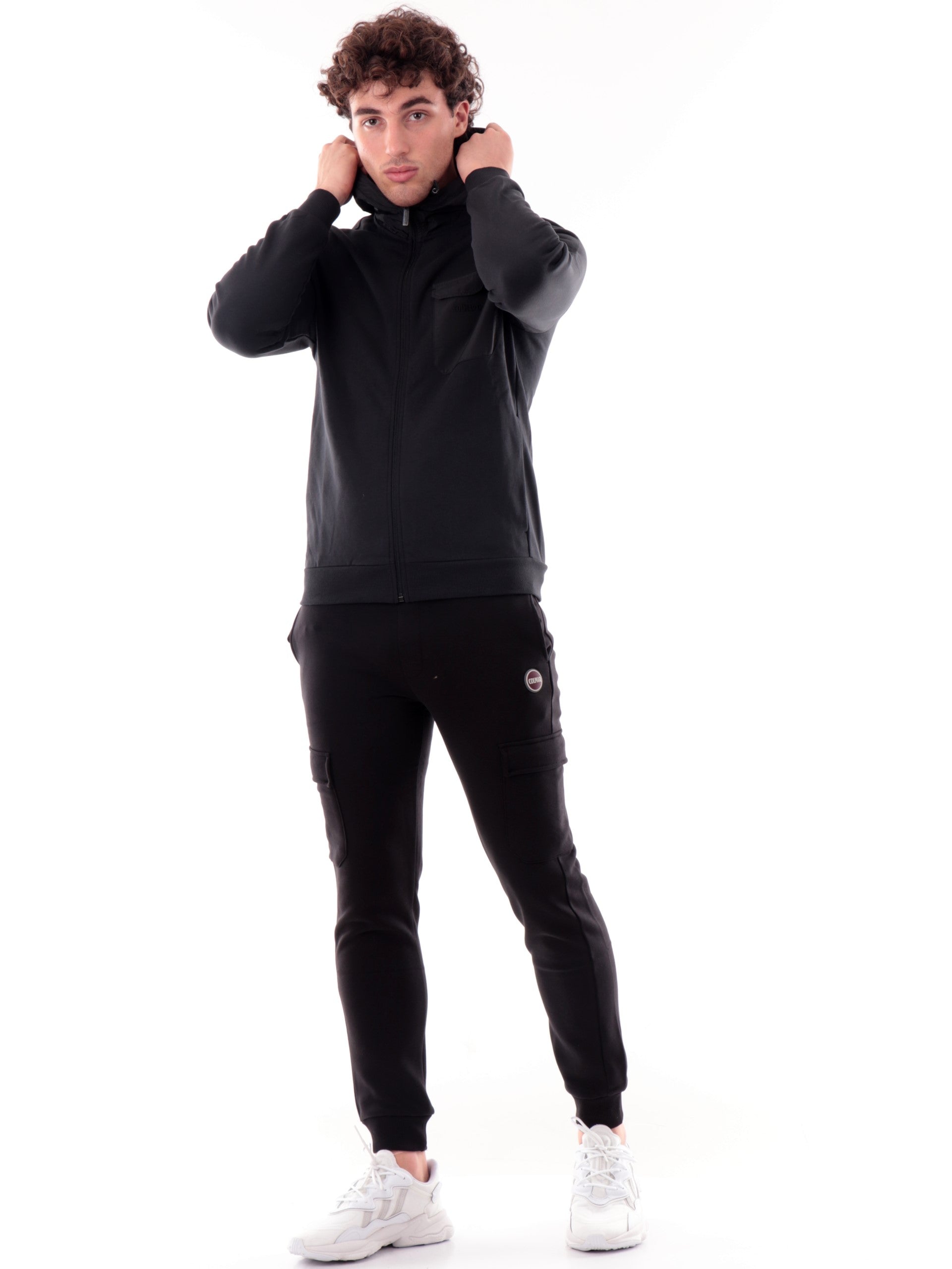 Felpa Colmar nera da uomo full zip con cappuccio inserti tecnico 62816ZJ