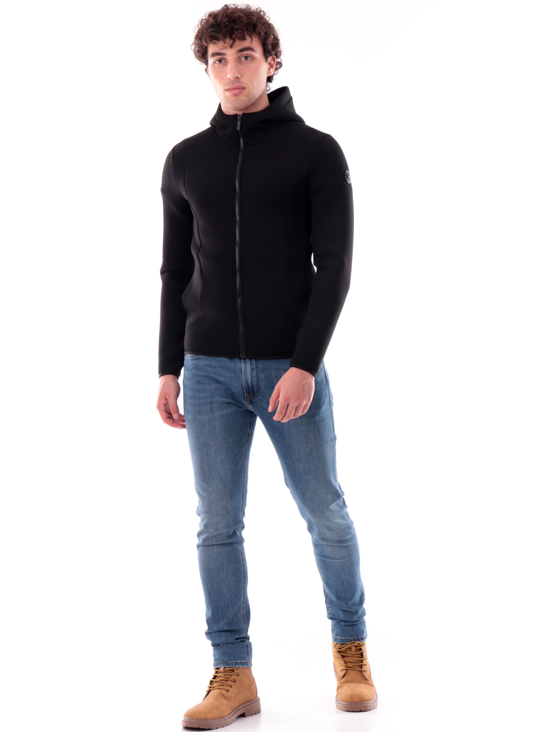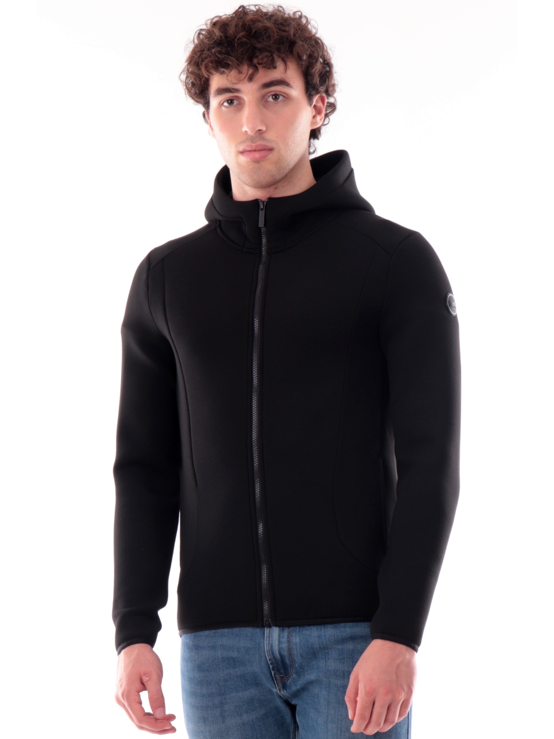 Felpa Colmar nera full zip con cappuccio da uomo tessuto tecnico 62904XF. Questa giacca uomo Colmar nera ha il cappuccio fisso, la chiusura full zip centrale, due tasche laterali aperte e il patch Colmar applicato sulla manica sinistra.