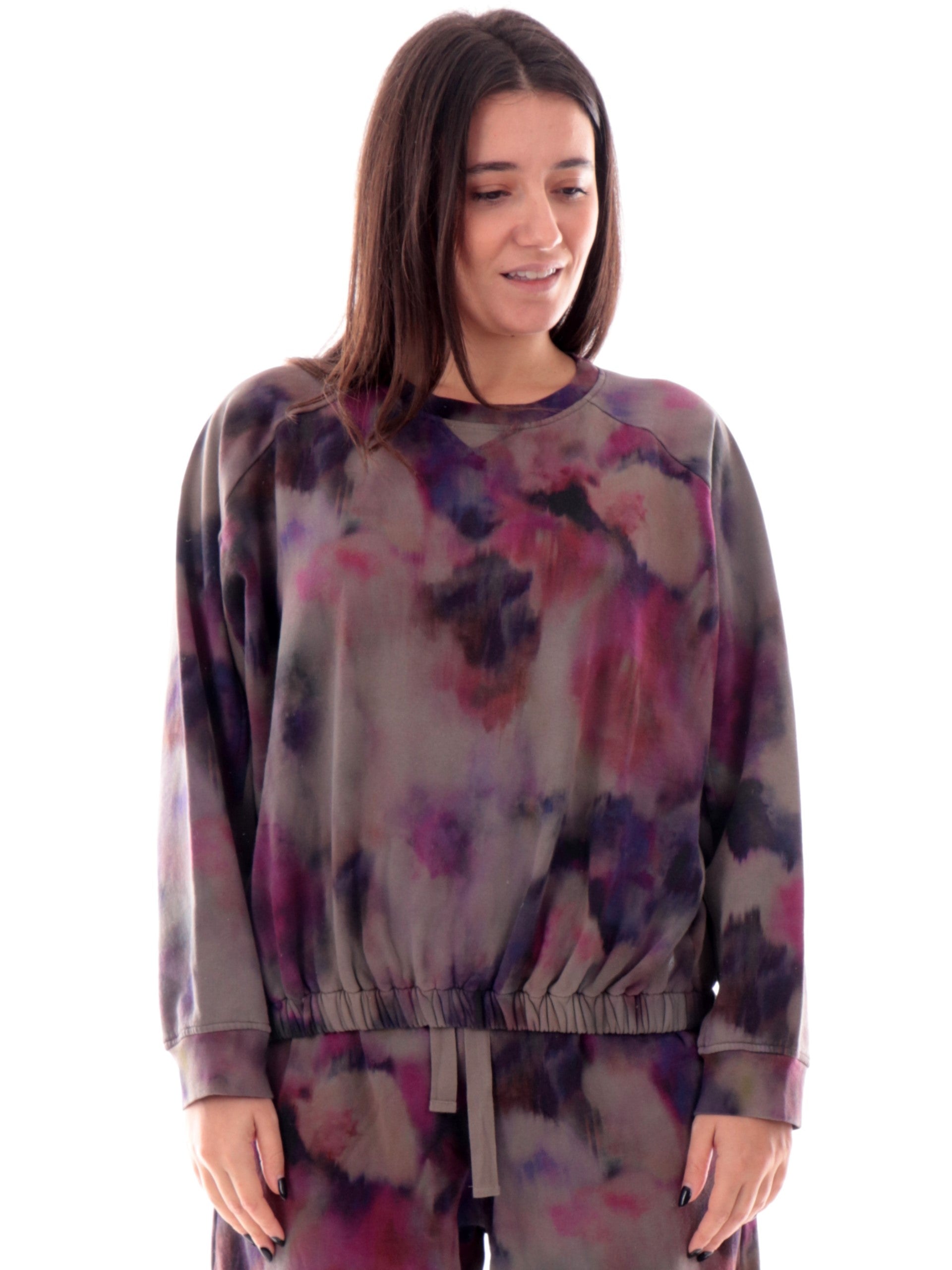 Felpa viola Deha over da donna felpata. Questa felpa Deha girocollo realizzata 100% in puro cotone è caratterizzata dalla fantasia multicolor allover, polsini e fondo elasticizzati. Grazie alla vestibilità morbida e a girocollo, questa felpa donna Deha è perfetta per il relax e lo sport. Un must-have per ogni donna che ama sentirsi comoda in ogni occasione.