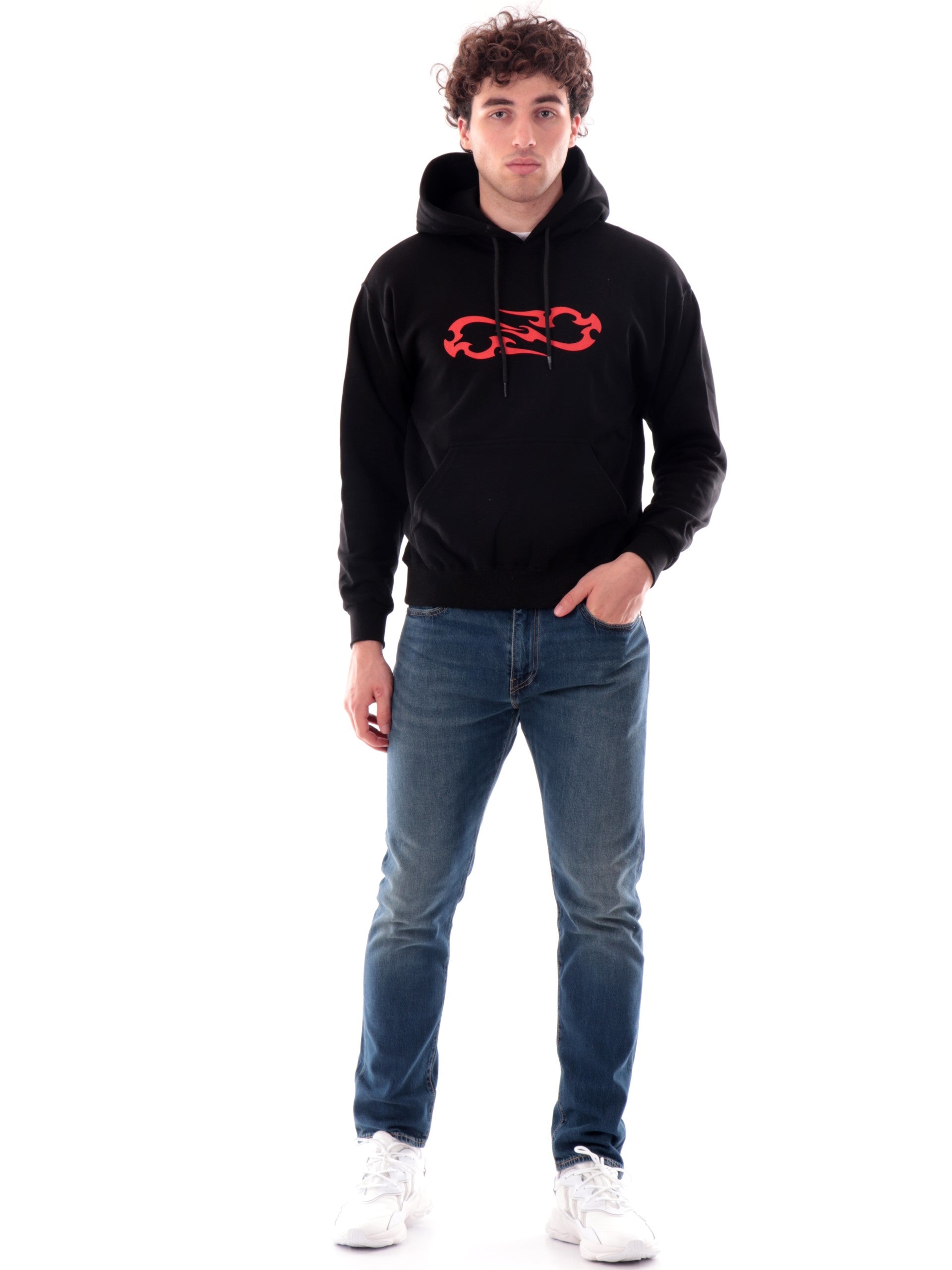 Felpa Propaganda nera Logo Quill 25FWPRFE, realizzata in 100% puro cotone. Questa felpa Propaganda ha il cappuccio fisso regolabile con laccetti, una comoda tasca a marsupio, la maxi stampa Logo Quill sul lato posteriore, il logo Propaganda stampato sul davanti, polsini e fondo elasticizzati.