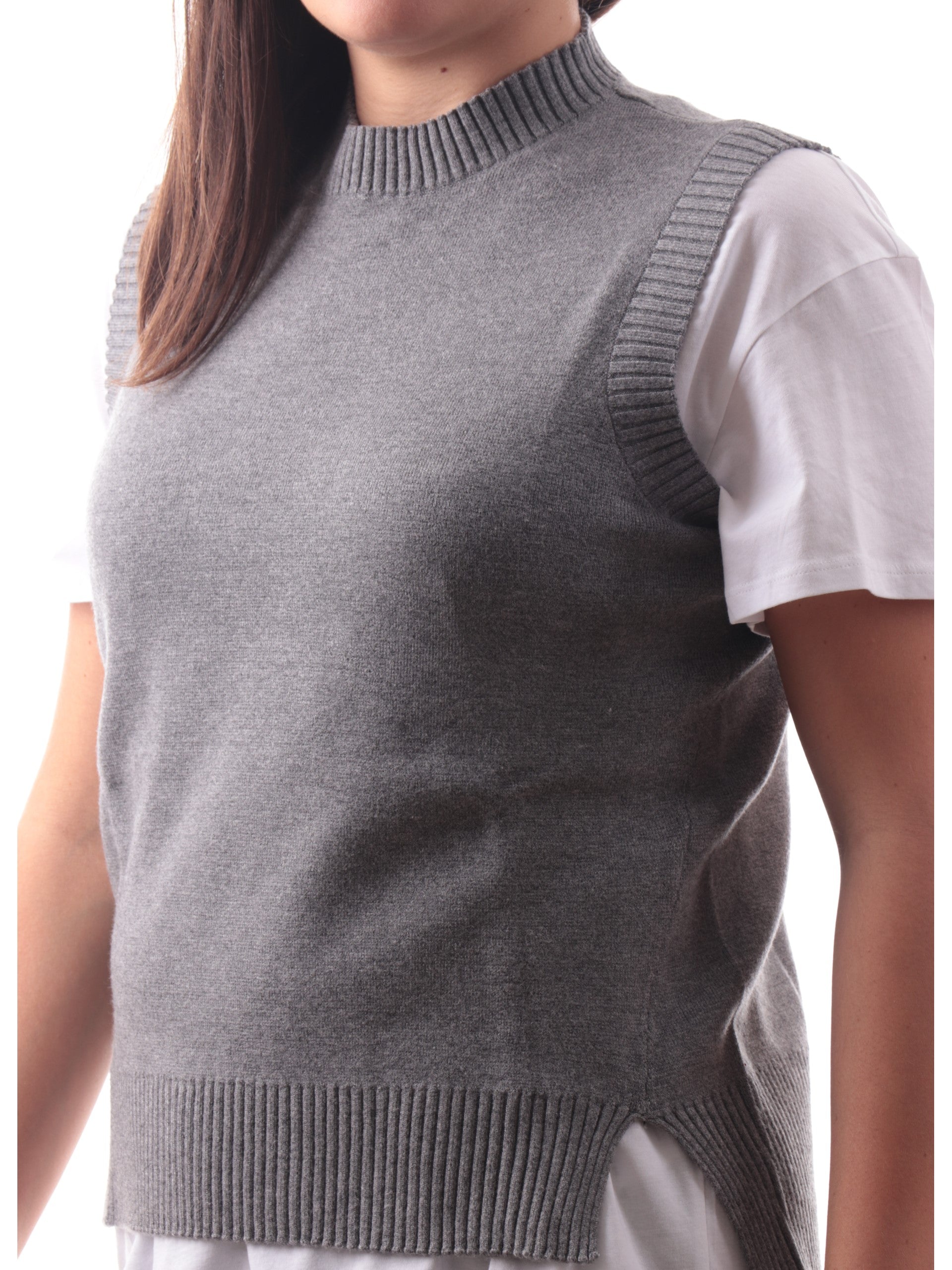 Gilet Ragno grigio da donna realizzato in morbida viscosa elasticizzata con bordi a costine e tessuto avvolgente. Questo gilet grigio da donna è un basic perfetto da abbinare come preferisci.