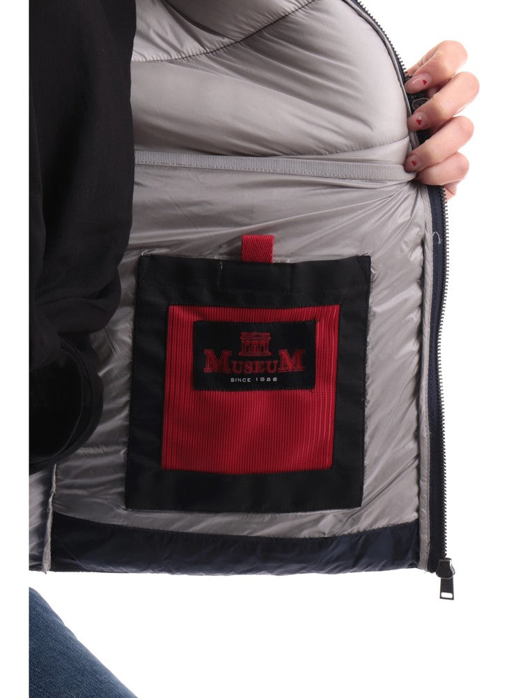 Giubbino Museum blu da donna Arlette JA38PL986, realizzato in morbido tessuto a tinta unita. Questo giubbino Museum blu ha il cappuccio fisso, la chiusura full zip centrale con doppio cursore logato,due tasche laterali con zip e il patch del brand applicato sulla manica sinistra a contrasto colore.