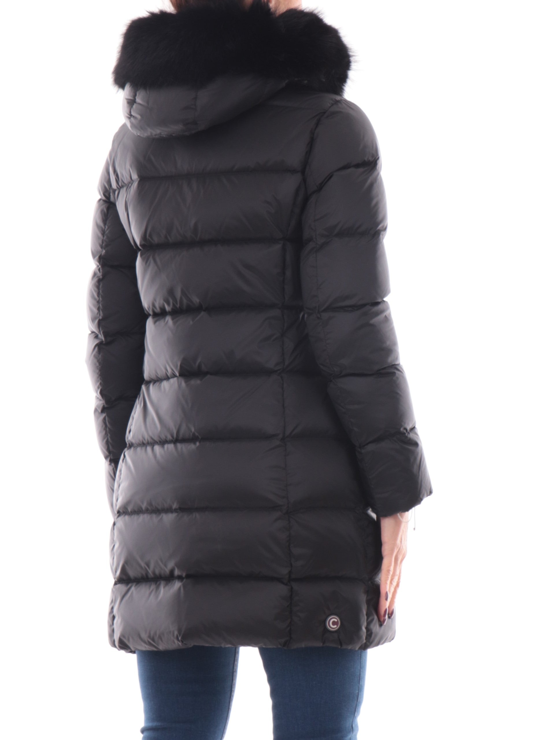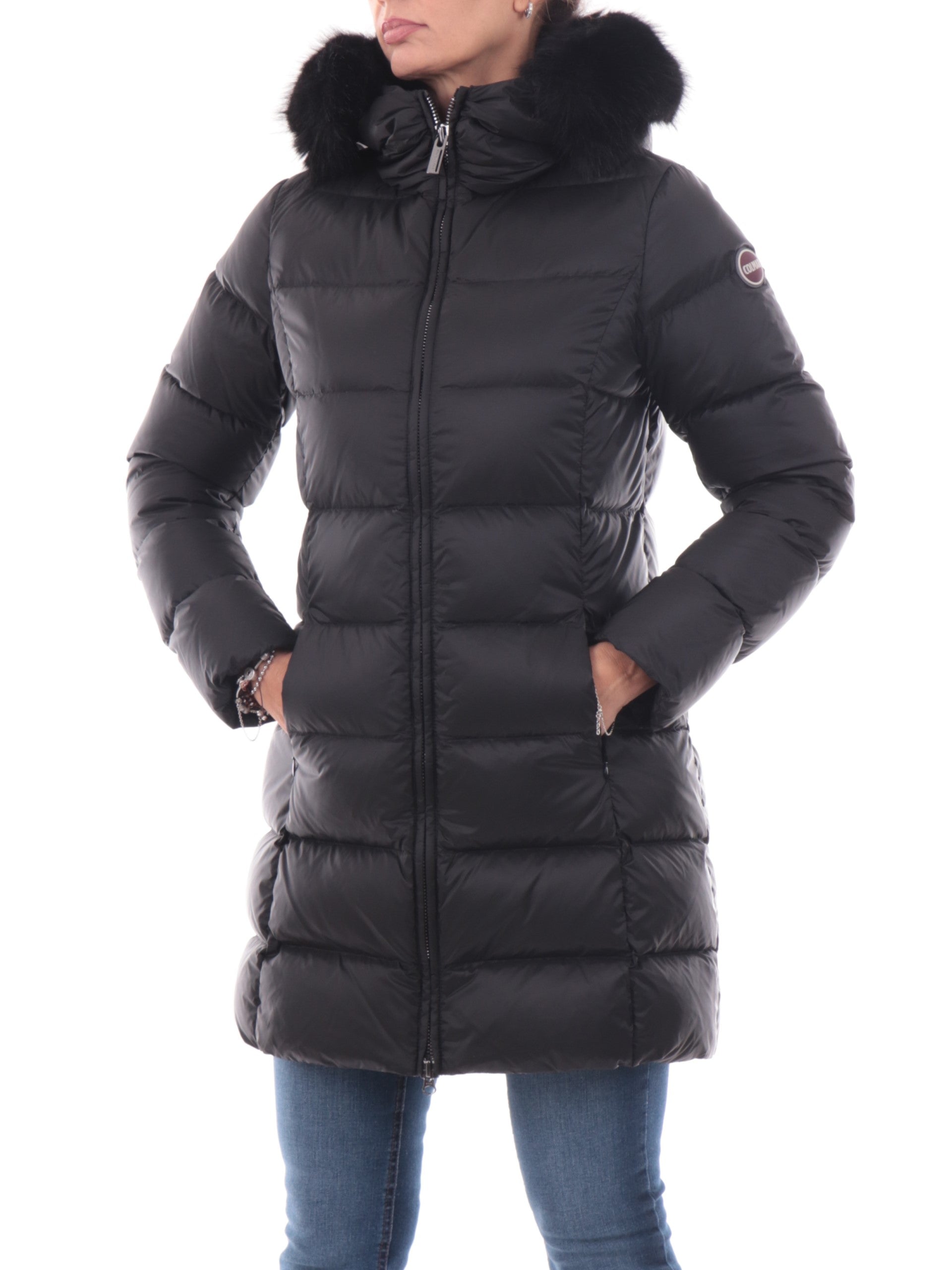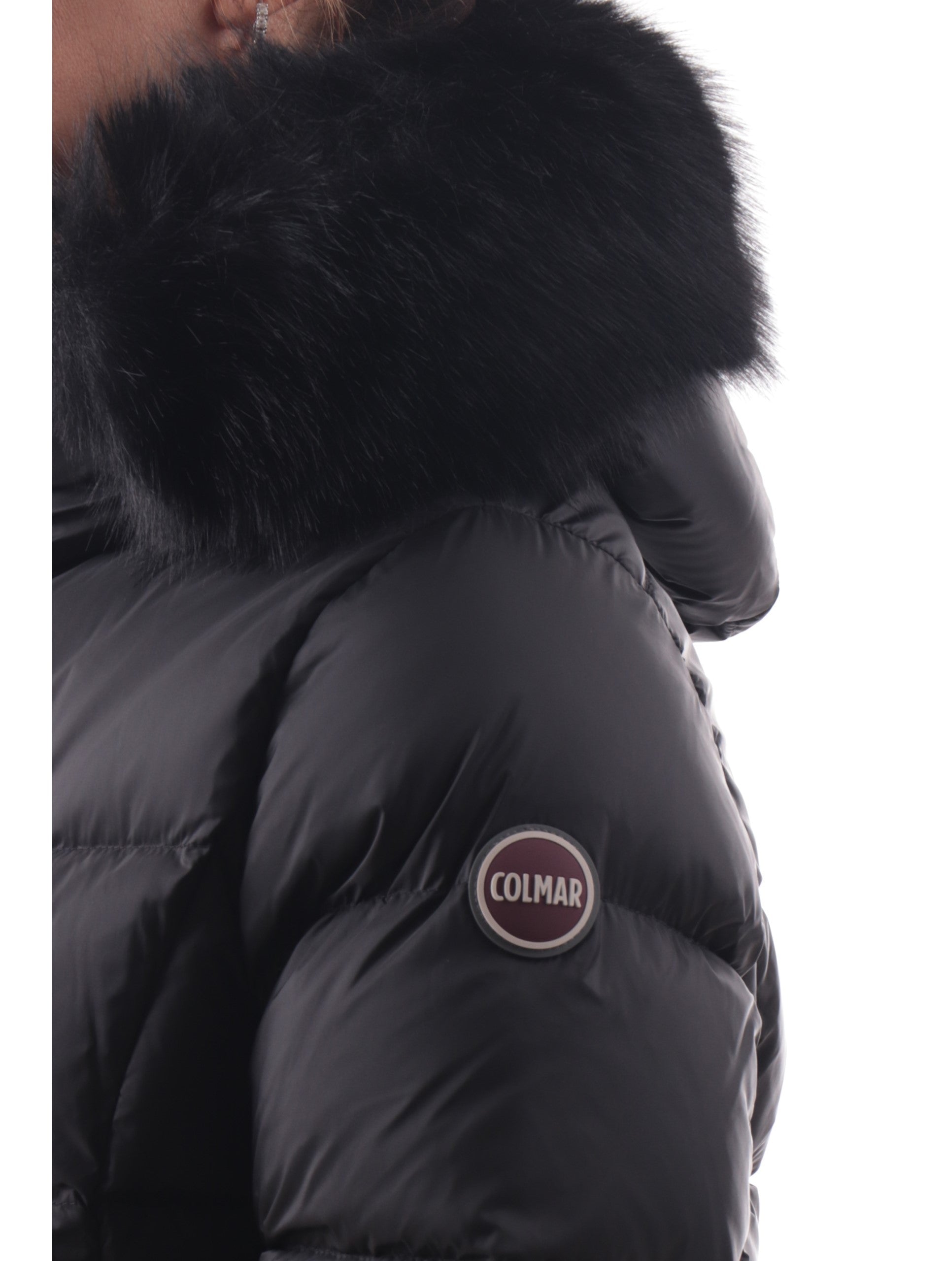 Giubbotto lungo Colmar nero da donna con cappuccio con ecopelliccia removibile. Questo giubbotto da donna realizzato da un tessuto trapuntato in vera piuma, calda ed avvolgente al tatto perfetto per la stagione invernale. Questo giubbino Colmar è caratterizzato dal cappuccio fisso con eco pelliccia removibile, scaldacollo, due tasche laterali co zip, il logo del brand applicato sulla manica sinistra e polsini e fondo regolari
