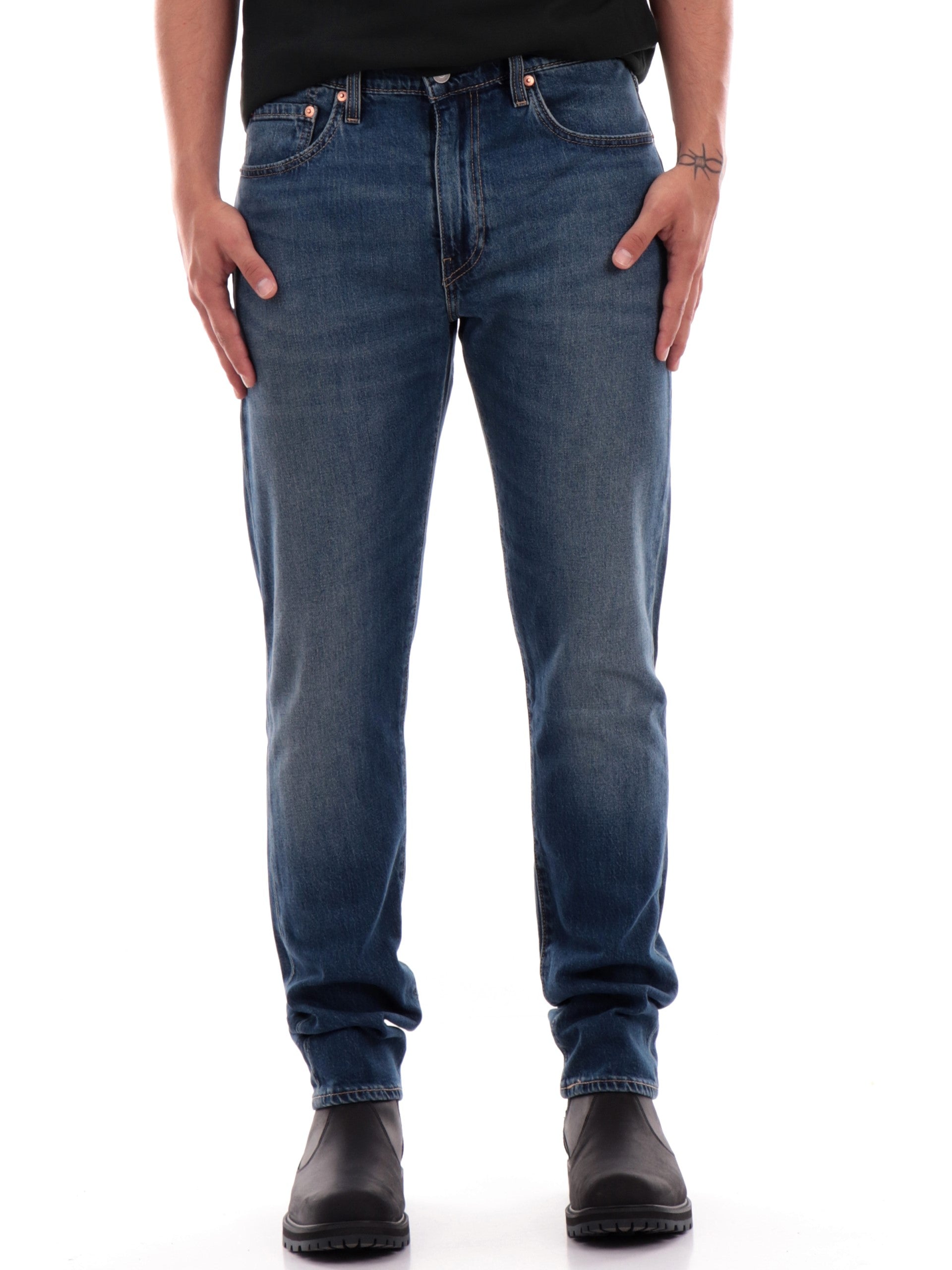 Jeans Levi's 512 Slim Taper blu da uomo 288331. Questi pantaloni jeans Levi's hanno la chiusura con bottone più zip, due tasche laterali di cui la destra con taschino, due tasche posteriori a filo e la vestibilità slim.