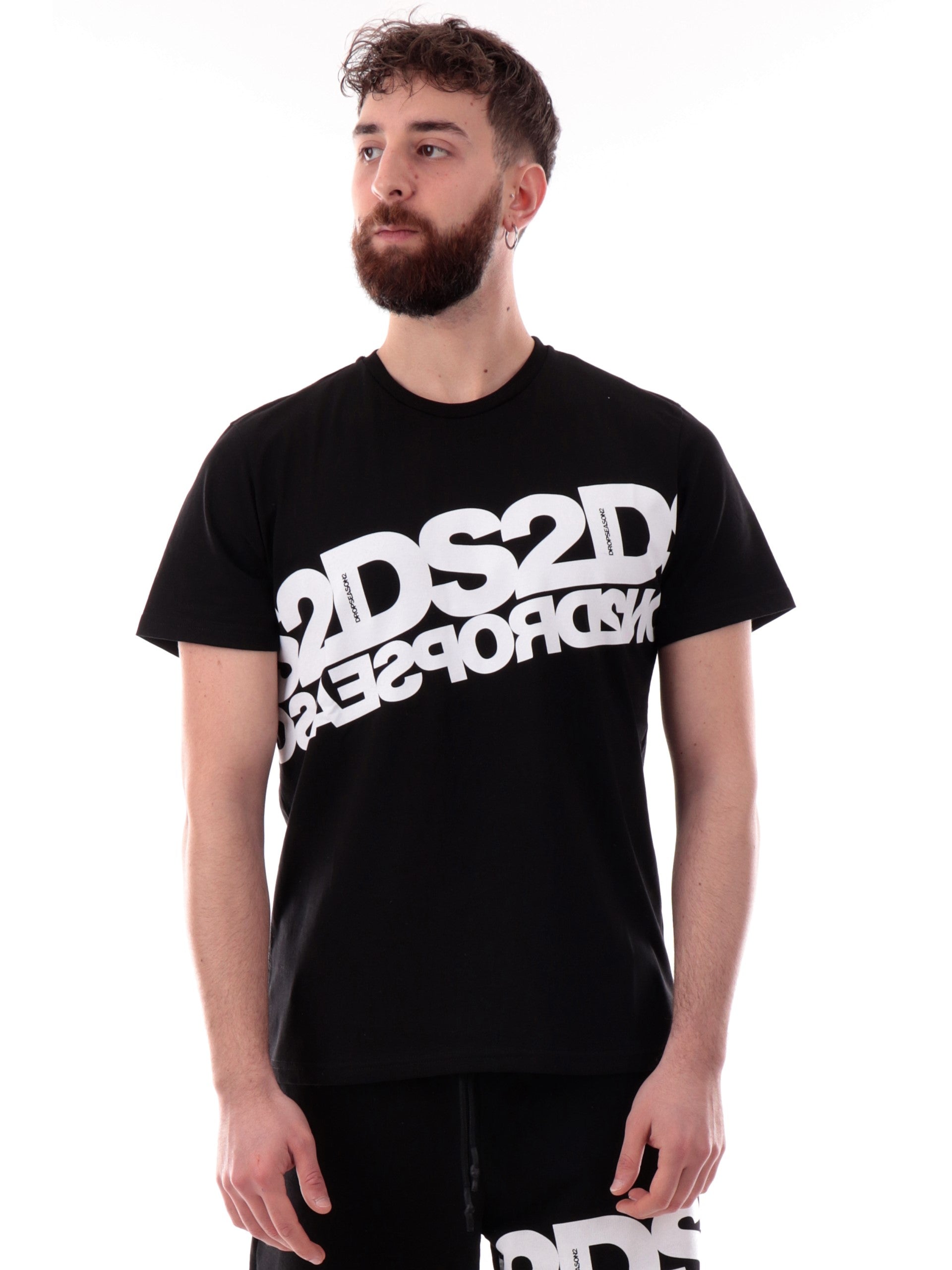 T-shirt DS2 nera da uomo maxi logo DS2 bianco SS25240