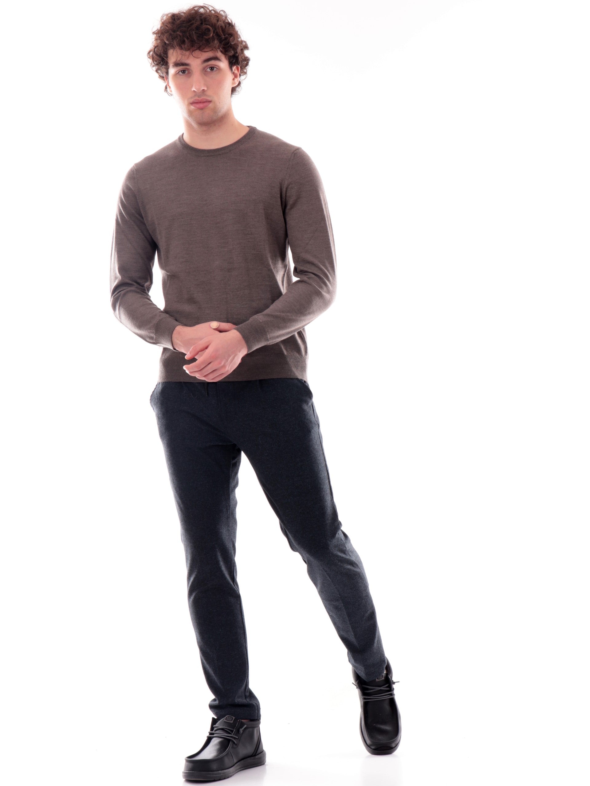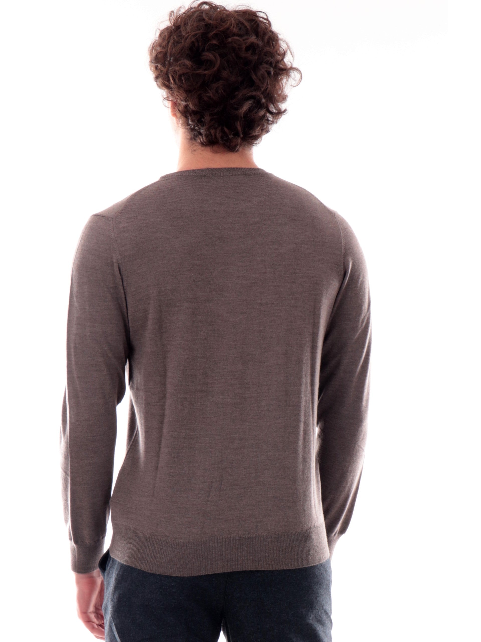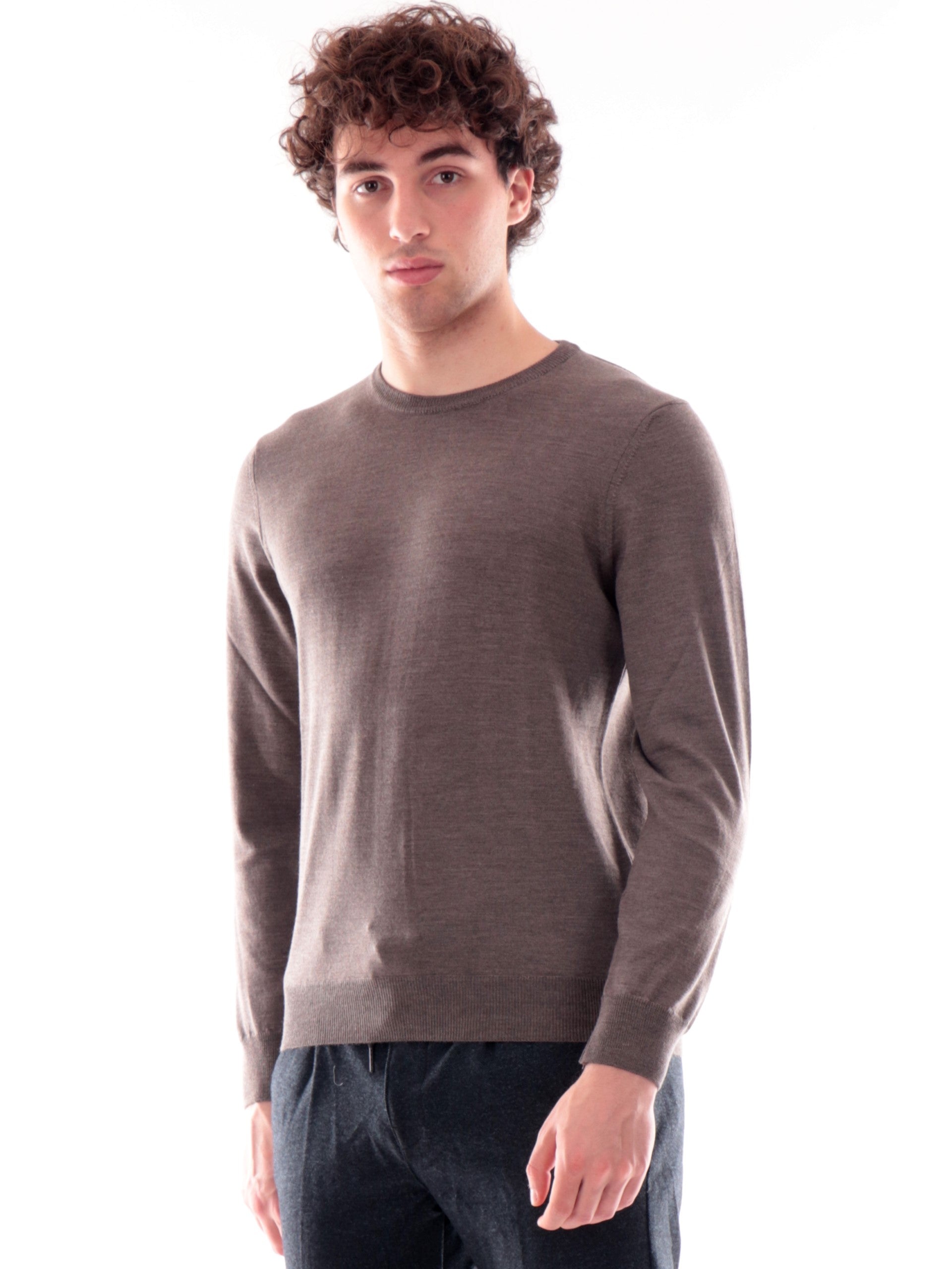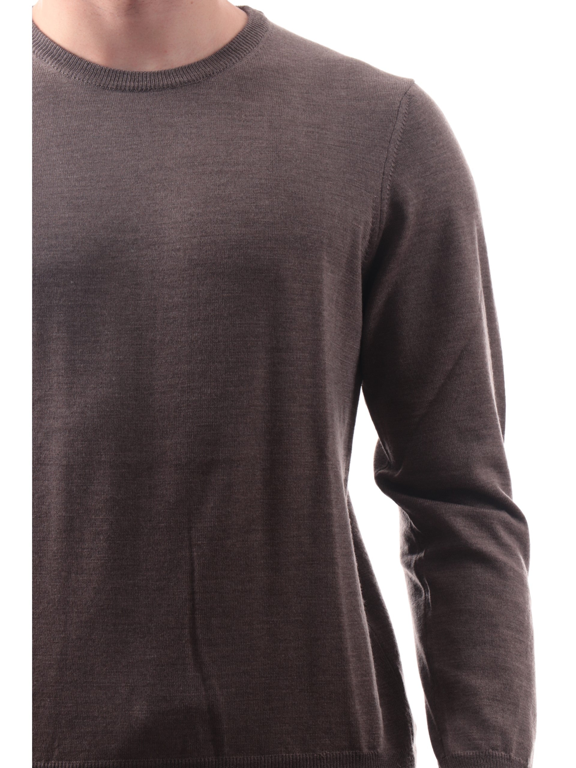 Maglia Velk girocollo marrone da uomo. Questa maglia a girocollo realizzata 100% in lana merino che la rende calda, morbida ed avvolgente al tatto è caratterizzata dal girocollo, maniche lunghe, polsini e fondo elasticizzati a costine, Questo maglione Velk marrone da uomo è perfetta per un look casual