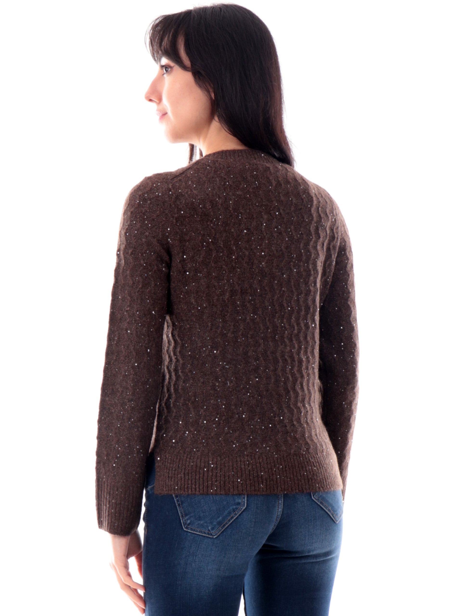 Maglione Anis White marrone da donna con pailletes 255W4033055