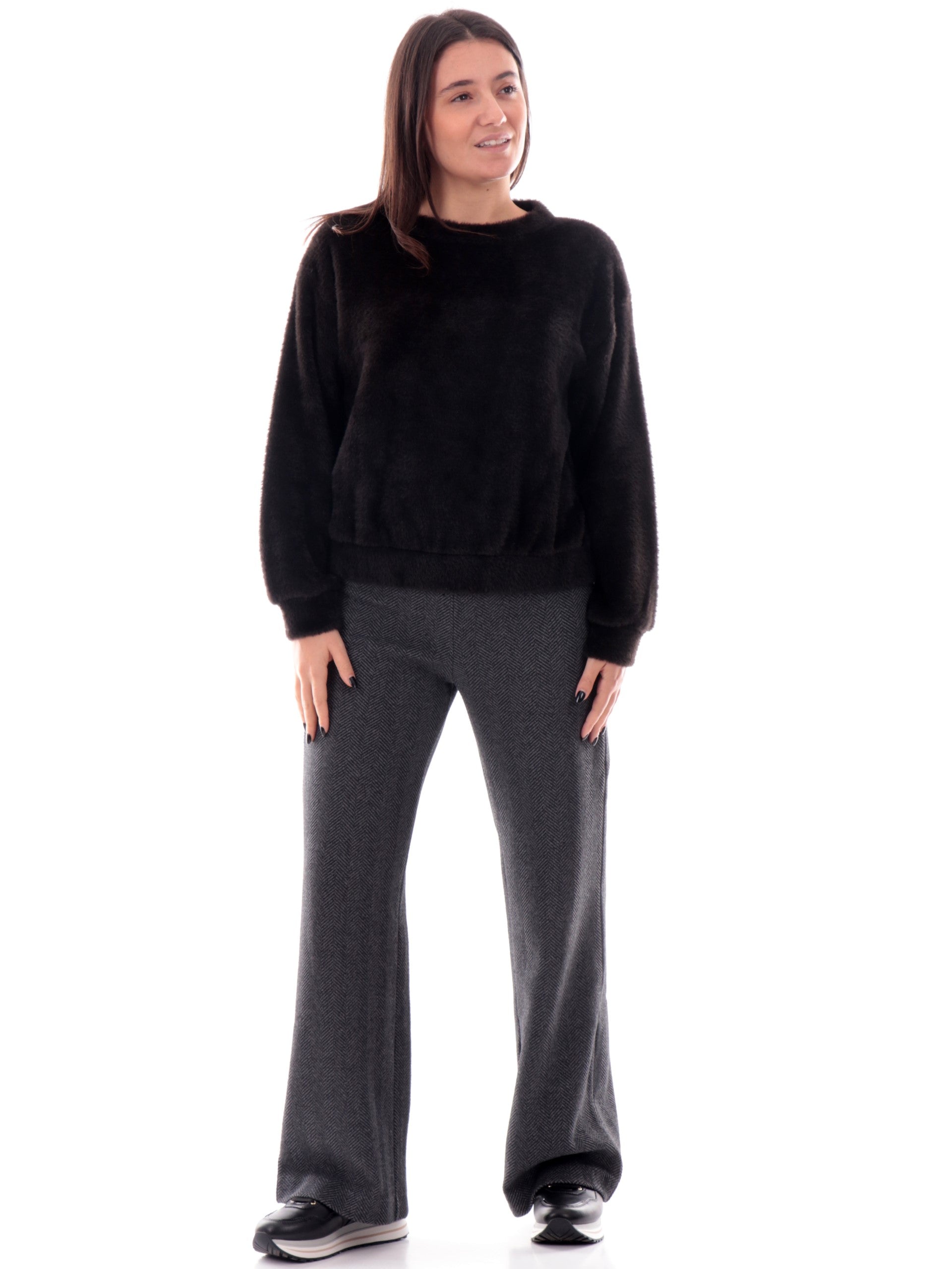 Maglione Deha nero con felpina soffice. Questo maglione Deha nero realizzato da un tessuto morbido, caldo e soffice al tatto perfetto per l'inverno è caratterizzato da una felpina soffice, polsini e fondo elasticizzati. Questo maglione è perfetto per un look casual
