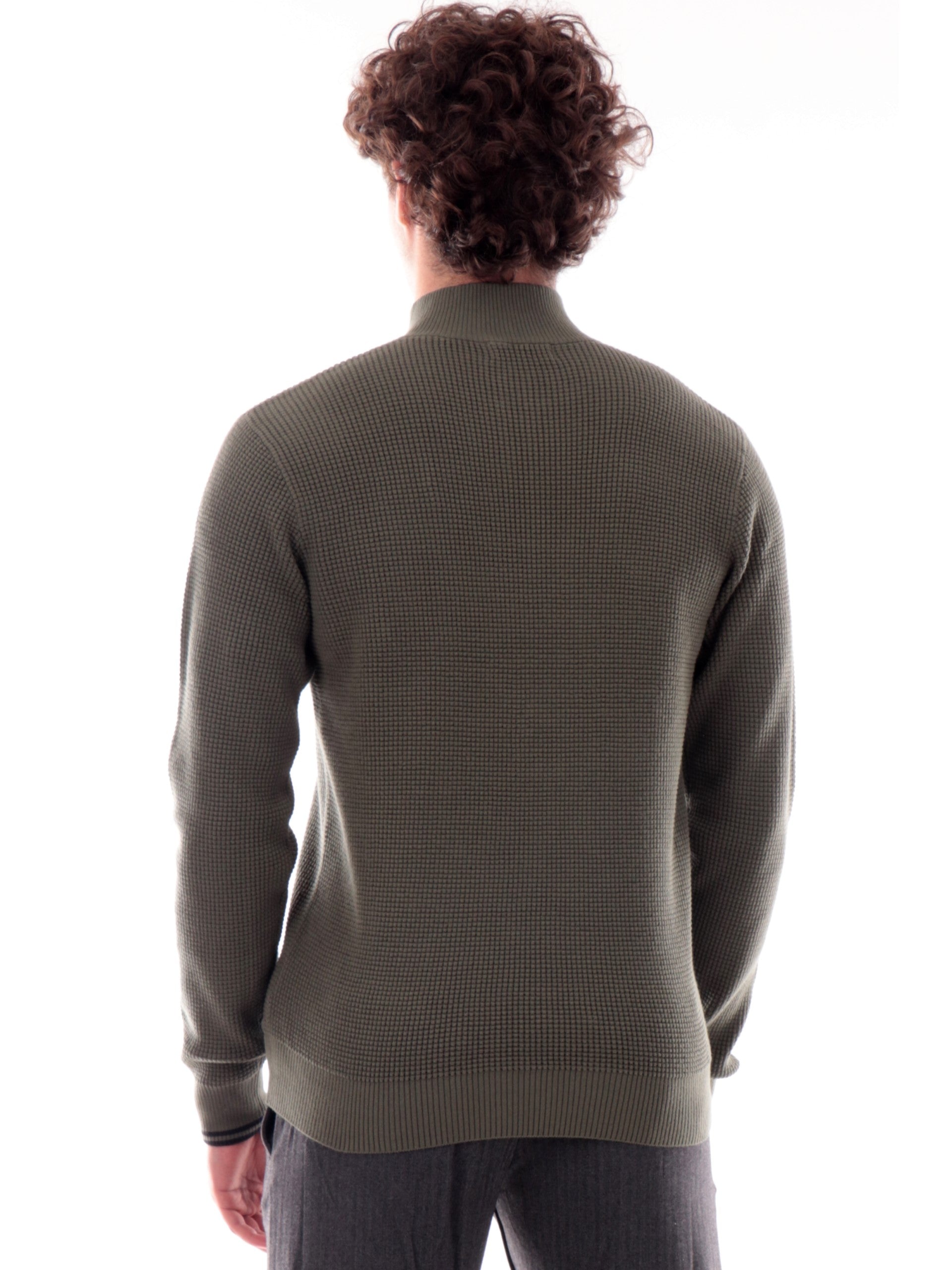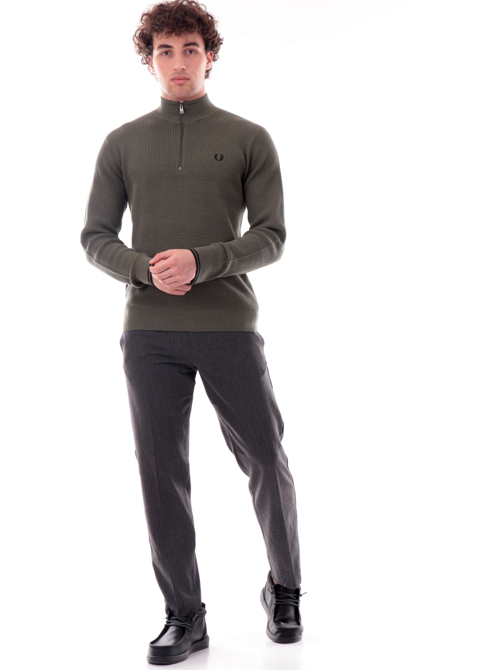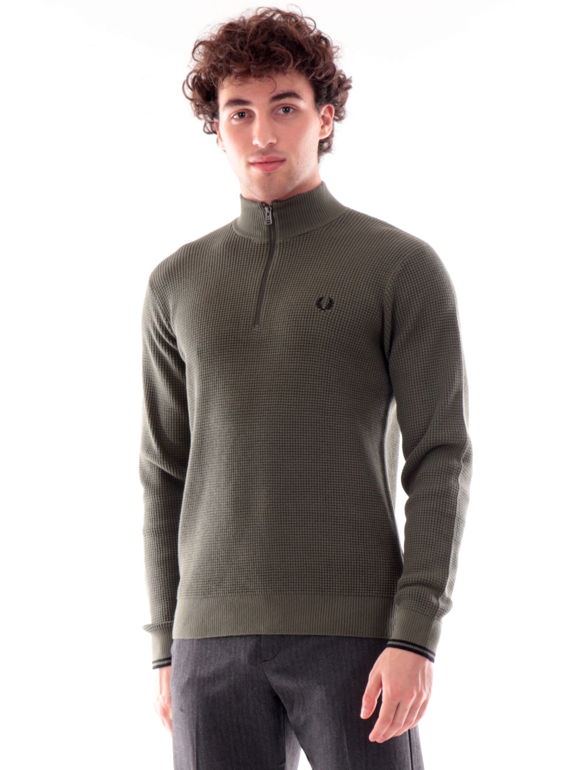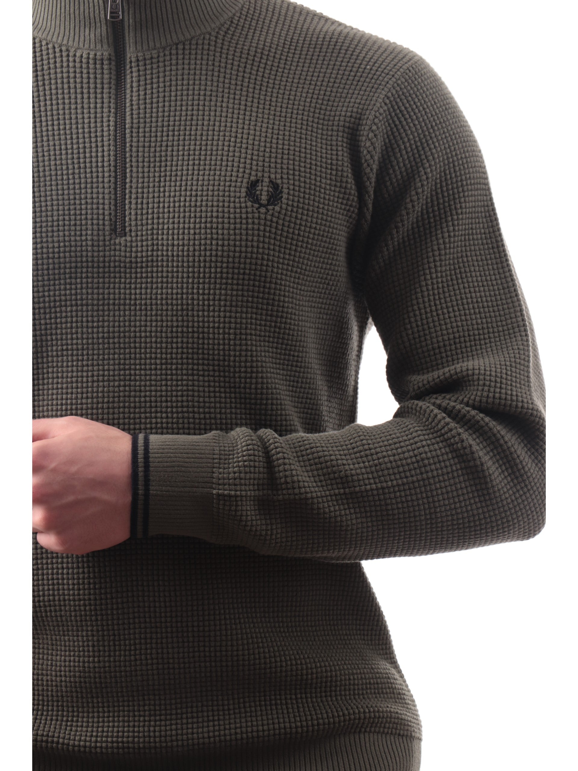 Maglione Fred Perry verde mezza zip da uomo nido d'ape WAFFLE STITCH HAL ZIP JUMPER K8557X21