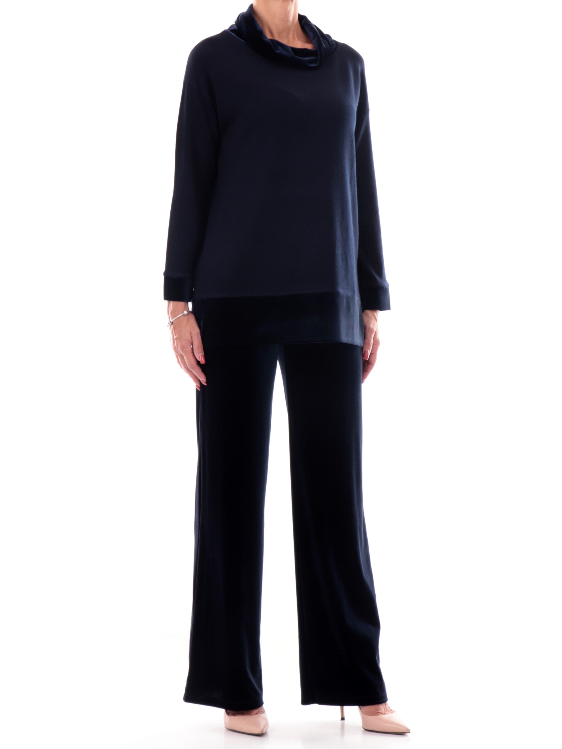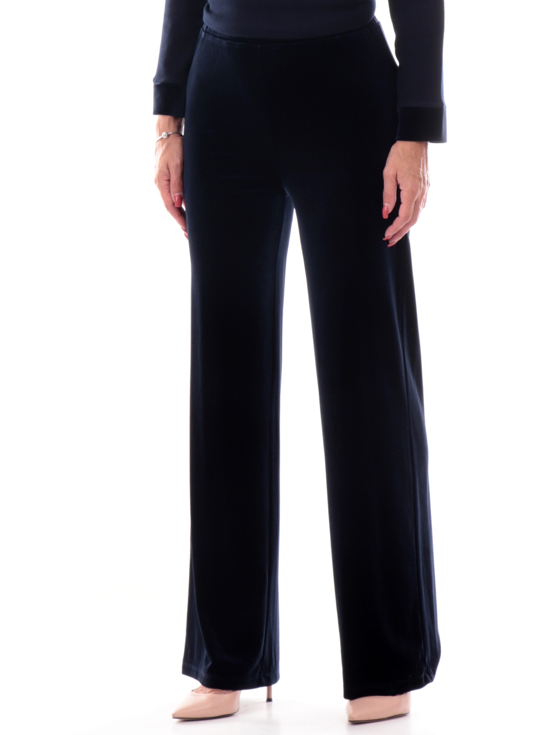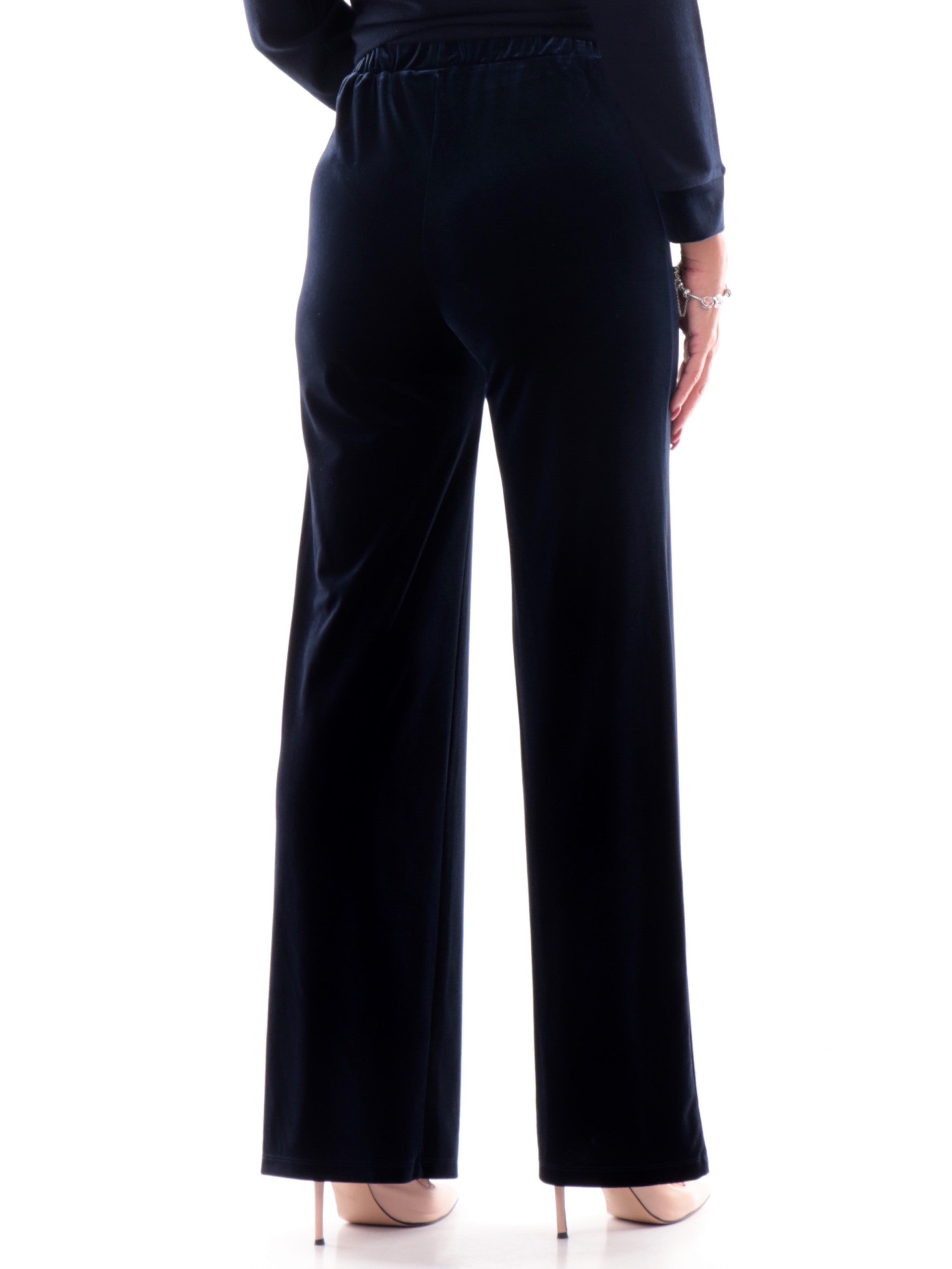 Pantaloni Anis blu da donna realizzati in morbido e caldo tessuto velluto elasticizzato . La vita elasticizzata facilita la vestiilità. Questi pantaloni Anis white in maglina sono un basic pant da utilizzare quando preferisci.