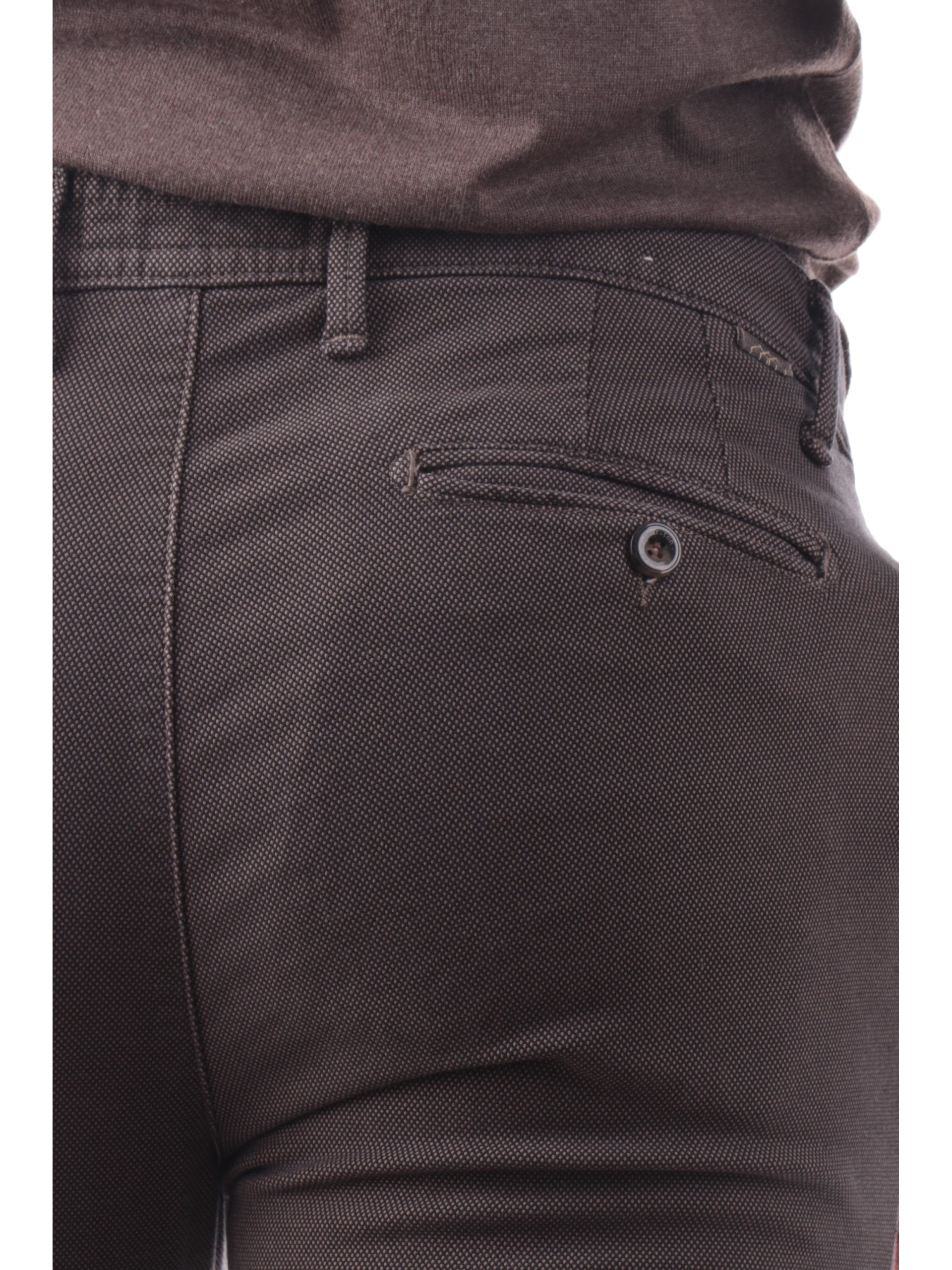 Pantaloni Four Ten grigi da uomo pois Occhio Pernice 200080, realizzati in cotone. Questi pantaloni uomo Four Ten grigi hanno la chiusura con bottone più zip, la predisposizione per indossare la cintura, due tasche laterali aperte con taglio obliquo, due tasche posteriori a filo con bottone, la fantasia con pois e la vestibilità Slim.