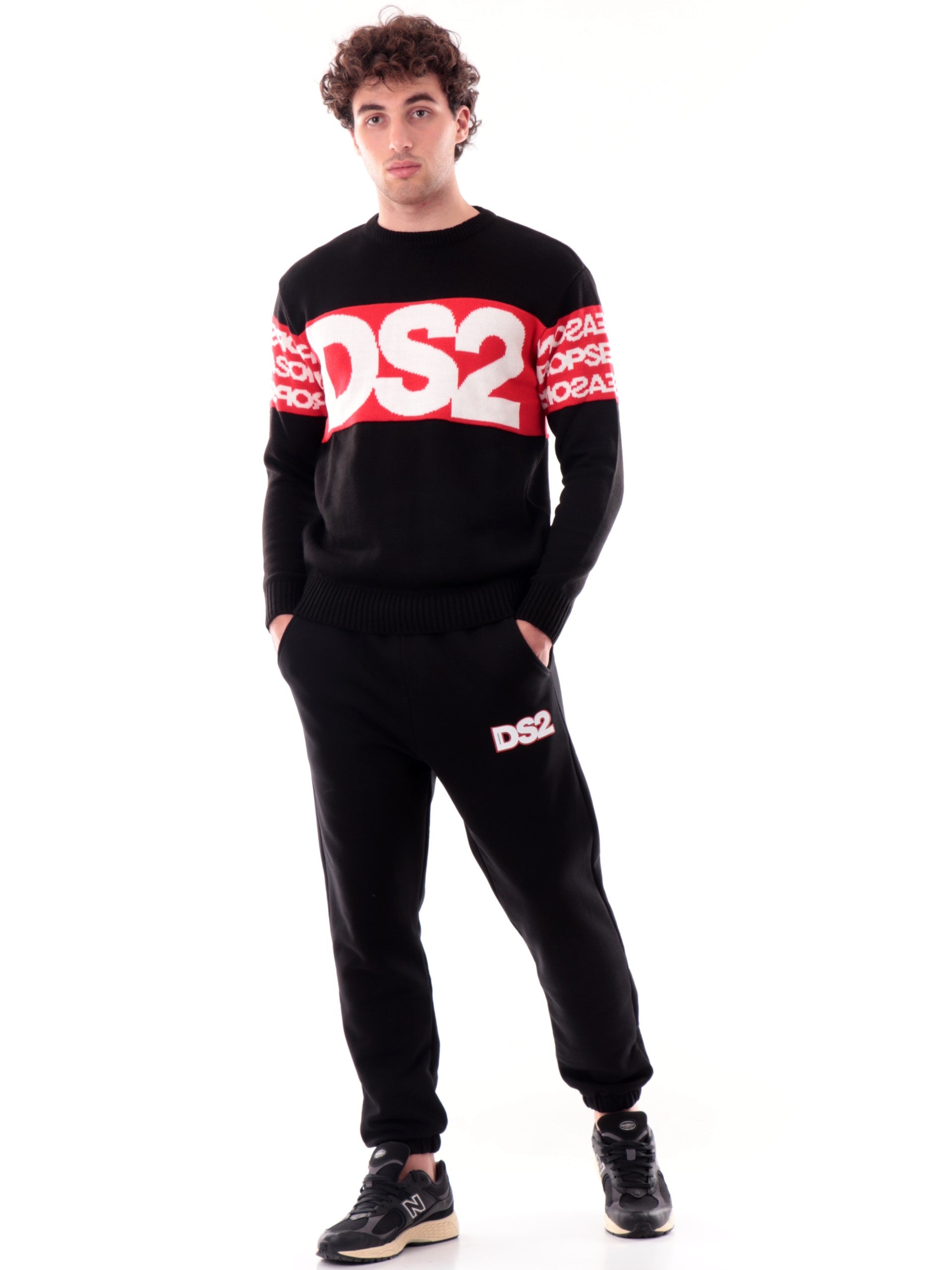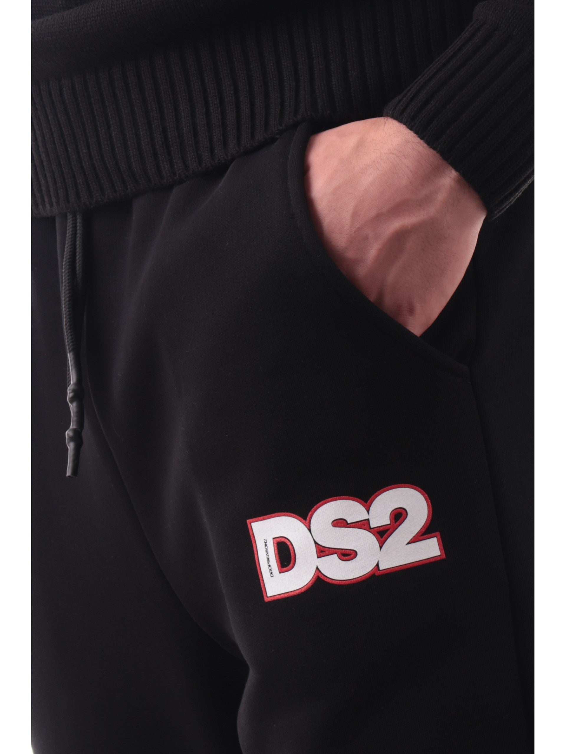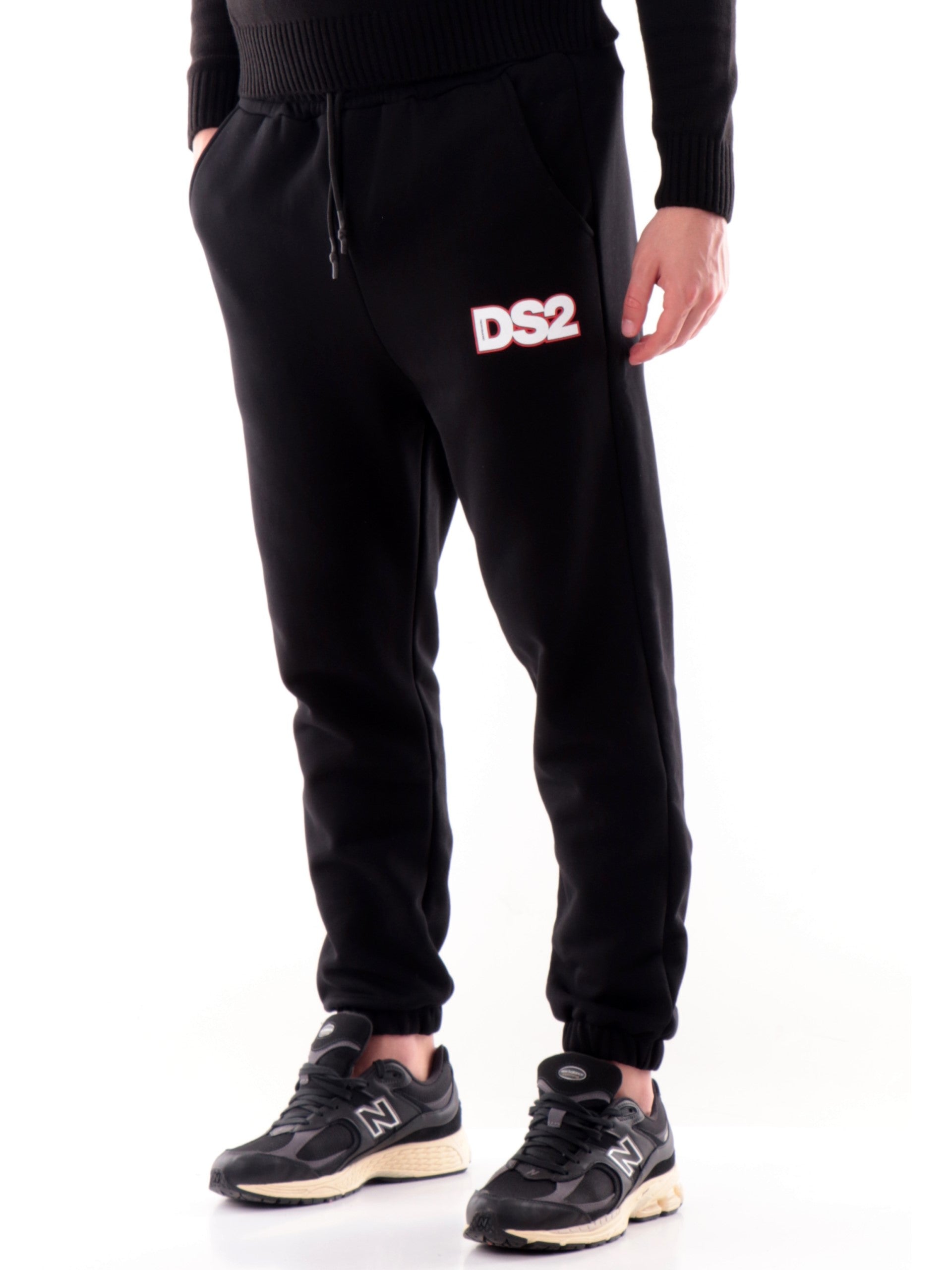 Pantaloni tuta DS2 neri da uomo con maxi logo DS2 rosso FW25236