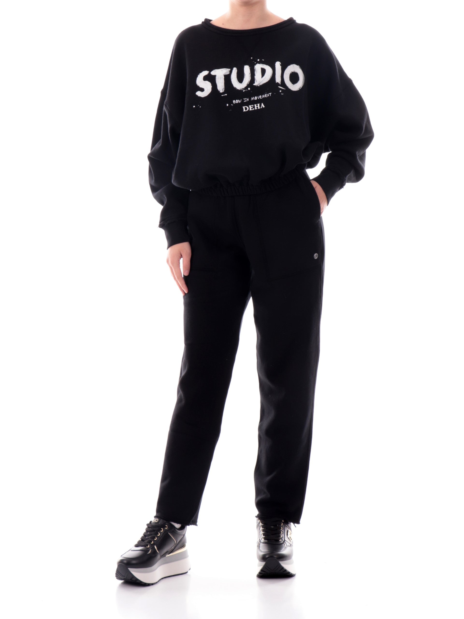 Pantaloni tuta neri da donna Deha felpati C3207610009