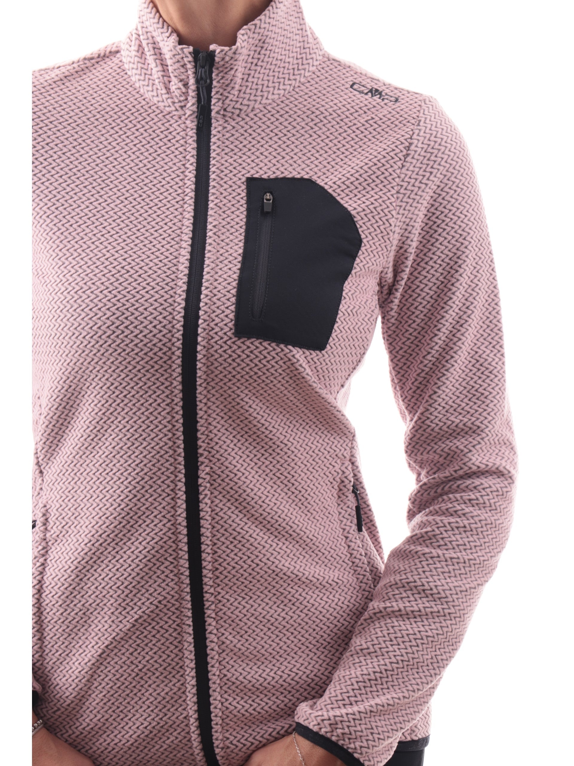 Pile da donna rosa CMP collo alto. Questo pile CMP da donna realizzato dal tessuto jacquard Arctic Fleece elasticizzato è perfetto per affrontare le giornate più fredde con calore, leggerezza e libertà di movimento. Il tessuto di questo pile è morbido e resistente, assicura un’eccellente capacità isolante, mantenendo al contempo traspirabilità e comfort. Questo pile a collo alto da donna rosa CMPè caratterizzato dalla chiusura full zip centrale, taschino a lato cuore, due tasche laterali con zip,all'interno troviamo due tasche ampie aperte, polsini e fondo elasticizzati e la scritta CMP applicato sulla spalla sinistra. Questo pile CMP è perfetto da indossare come secondo strato o da solo nelle mezze stagioni, garantendo protezione e stile in ogni occasione.