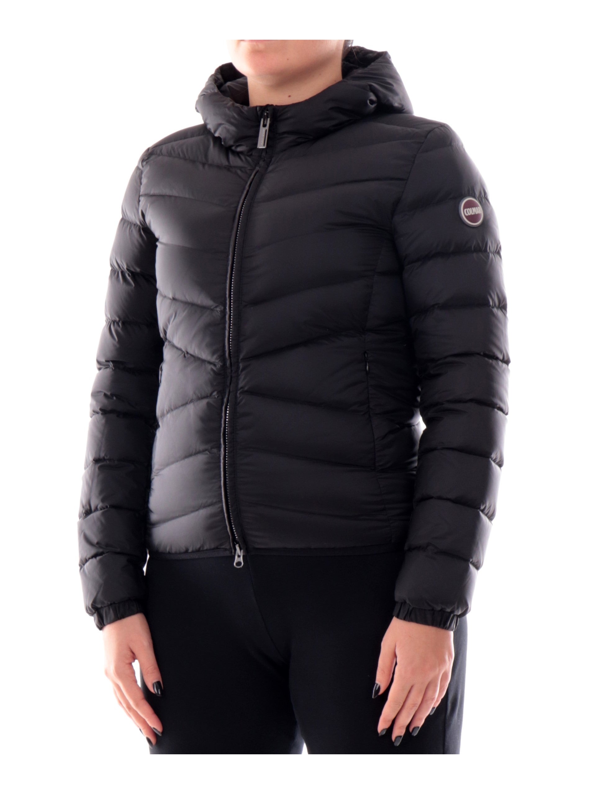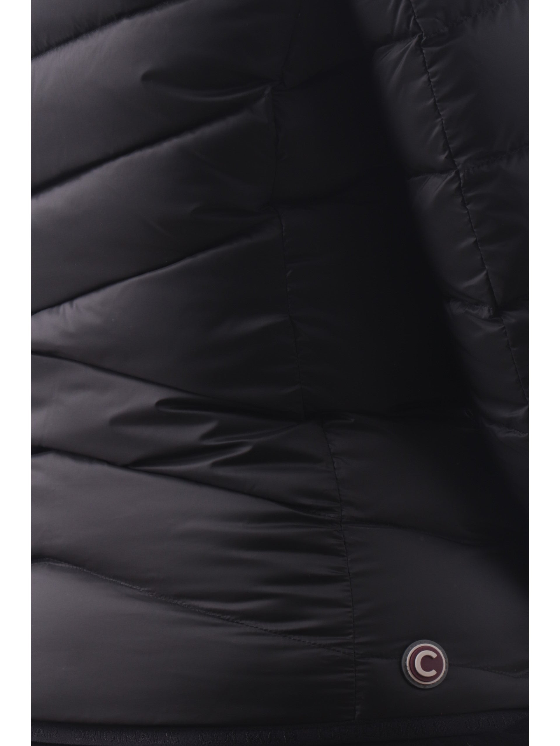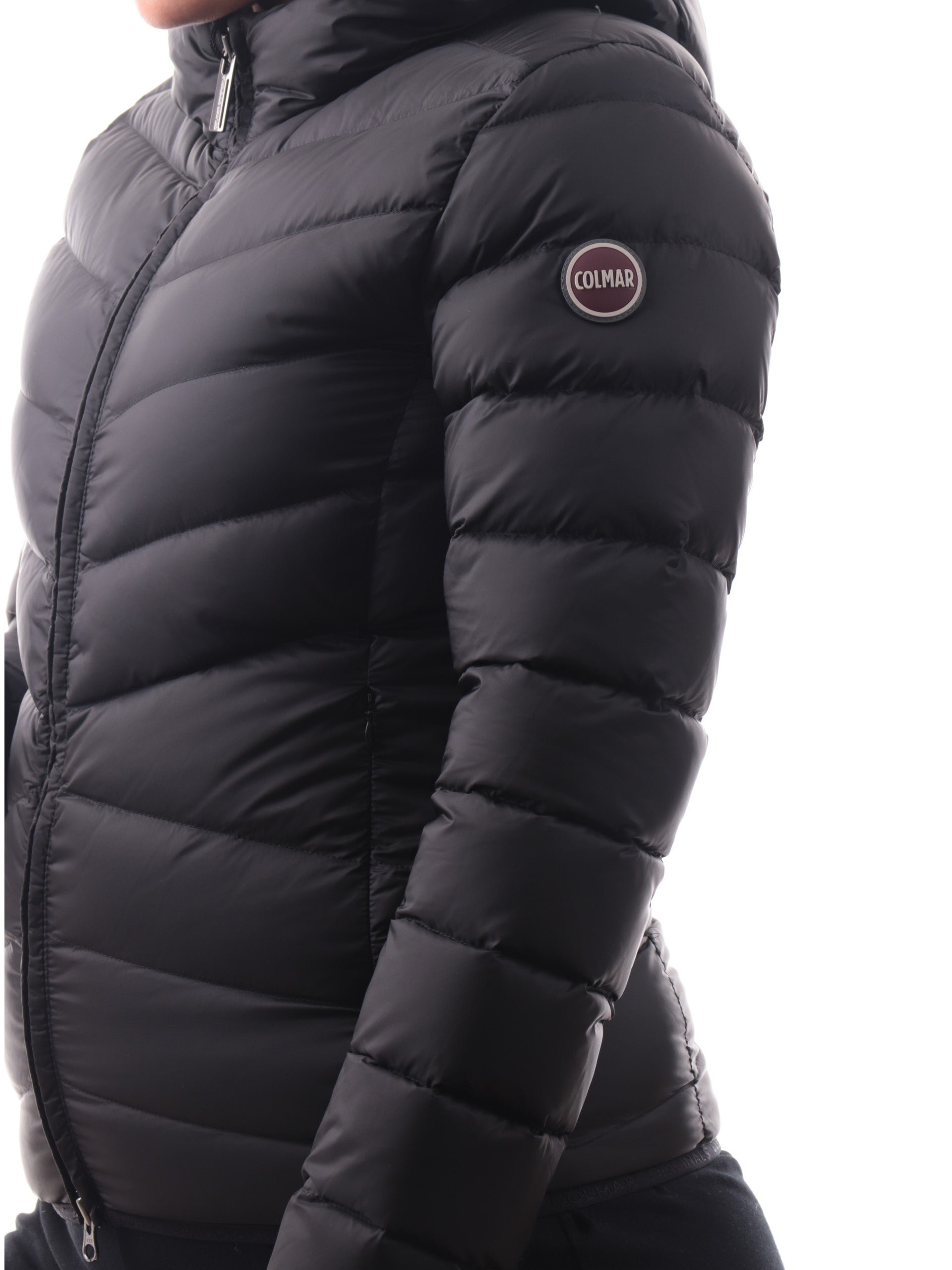 Piumino Colmar donna nero. Questo giubbino Colmar da donna nero è realizzato da un tessuto trapuntato con l'imbottitura in vera piuma che garantisce comfort e calore è caratterizzato da cappuccio fisso, chiusura full zip con doppio cursore, due tasche laterali con zip, polsini e fondo elasticizzati e il logo del brand applicato sulla manica sinistra. Questo piumino Colmar da donna nero è perfettosu un qualsiasi outfit ed è perfetto per la stagione invernale.
