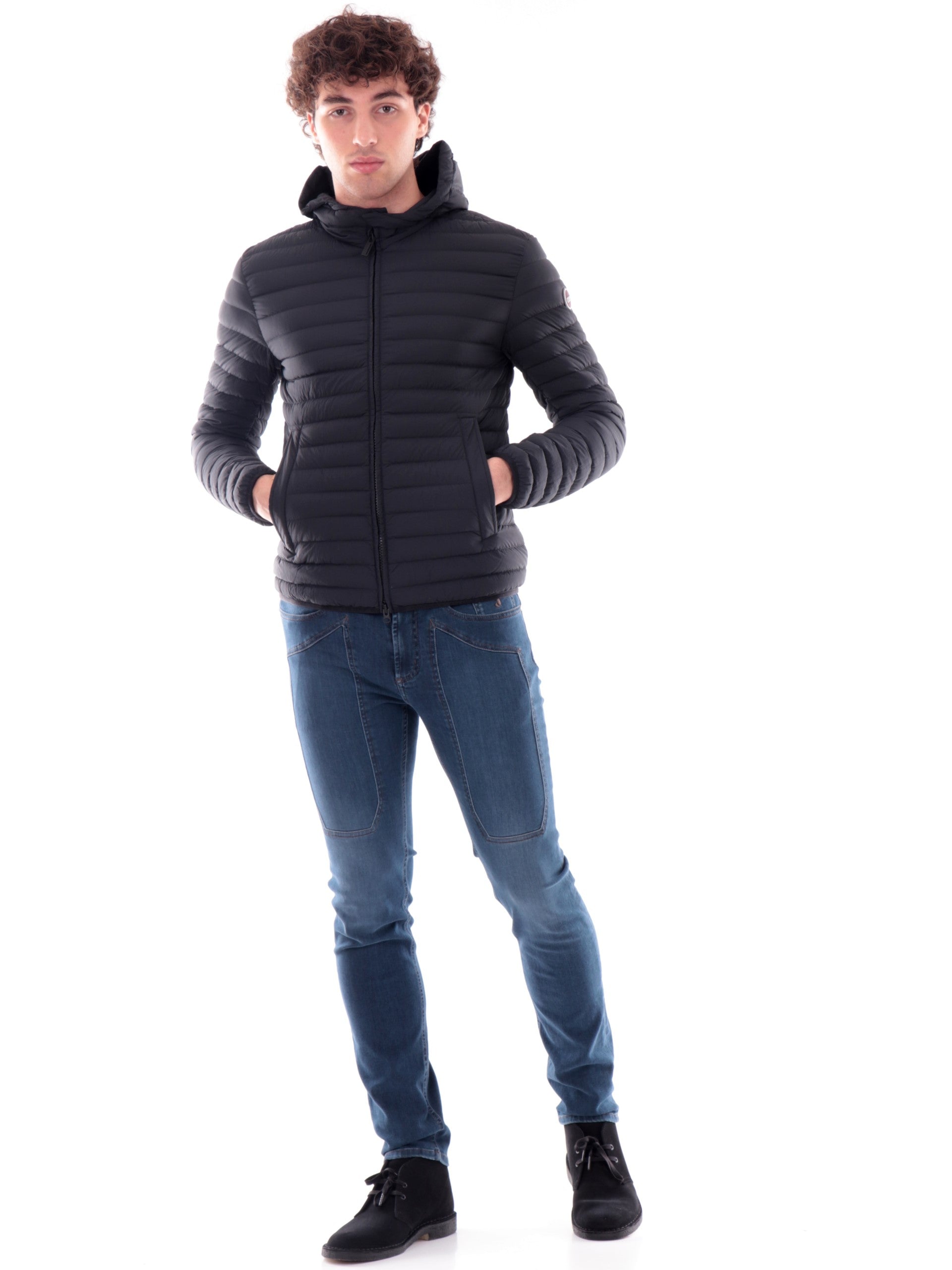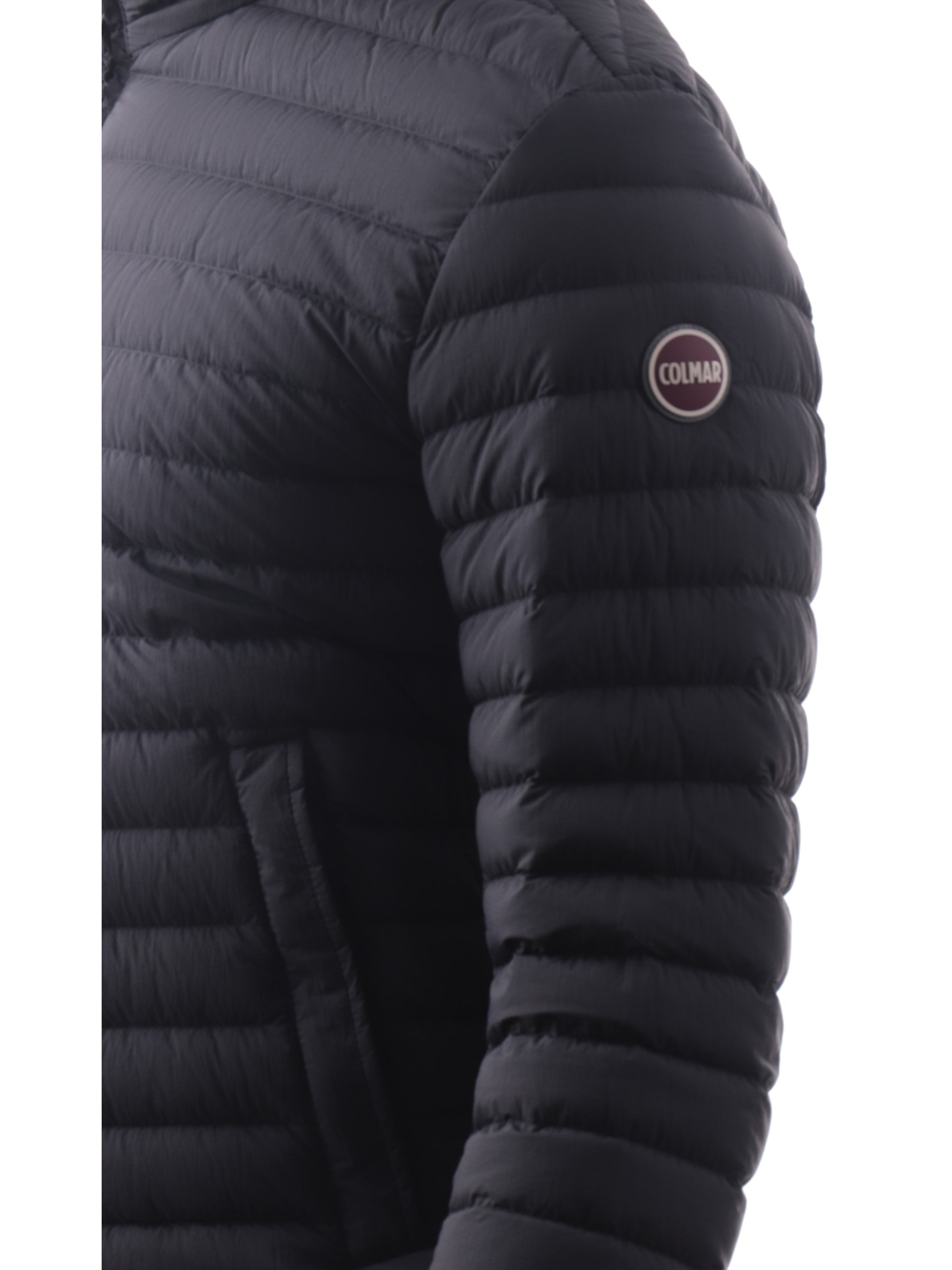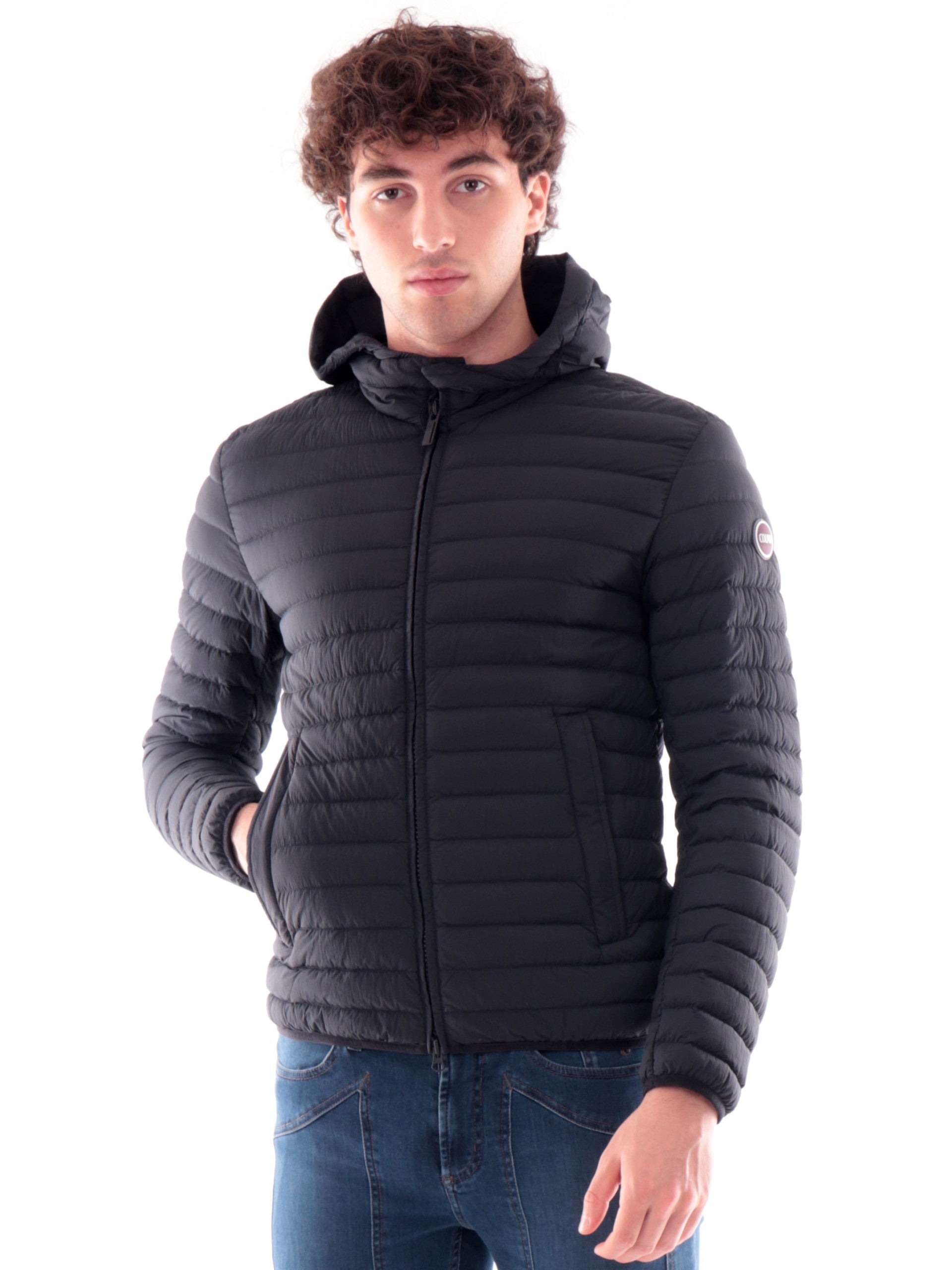 Piumino Colmar nero da uomo. Questo piumino nero Colmar da uomo è realizzato da un imbottitura di vera piuma, caldo ed avvolgente. L'iconico giubbino colmar con colletto e bottone è caratterizzato dacappuccio fisso, chiusura centrale full zip, due tasche laterali con zip, polsini e fono elasticizzati e il logo del brand applicato sulla manica sinistra. All'interno di questo piumino troviamo una tasca interna con la chiusura a zip. Questo capo è perfetto per i primi freddi invernali