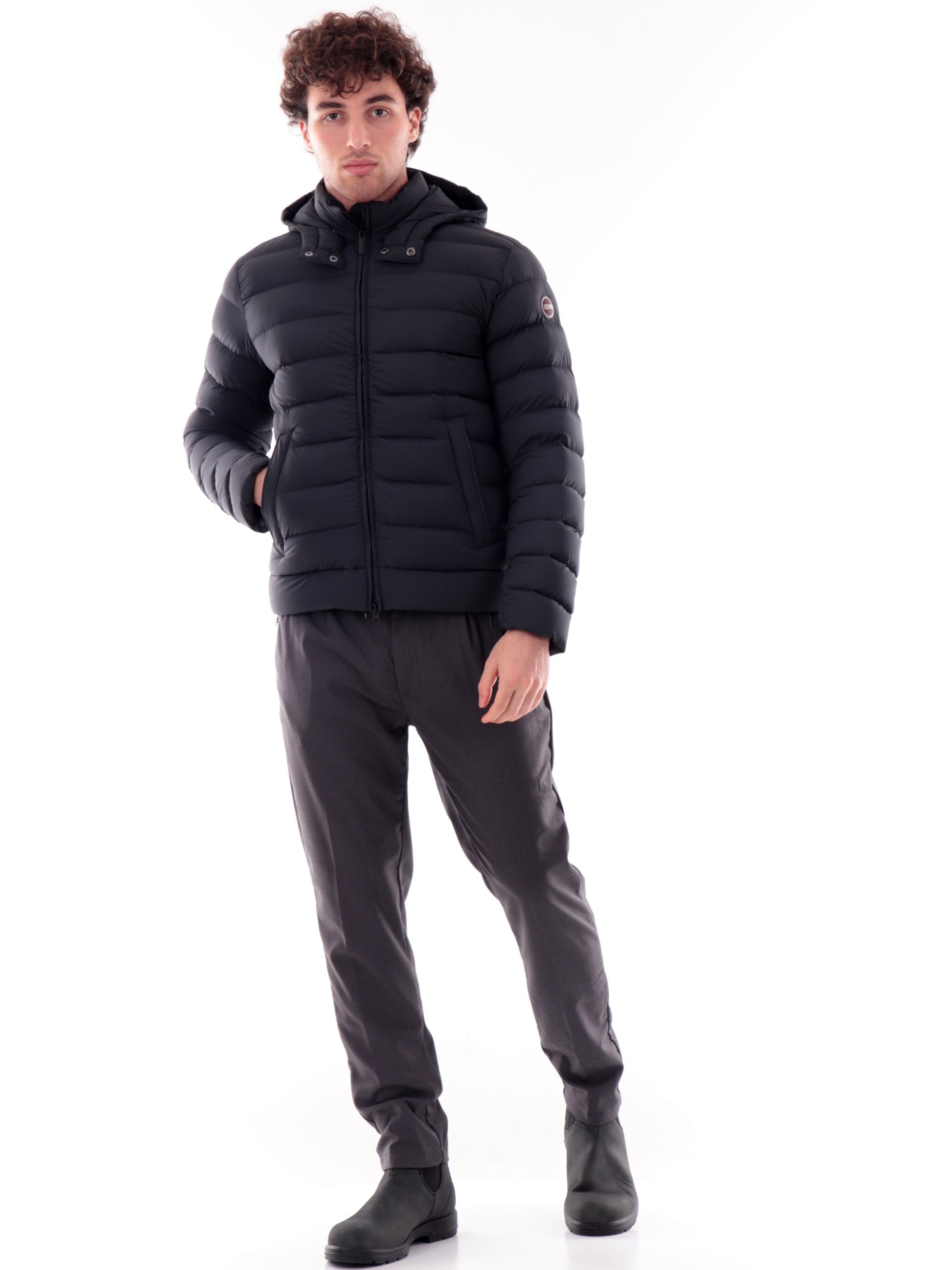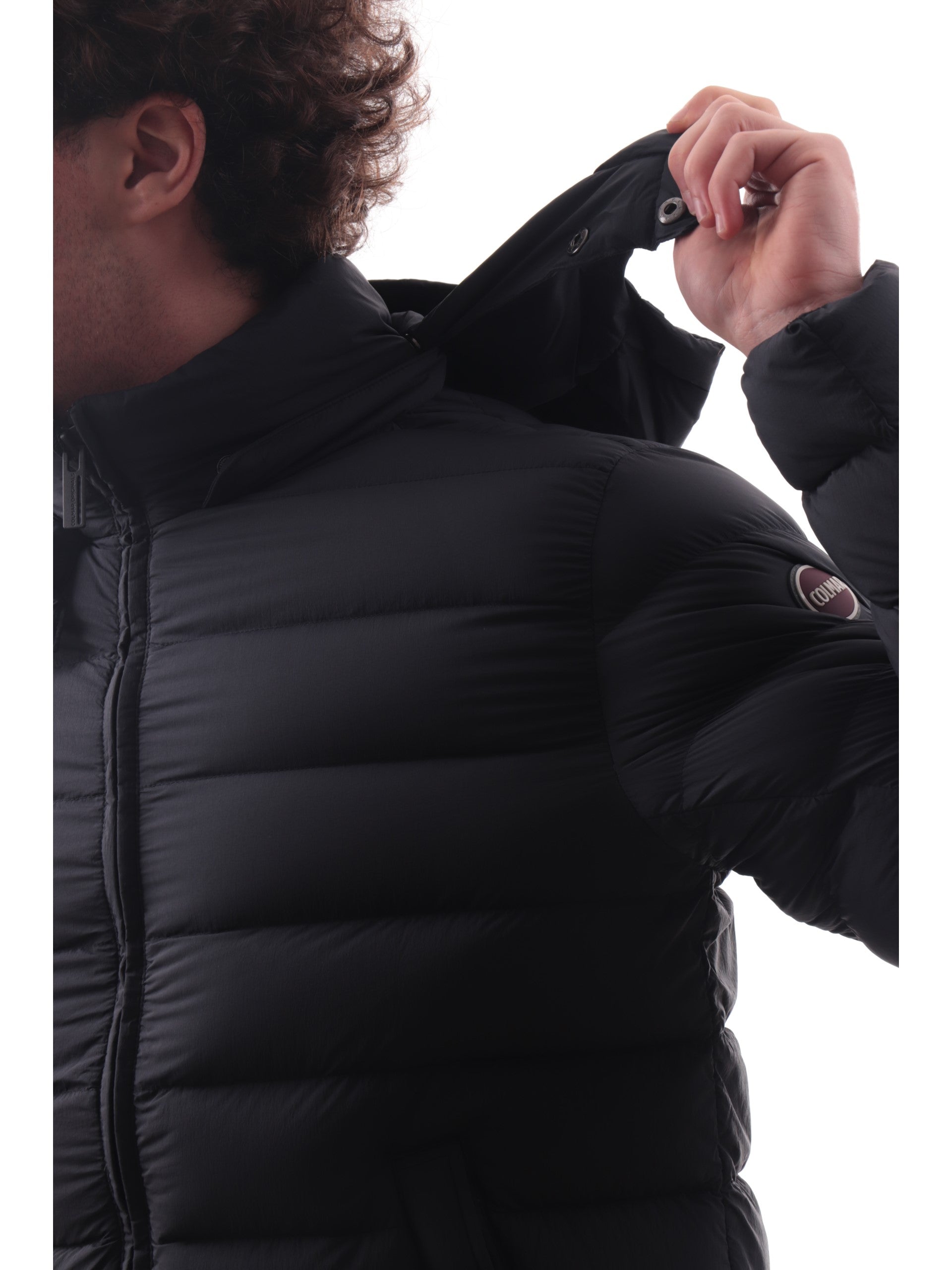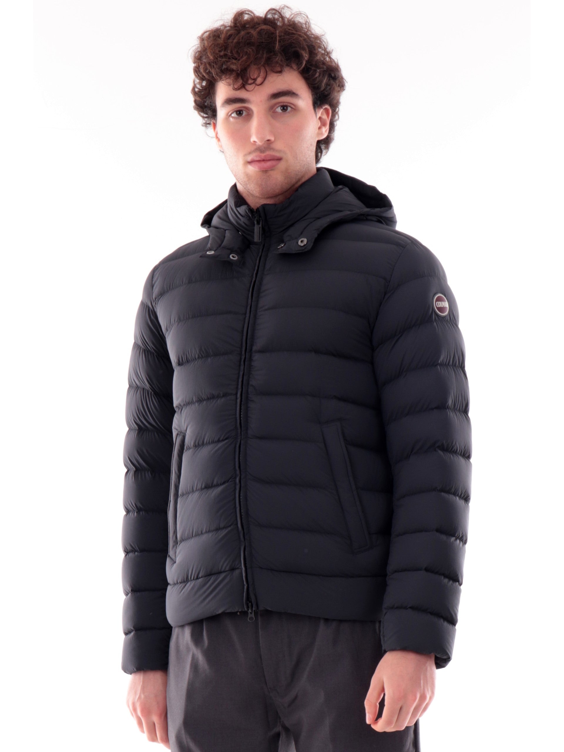 Piumino Colmar nero da uomo. Questo piumino nero Colmar da uomo è realizzato da un imbottitura di vera piuma, caldo ed avvolgente. L'iconico giubbino colmar con colletto e bottone è caratterizzato dacappuccio removibile, chiusura centrale full zip, due tasche laterali con zip, polsini e fondo elasticizzati con coulisse e il logo del brand applicato sulla manica sinistra. All'interno di questo piumino troviamo una tasca interna con la chiusura a zip. Questo capo è perfetto per i primi freddi invernali