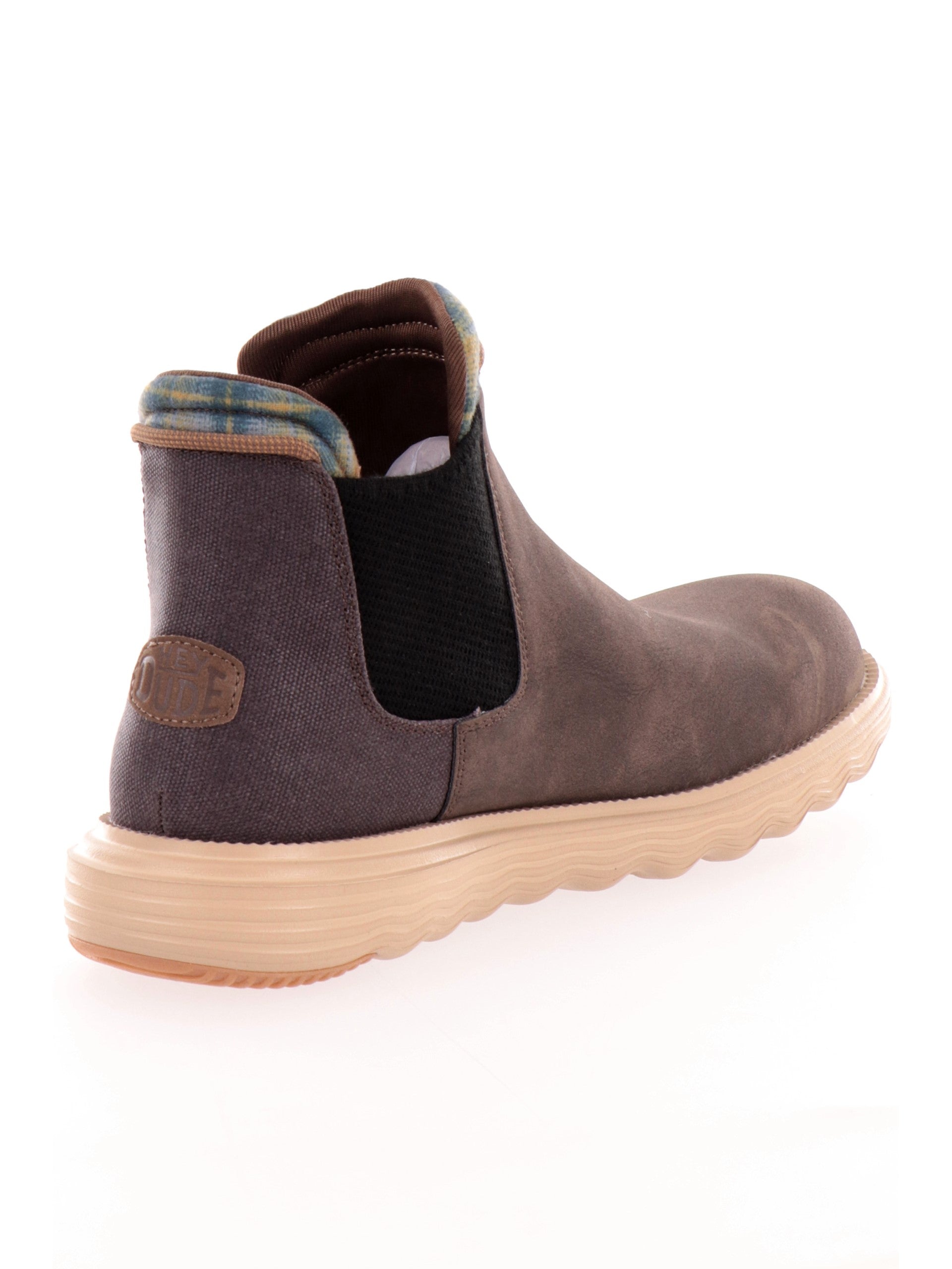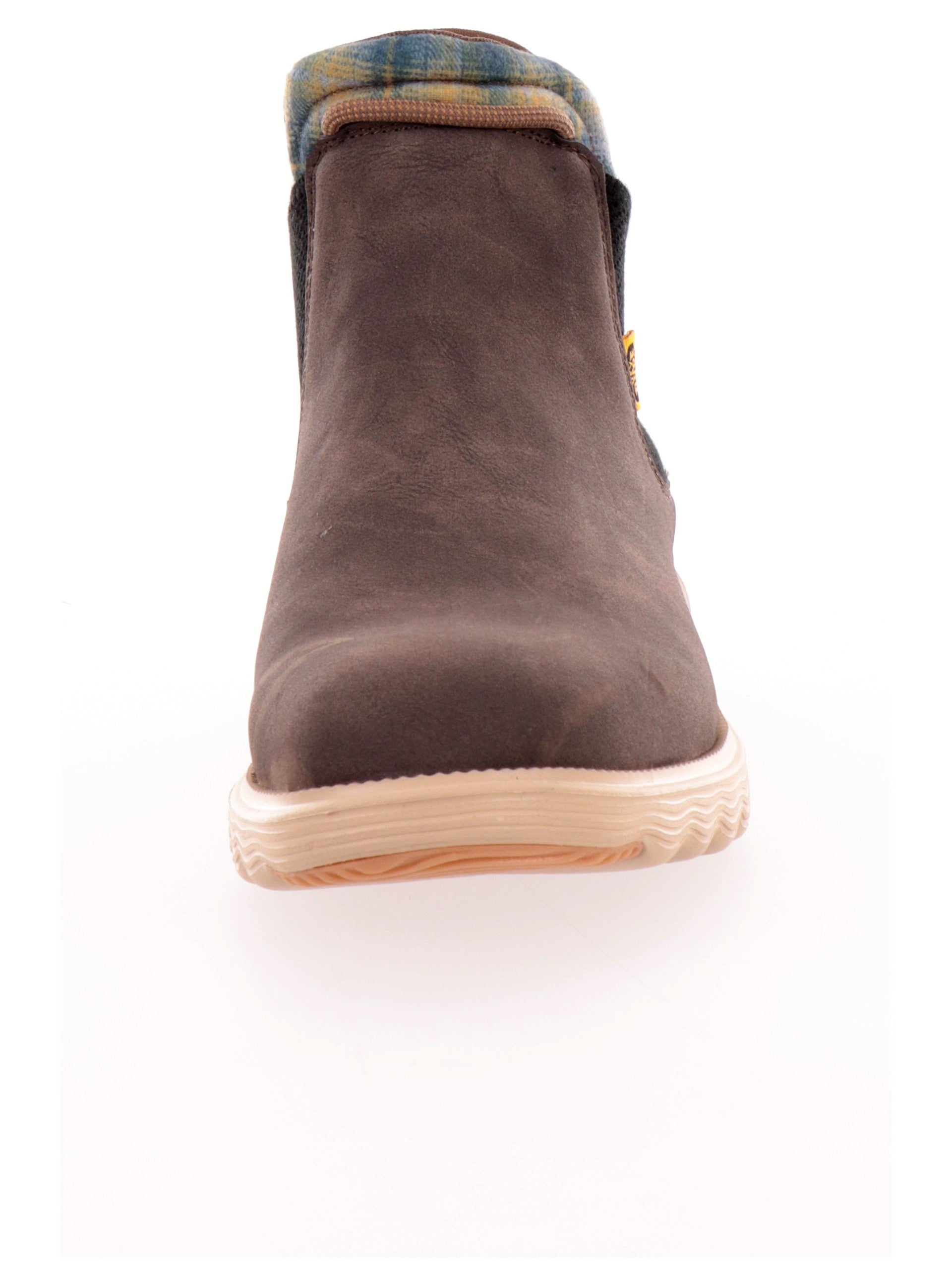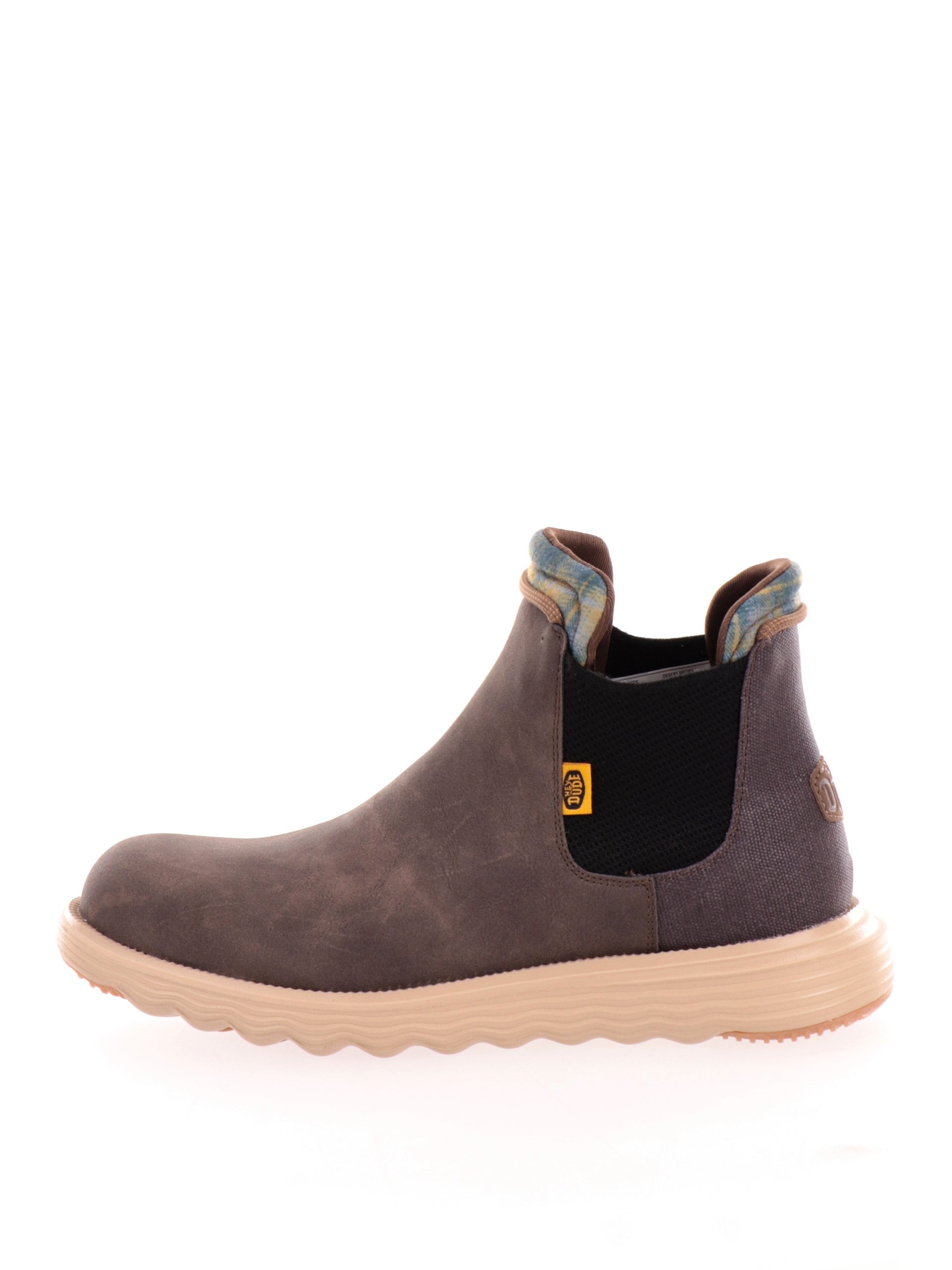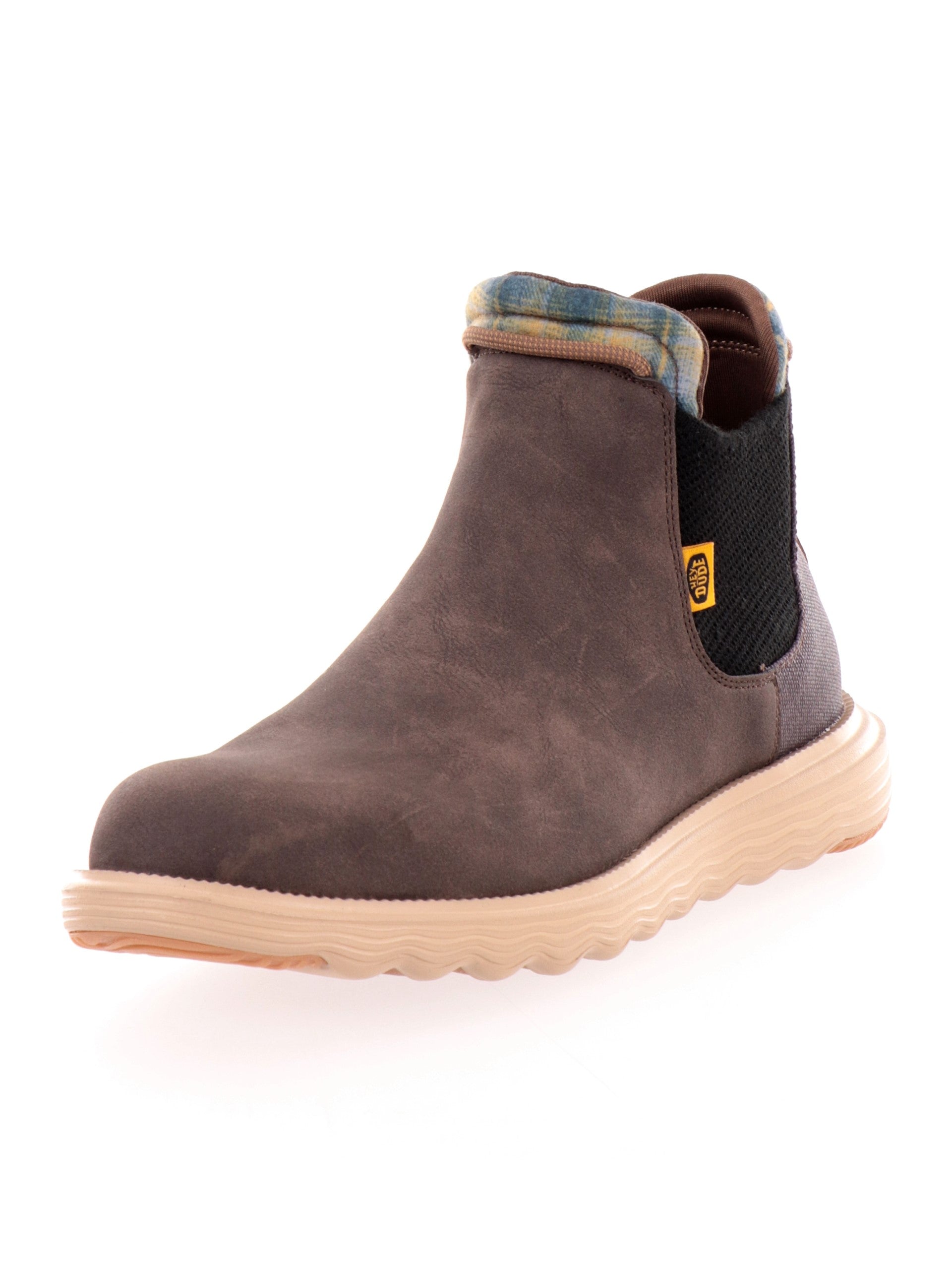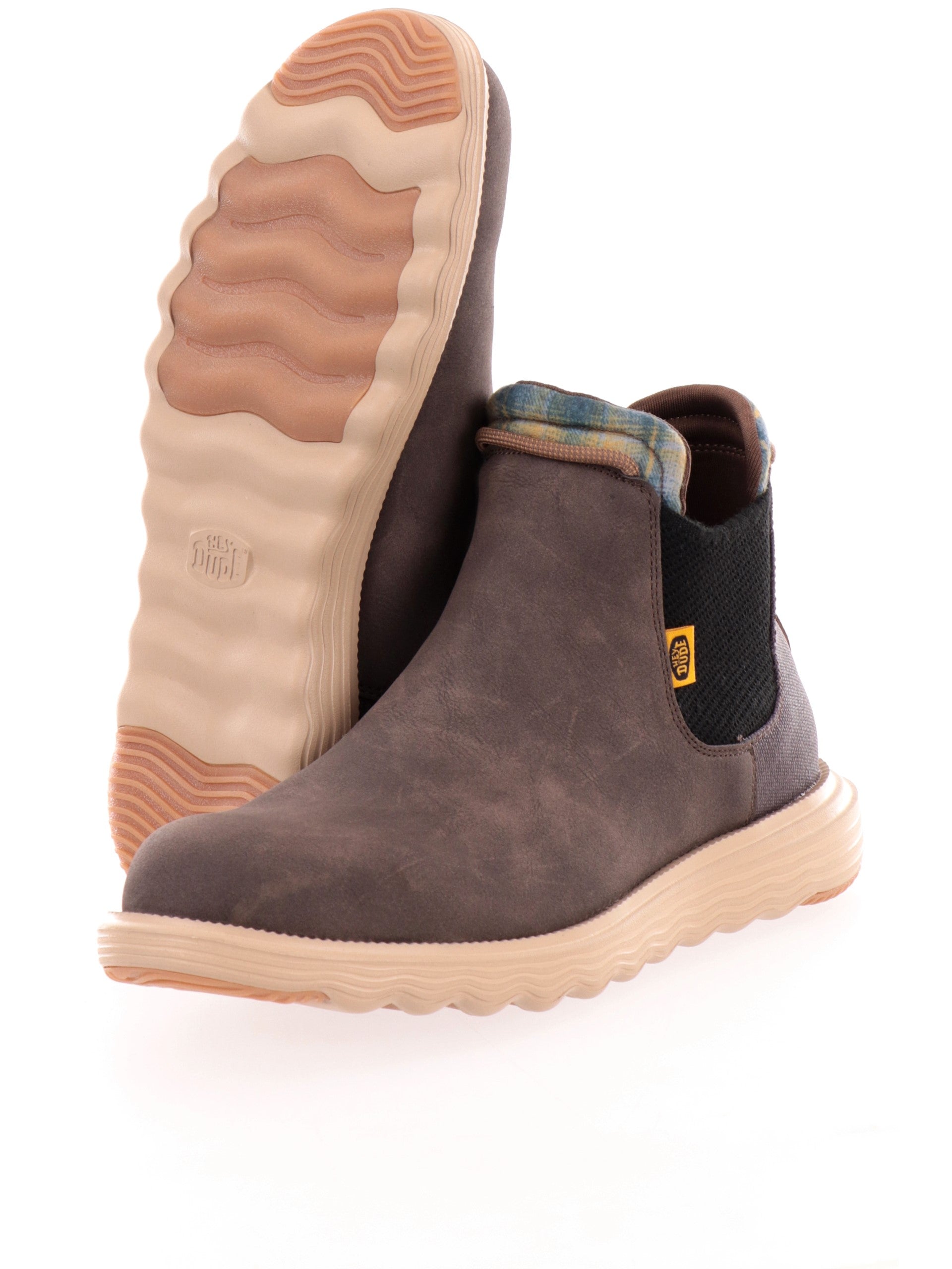 Scarpe Hey Dude Branson Classic marroni da uomo 42065. Questi stivaletti Hey Dude marroni hanno la tomaia in ecopelle scamosciata, la suola in EVA per il massimo comfort e la soletta rimovibile. Sul davanti di queste scarpe Hey Dude troviamo la calzata easy-on e il patch del brand applicato sulla zona tallonare a contrasto colore.