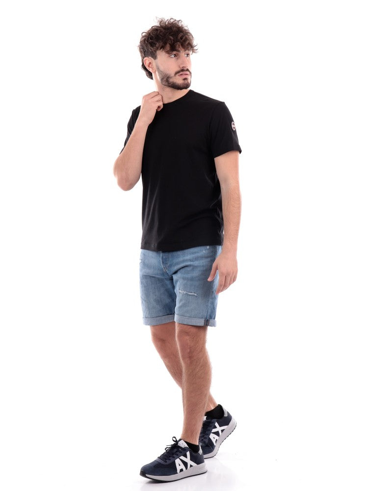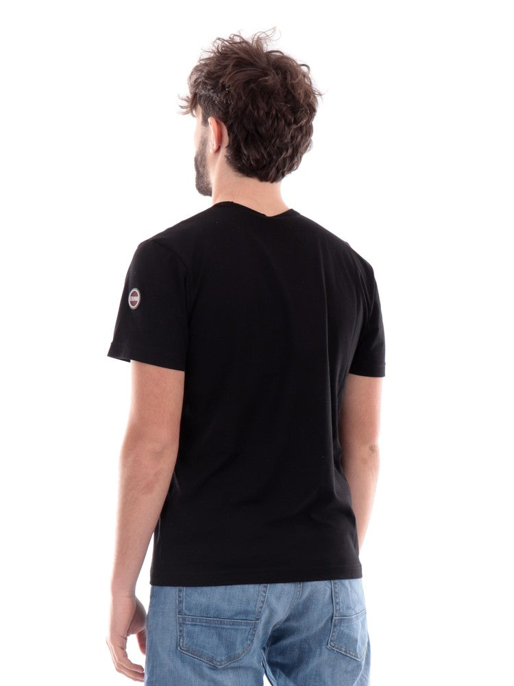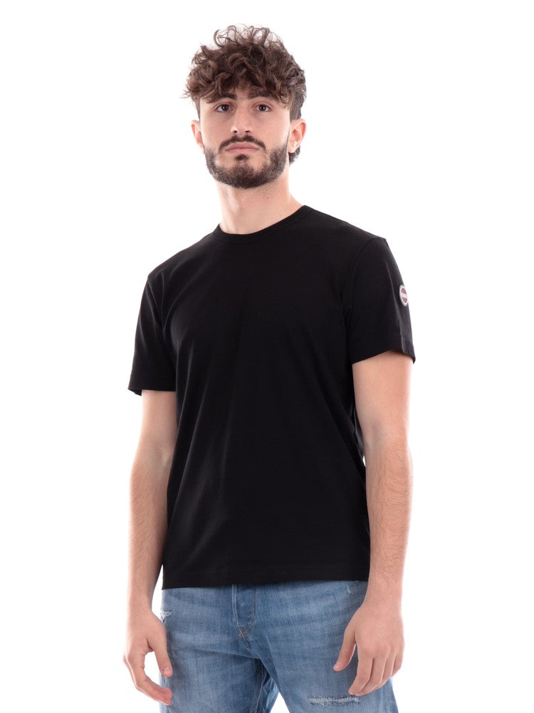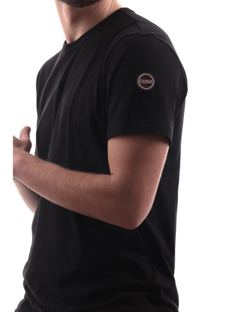 T-shirt Colmar nera da uomo con logo, modello 75406SH, realizzata in 100% puro cotone. Questa maglia Colmar a mezze maniche ha il girocollo realizzato in tessuto a costine, le maniche corte, il fondoregolare e il patch del brand sulla manica sinistra a contrasto colore.