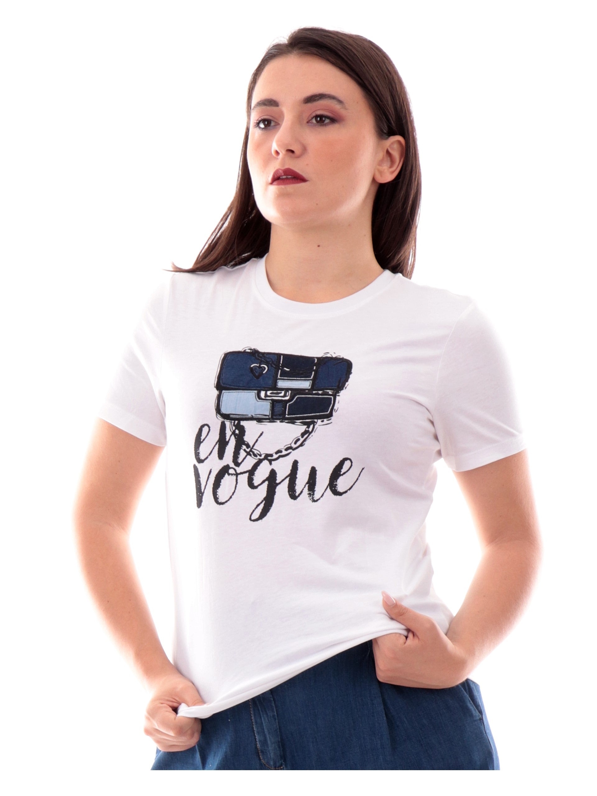 T-shirt Only bianca girocollo da donna con stampa e patch borsa 15329752