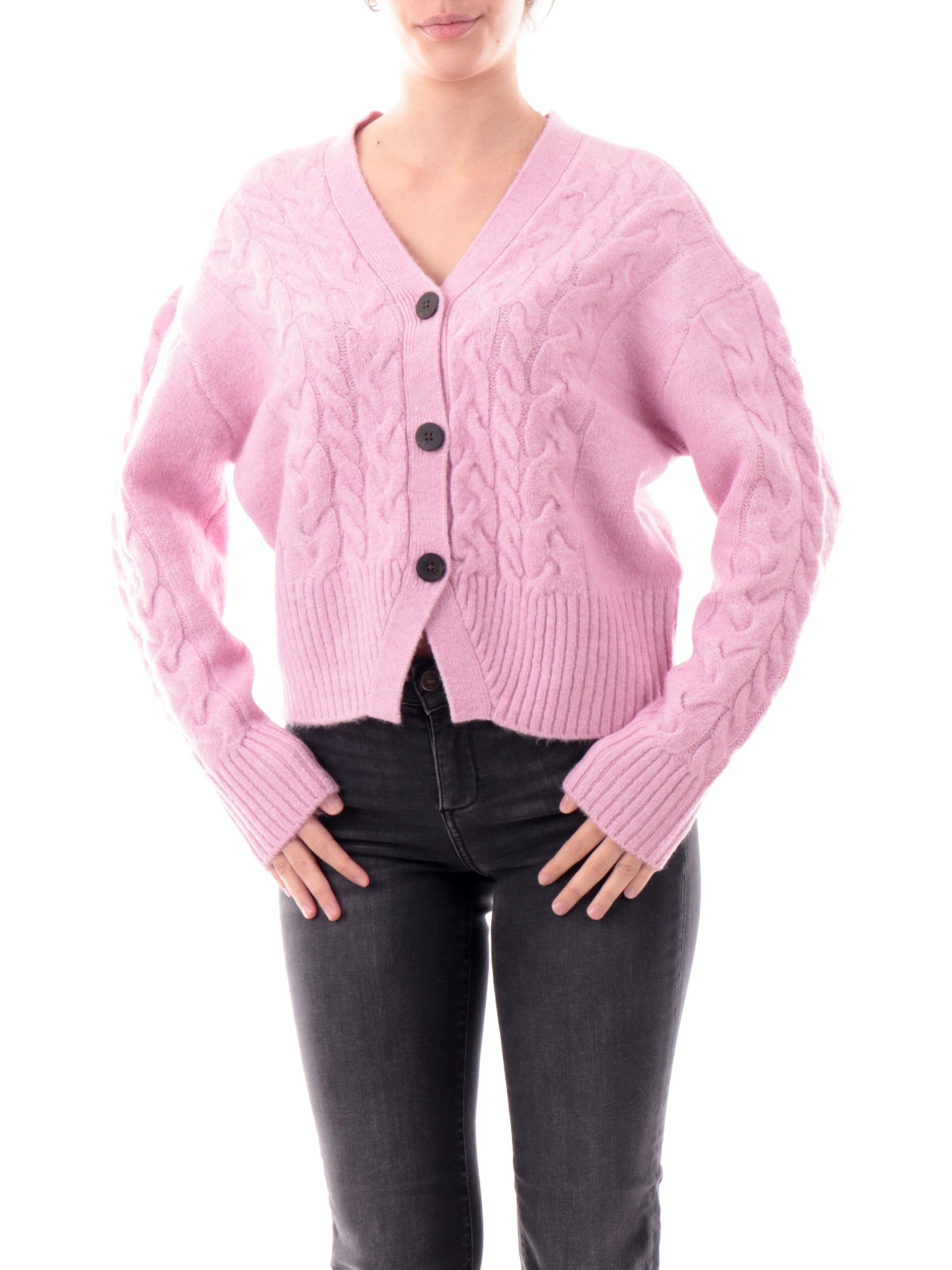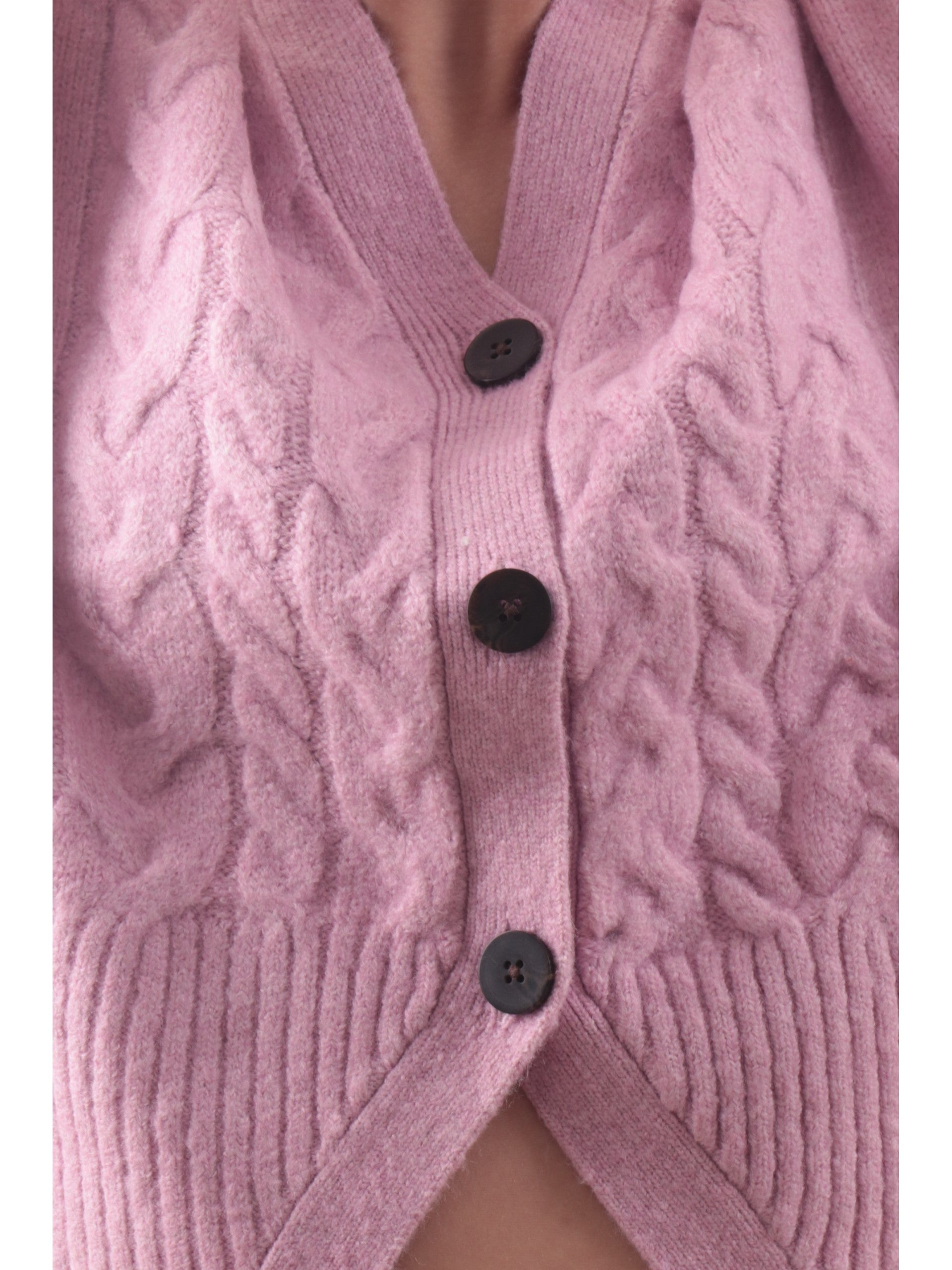 Cardigan Cable rosa da donna Only. Questo cardigan rosa Only da donna realizzato da un tessuto morbido, caldo ed avvolgente al tatto con la fantasia a treccia, questo cardigan rosa è caratterizzato da tre bottoni eleganti, polsini e fondo elasticizzati a costine, grazie alla sua versatilità si può abbinare a qualsiasi outfit