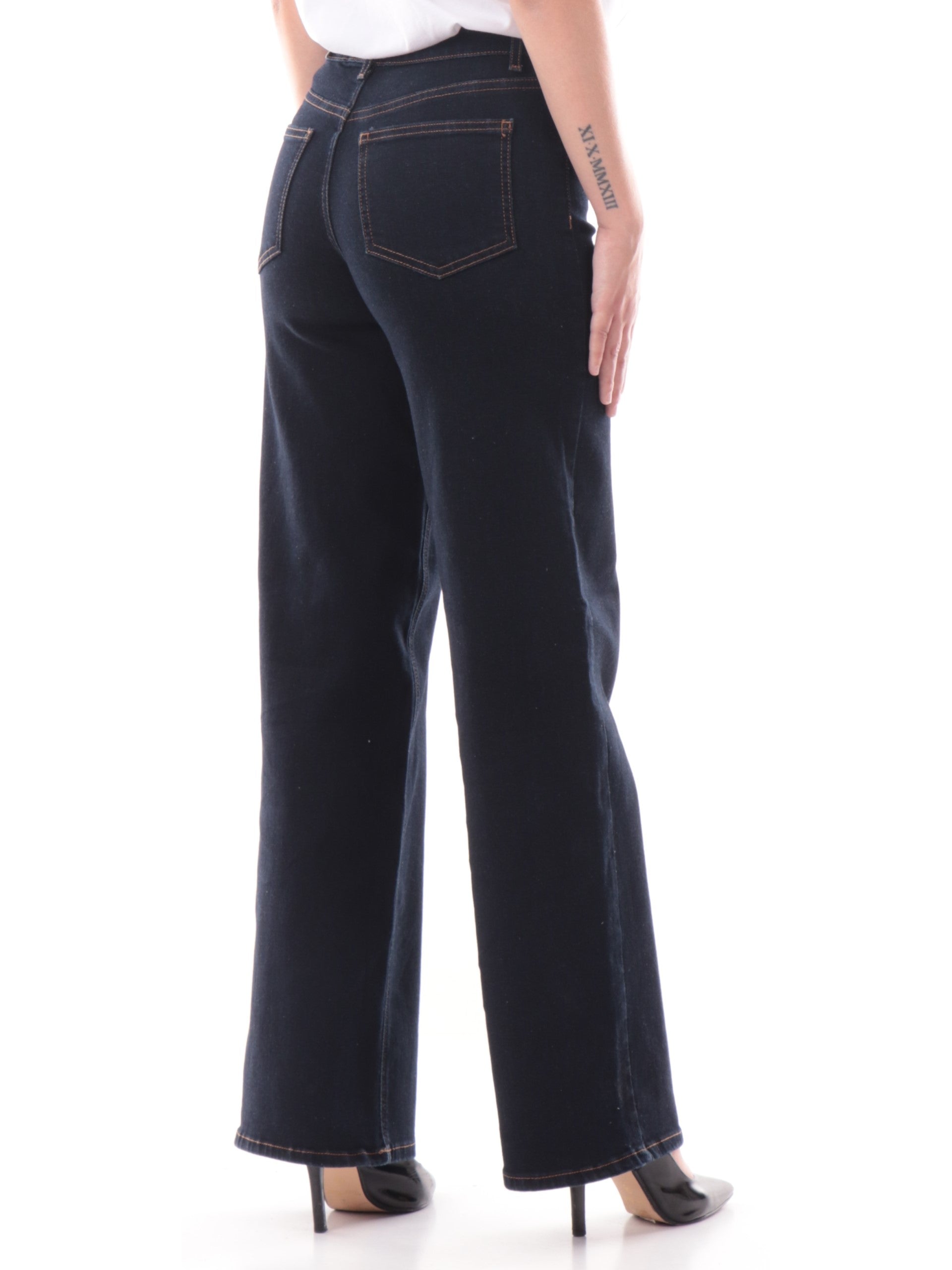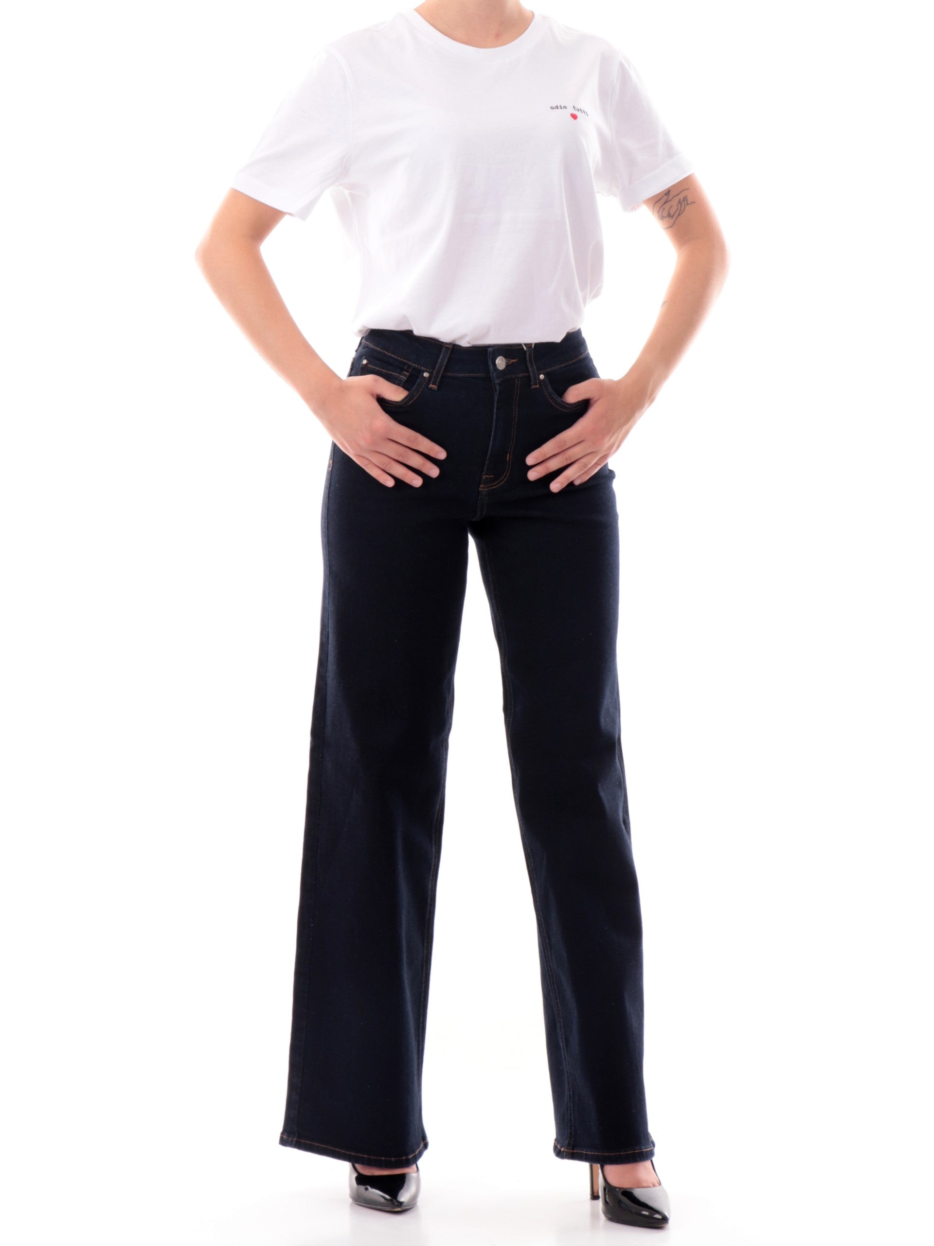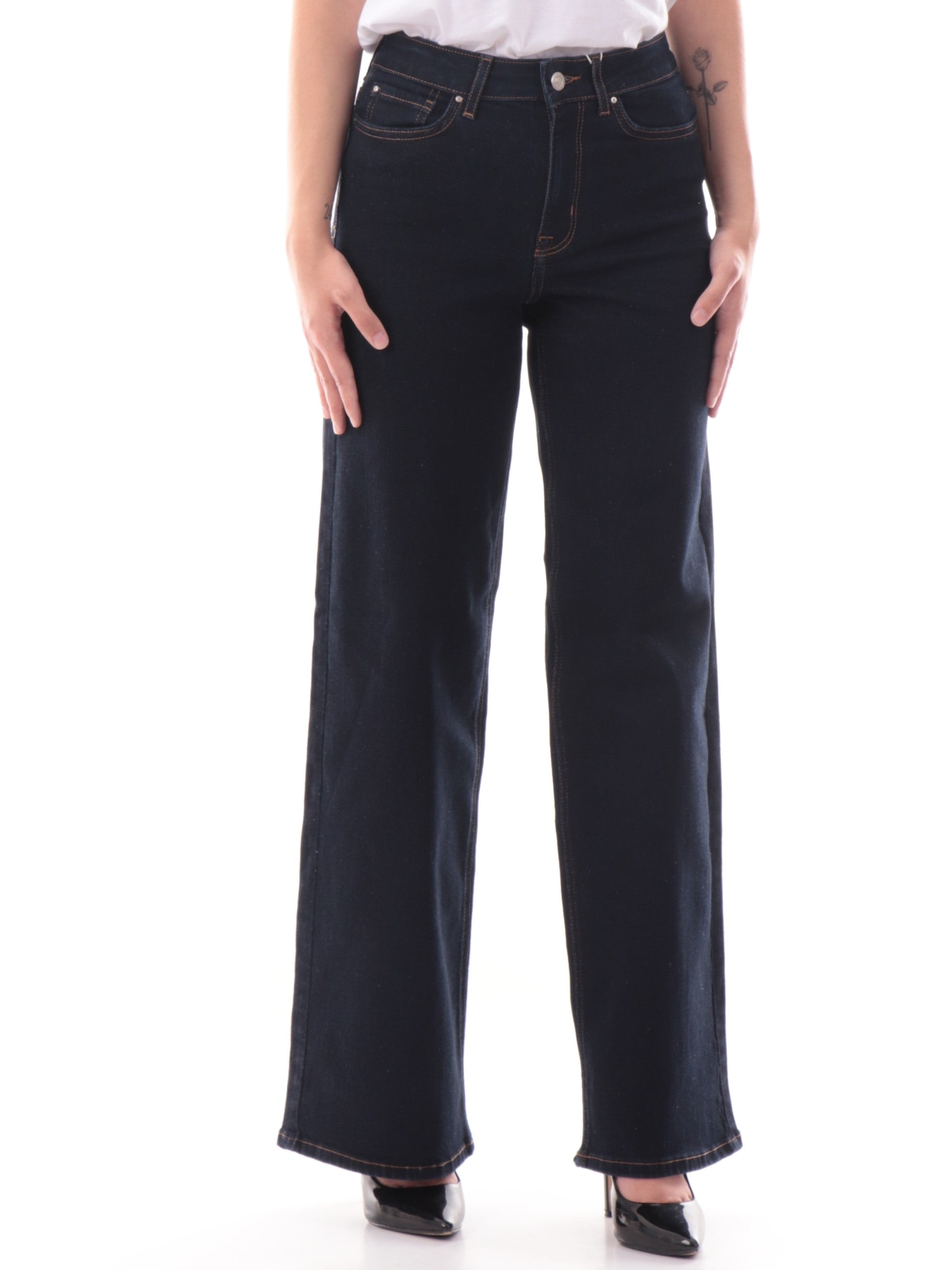 Jeans Only blu Wide da donna 15352206, realizzati in cotone elasticizzato jeans scuri. Questi pantaloni jeans Only blu hanno la chiusura con bottone logato più zip, cinque comode tasche e il fondo ampio a palazzo.