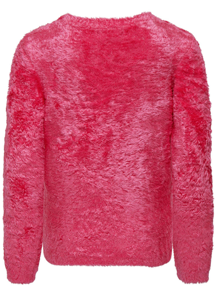 Maglione Only fucsia da bambina realizzato in morbido tessuto knitted . Questa maglia fucsia Only è caratterizzata da soft touch e un tessuto caldo ed avvolgente che crea un connubio di stile e comodità.
