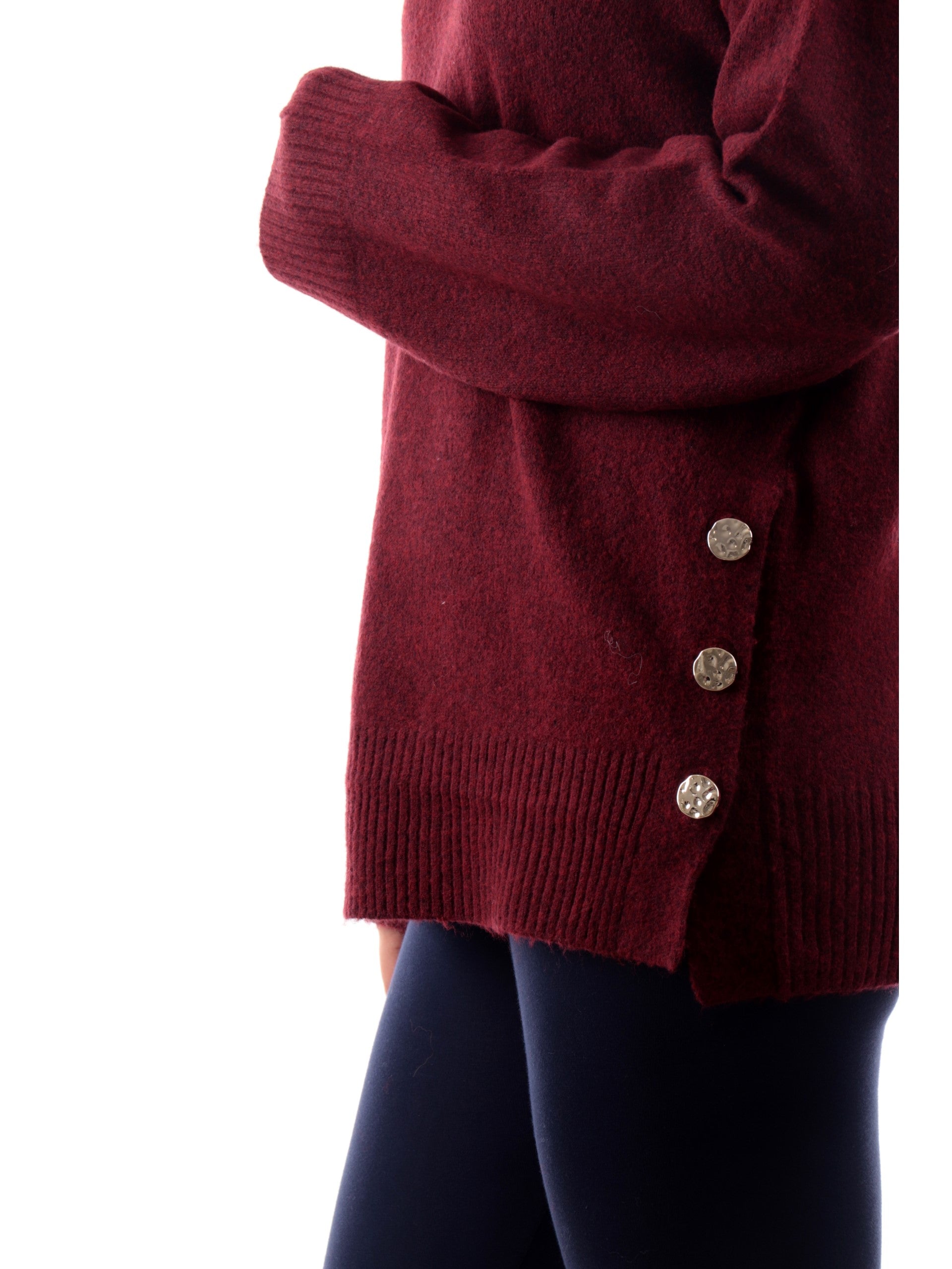 Maglione Only bordeaux da donna con bottoni oro 15350612