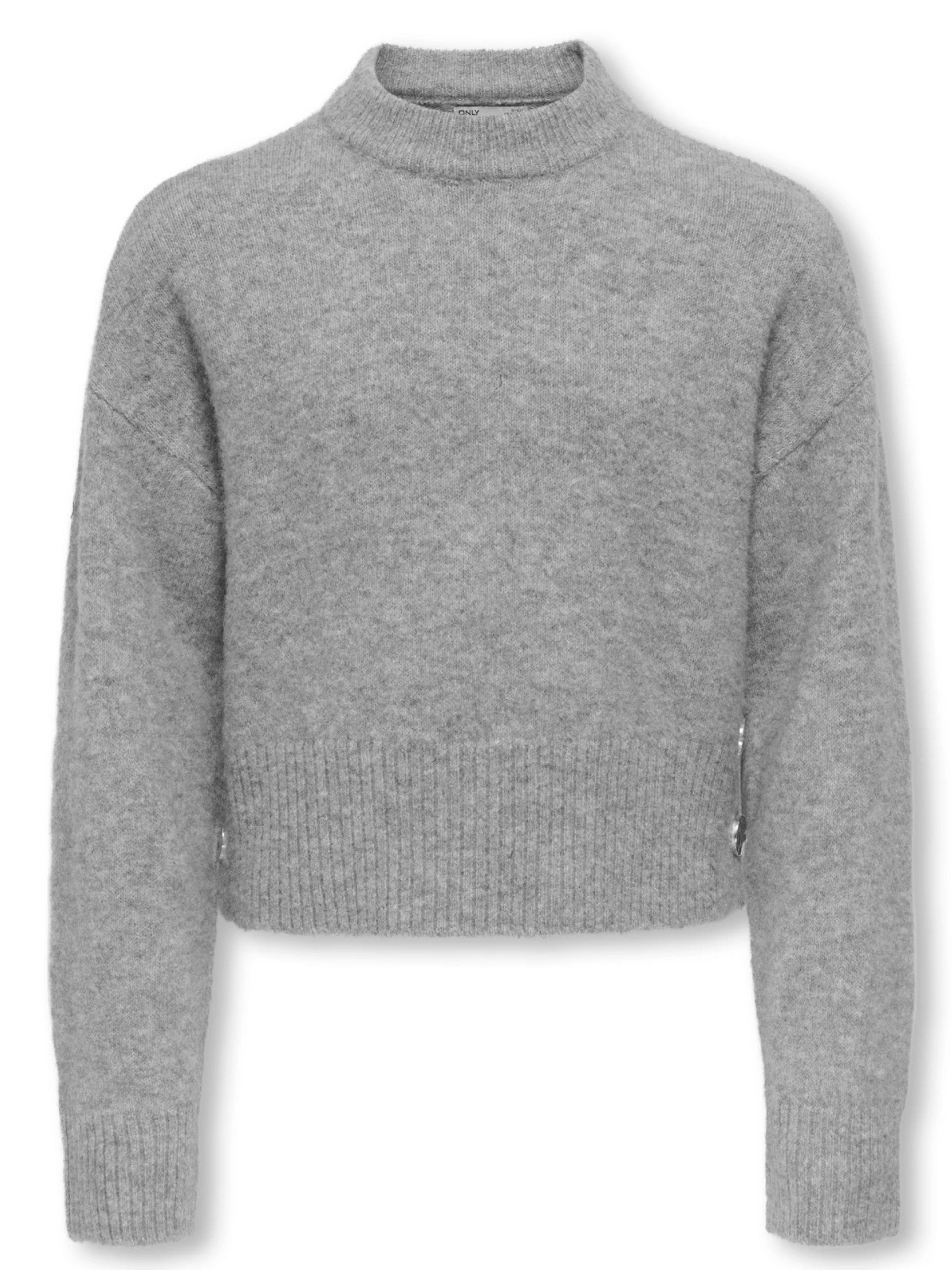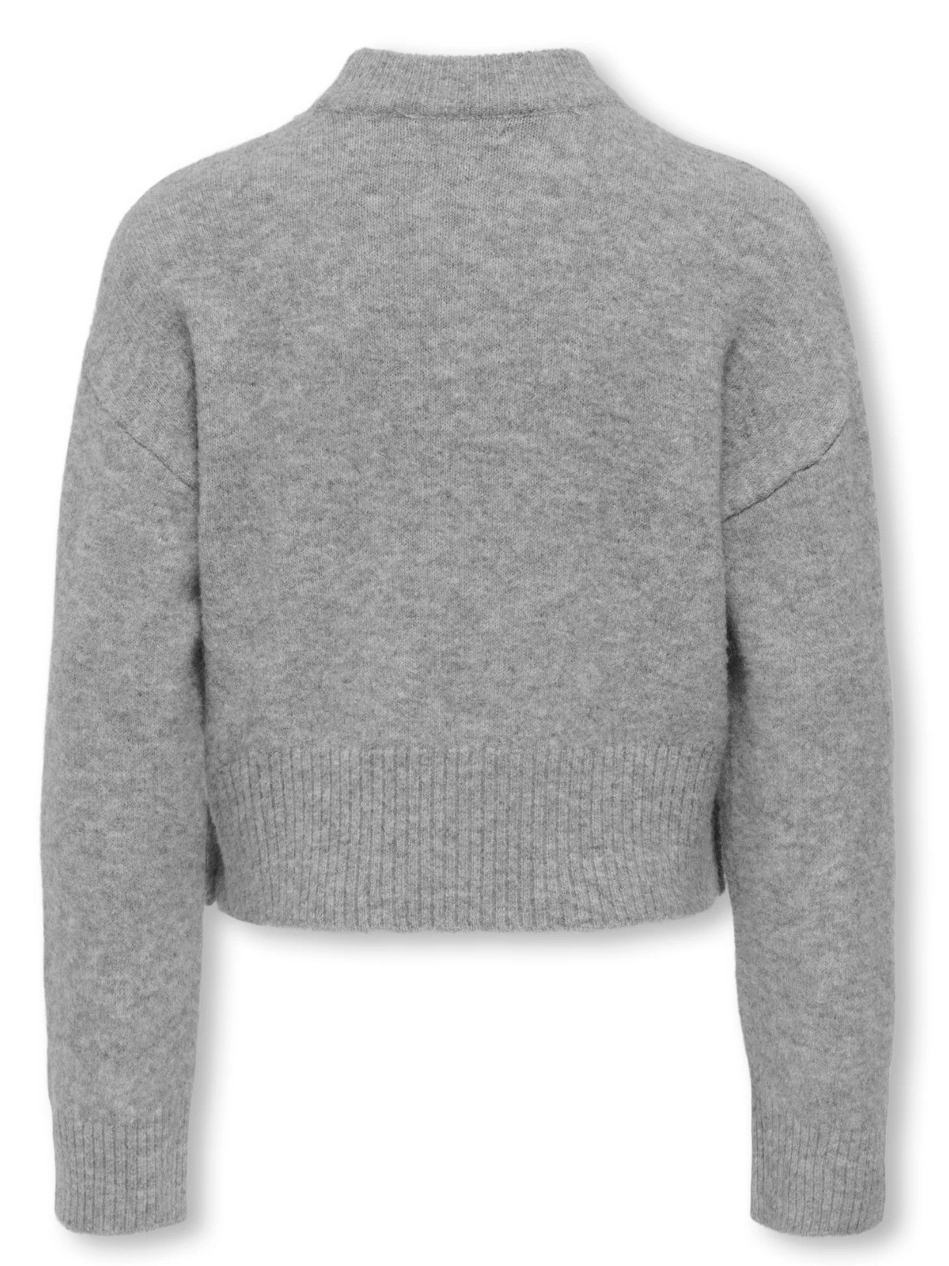 Maglione Only grigio da bambina realizzato in soffice ed avvolgente tessuto. Questo maglione bambina grigio è caratterizzato da vestibilità morbida e bottoni argento martellati .