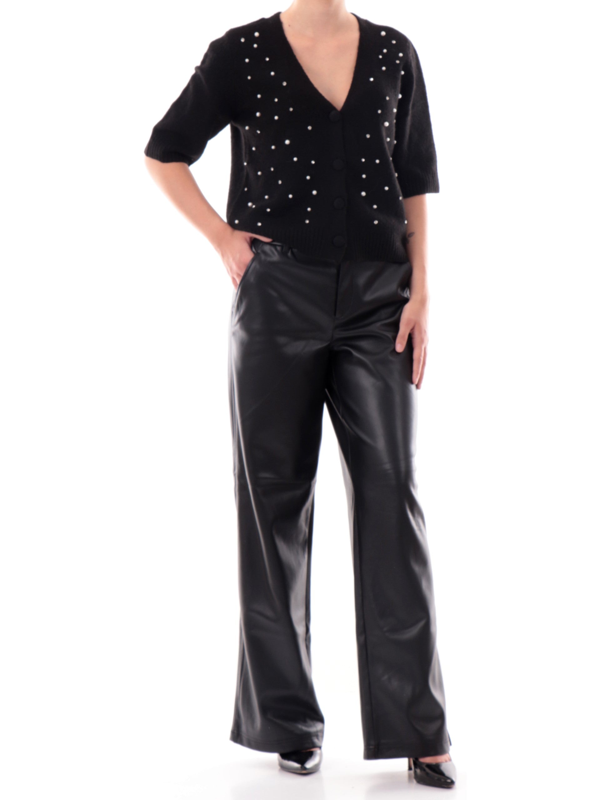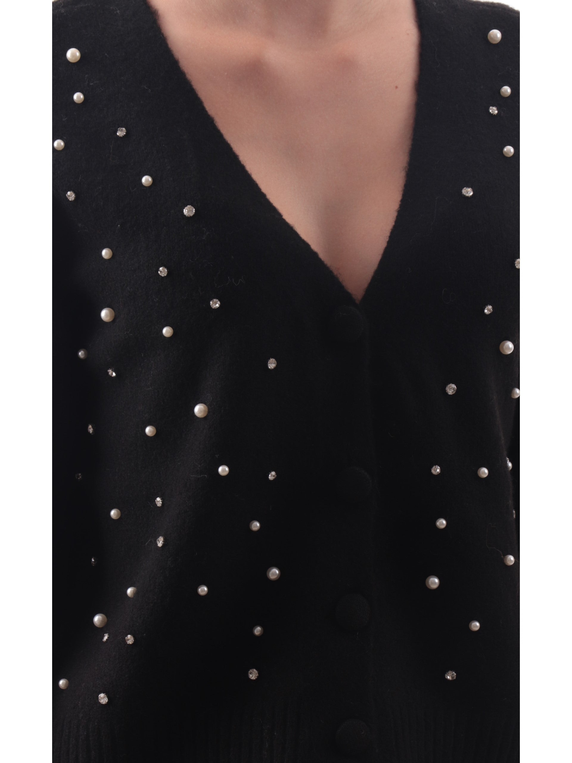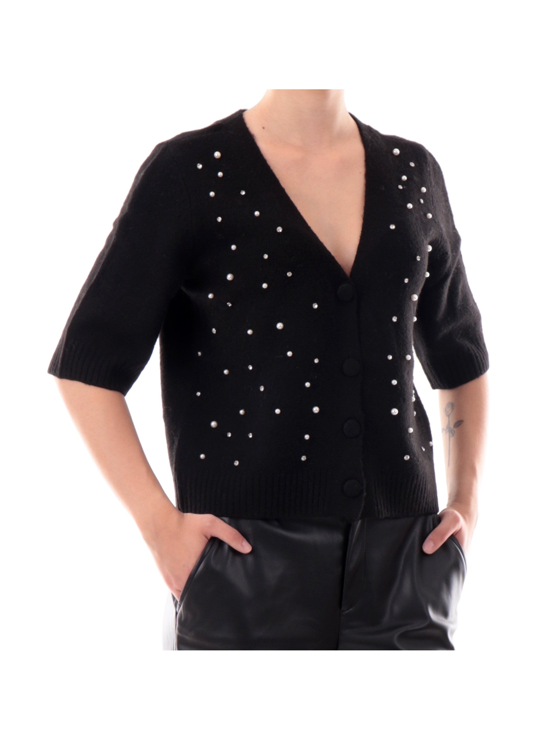 Maglione Only nero da donna con bottoni sul davanti e dettagli strass e perle 15350615-BLACK