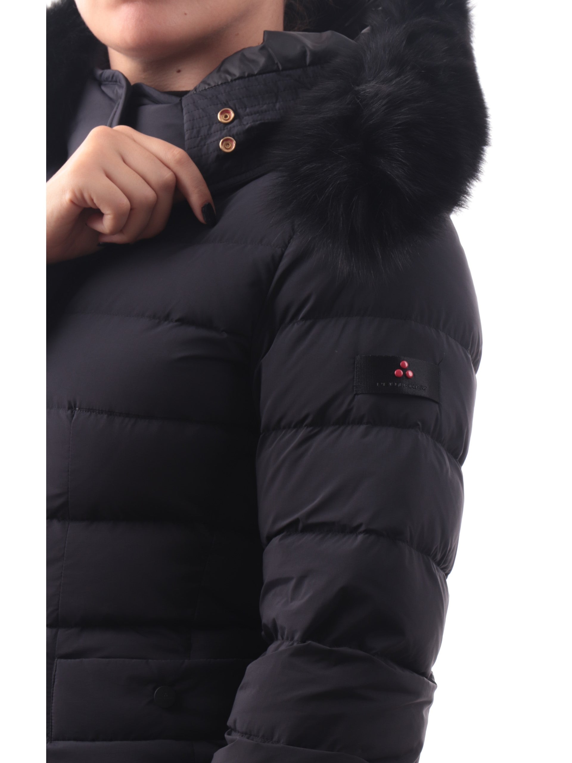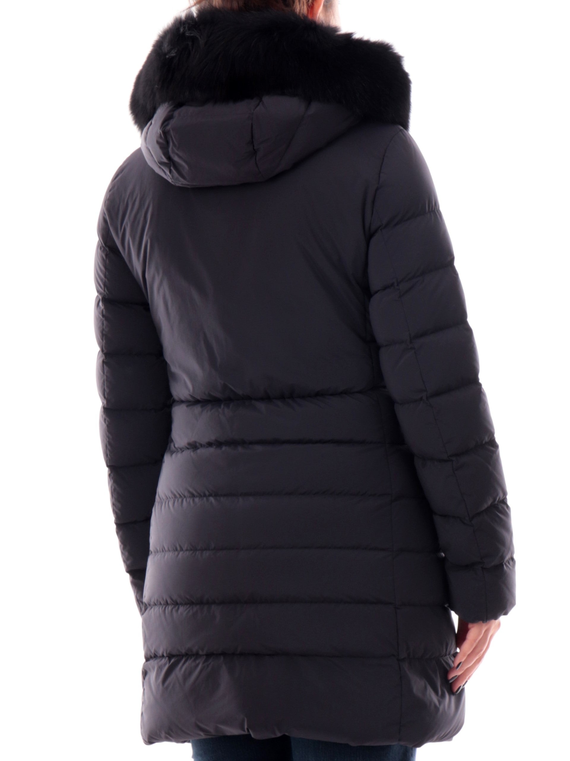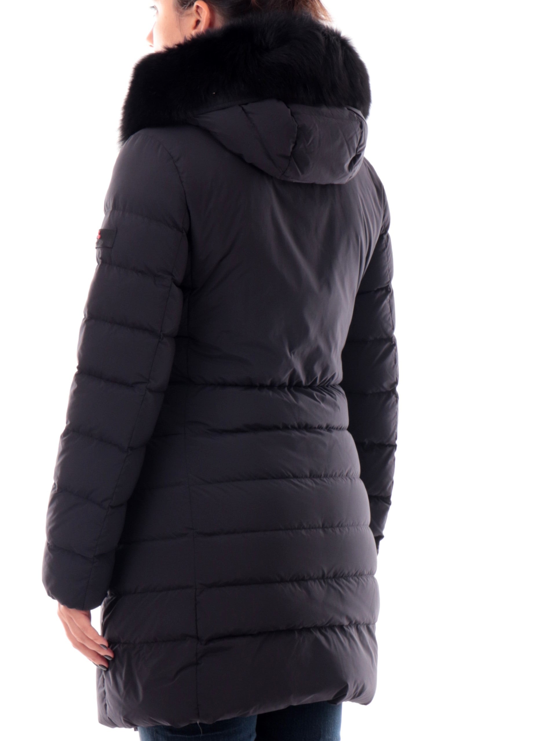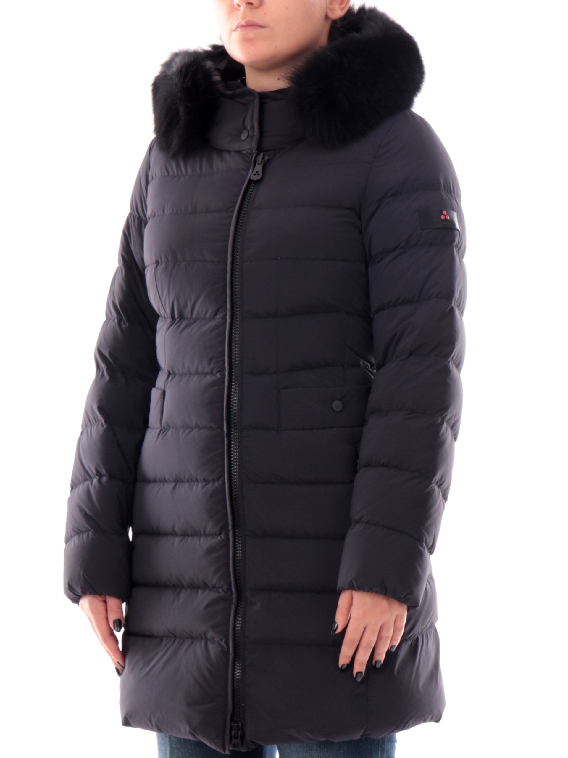 Cappotto da donna nero Peuterey Seriola con cappuccio fisso con pelliccia vera 5458011190986808