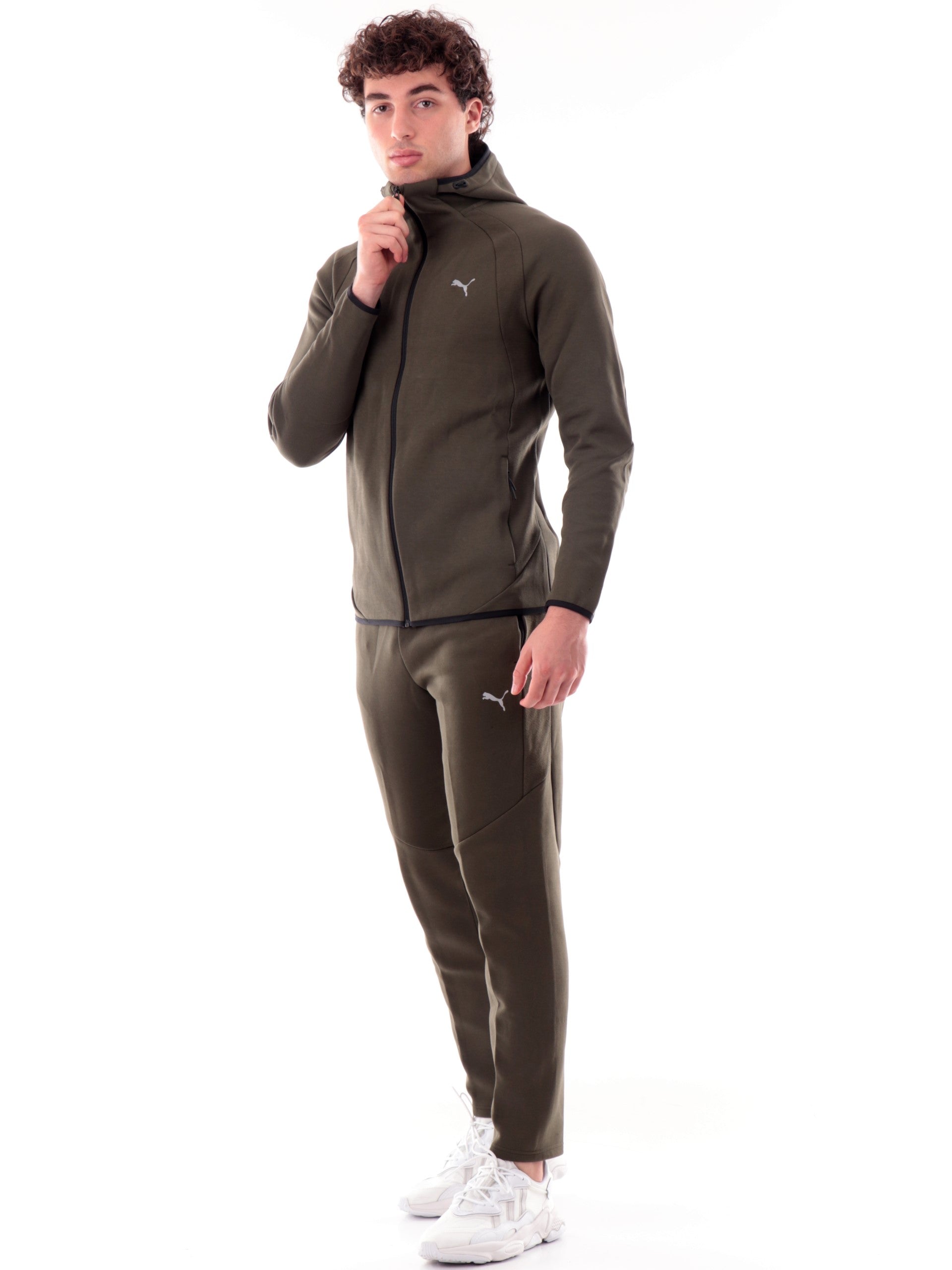 Felpa Puma Evostripe verde da uomo full zip con cappuccio 688231