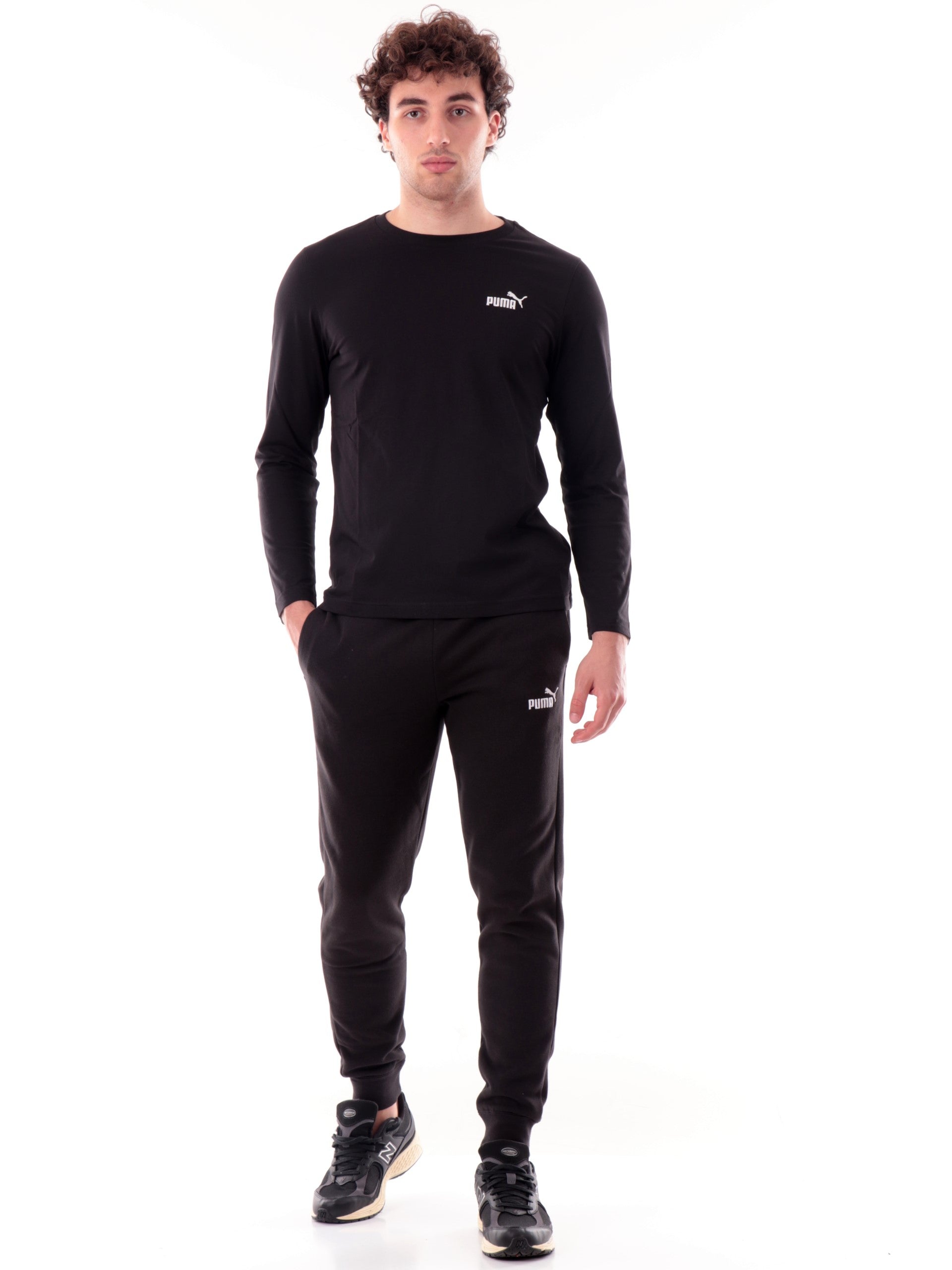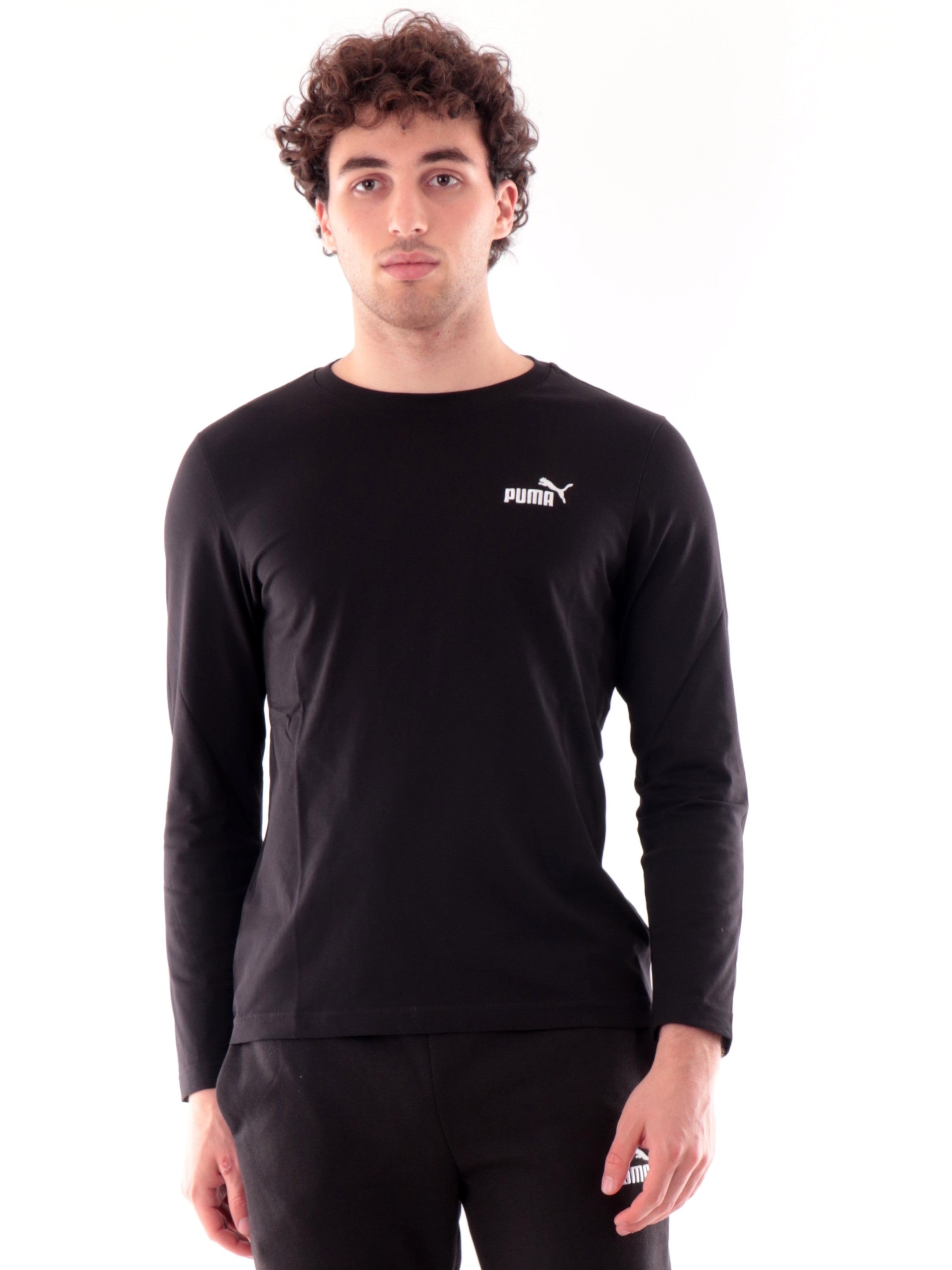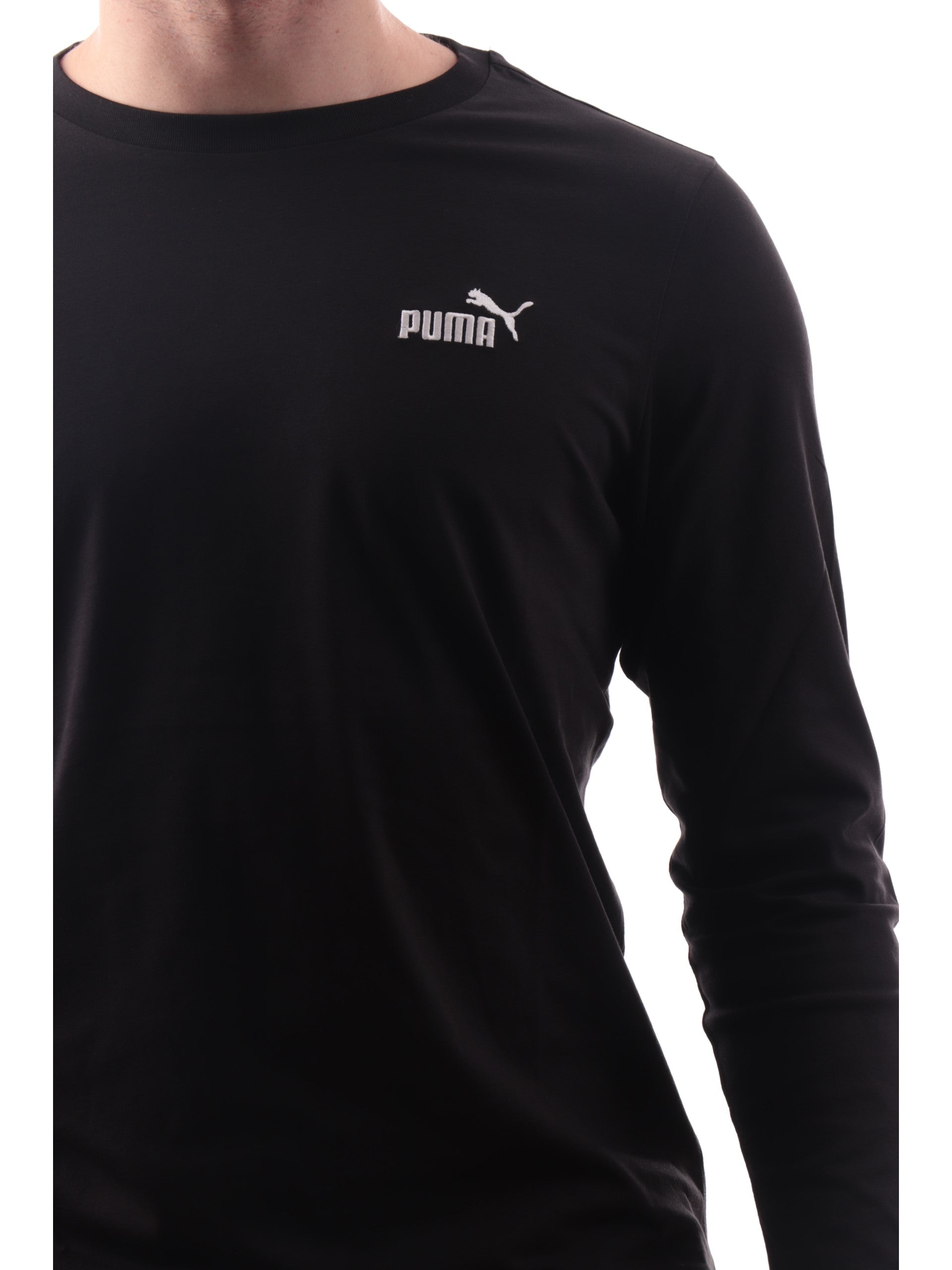 Maglia Puma nera maniche lunghe da uomo girocollo 682546, realizzata in 100% cotone. Questa t-shirt Puma nera girocollo ha le maniche lunghe e il logo Puma ricamato lato cuore.