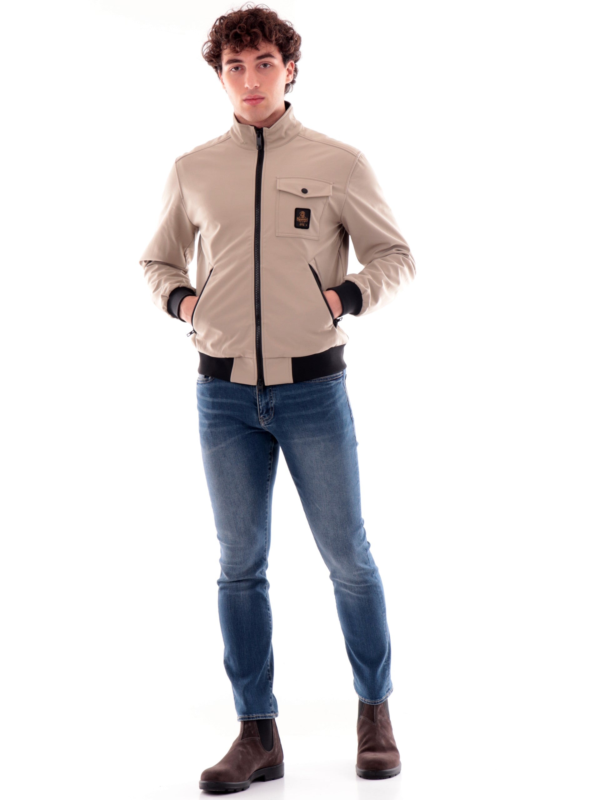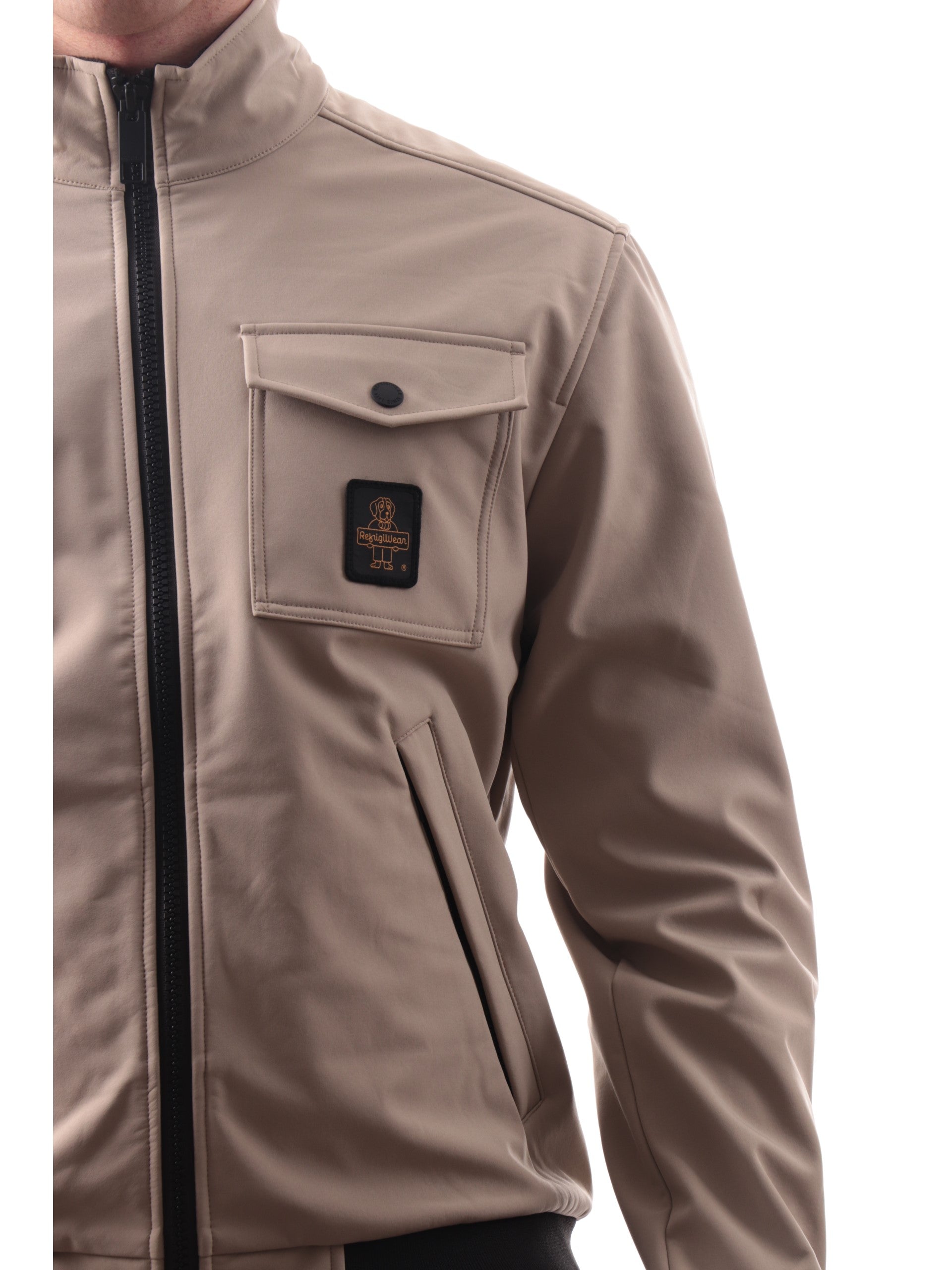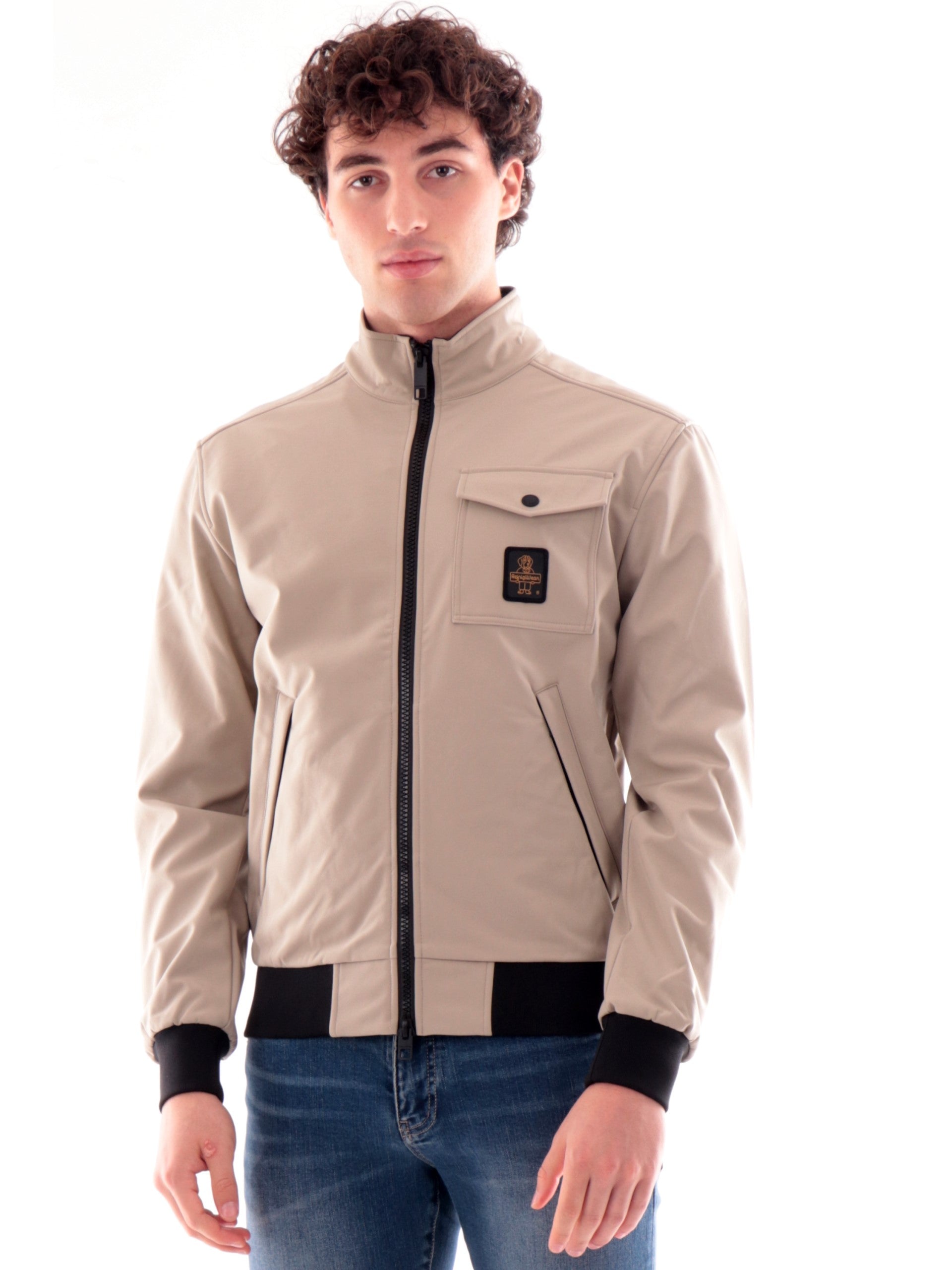 Giacca Refrigiwear beige da uomo full zip Captain G00808, realizzato in morbido tessuto a tinta unita. Questo giubbino Refrigiwear beige ha lo scaldacollo, la chiusura full zip centrale con doppio cursore logato, due tasche laterali con zip, un taschino con patta a bottone automatico, il logo del brand sul cuore a contrasto colore, i polsini e il fondo elasticizzati a costine.