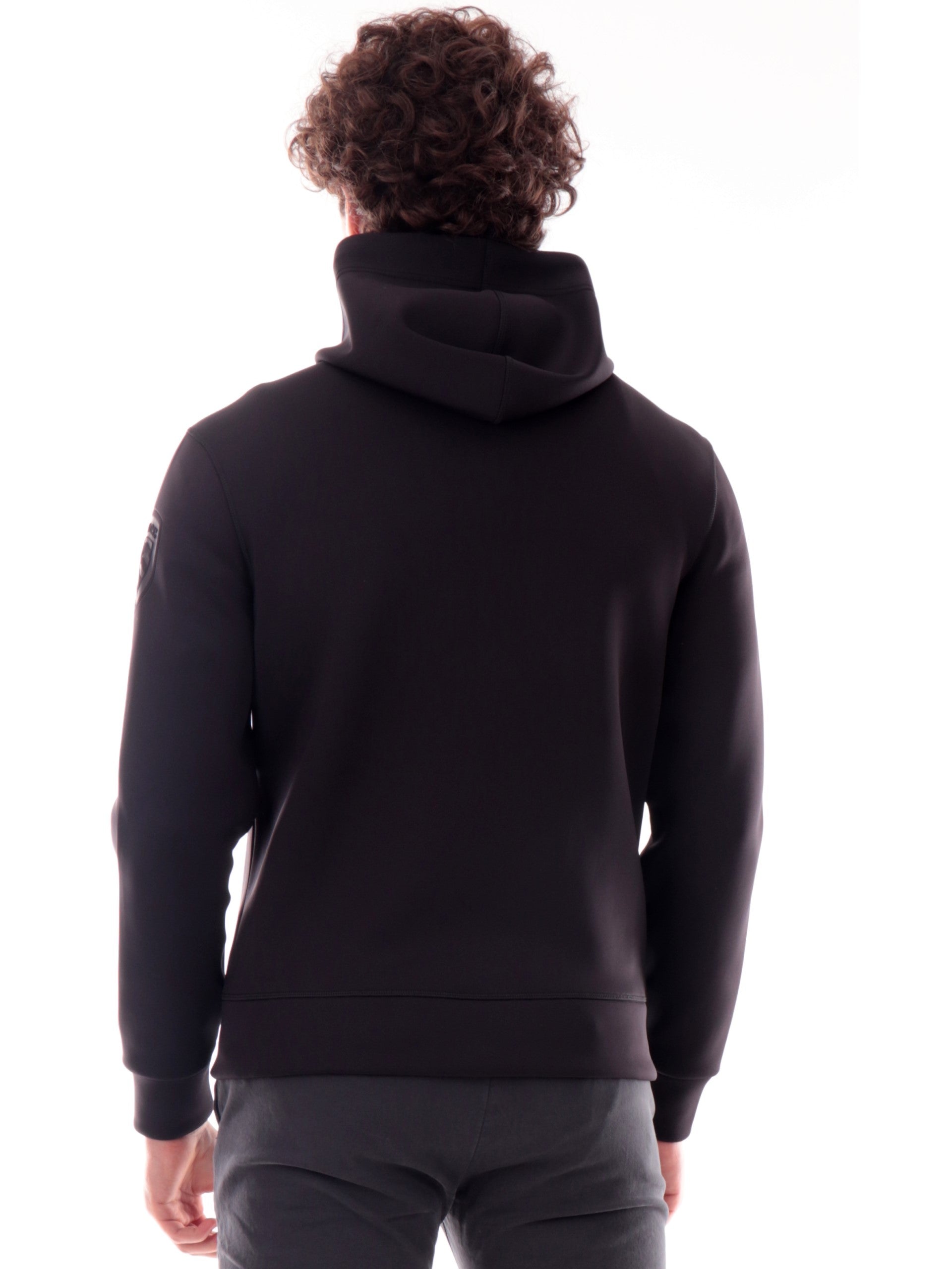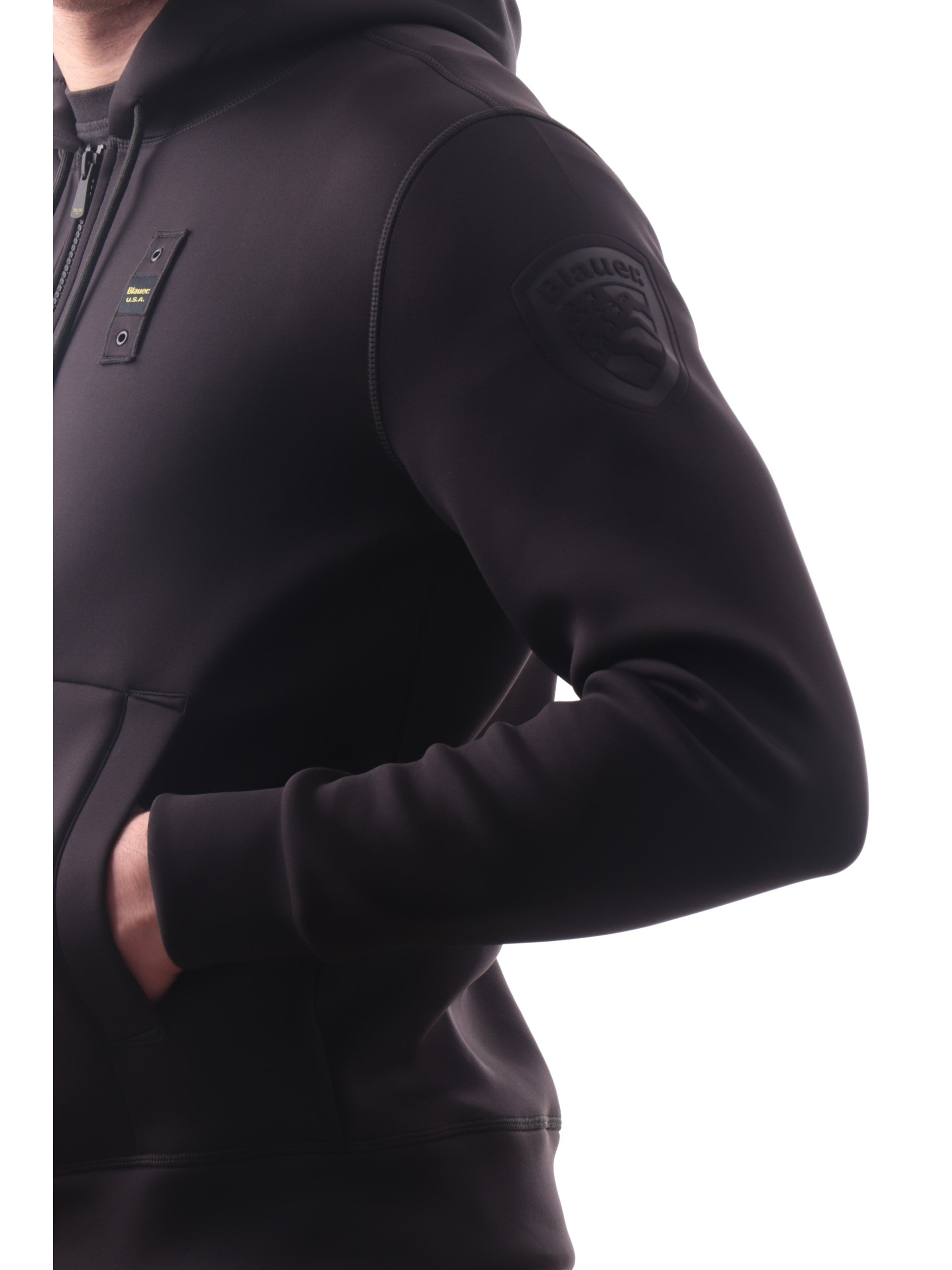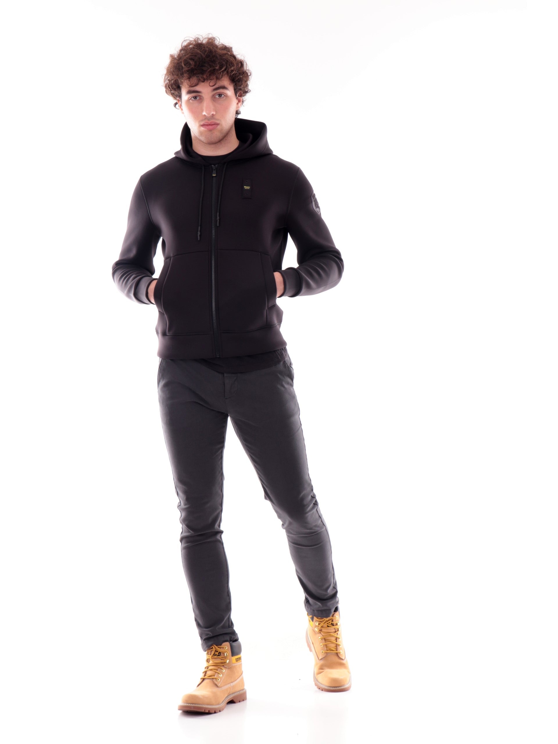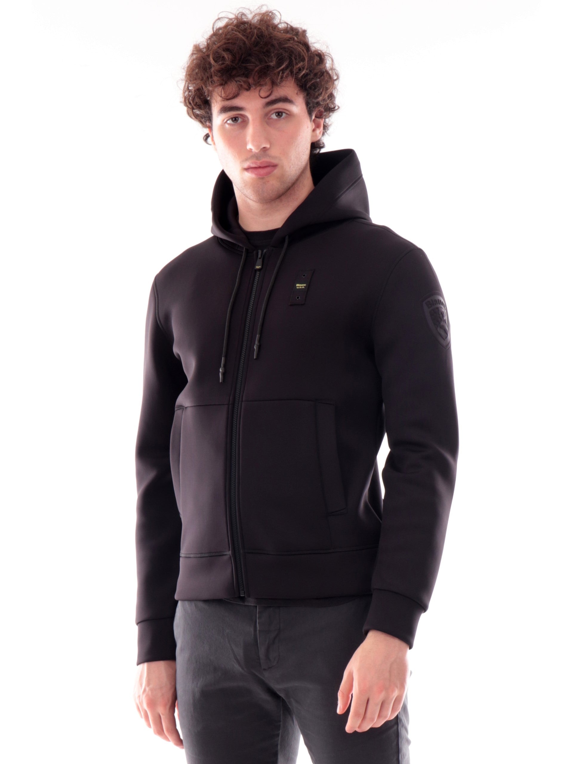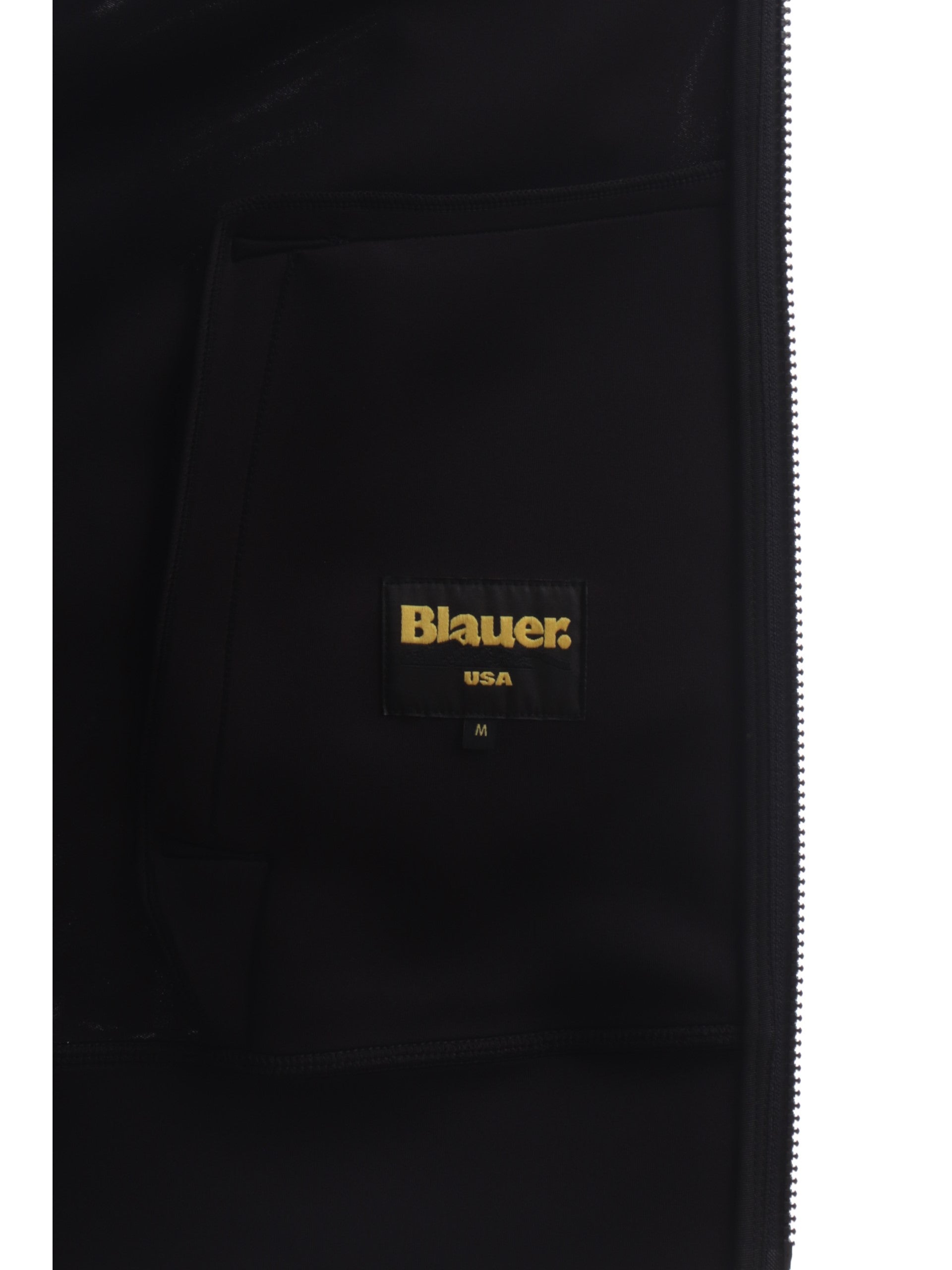 Felpa Blauer nera da uomo Colby. Questa felpa Blauer nera è realizzata da un tessuto tecnico perfetto per la stagione autunno-inverno. Questa felpa Blauer da uomo è caratterizzata da cappuccio fisso con lacci, chiusura full zip centrale, due tasche laterali aperte, polsini e fondo regolare. Sul davanti di questa felpa Blauer troviamo il logo del brand a lato cuore