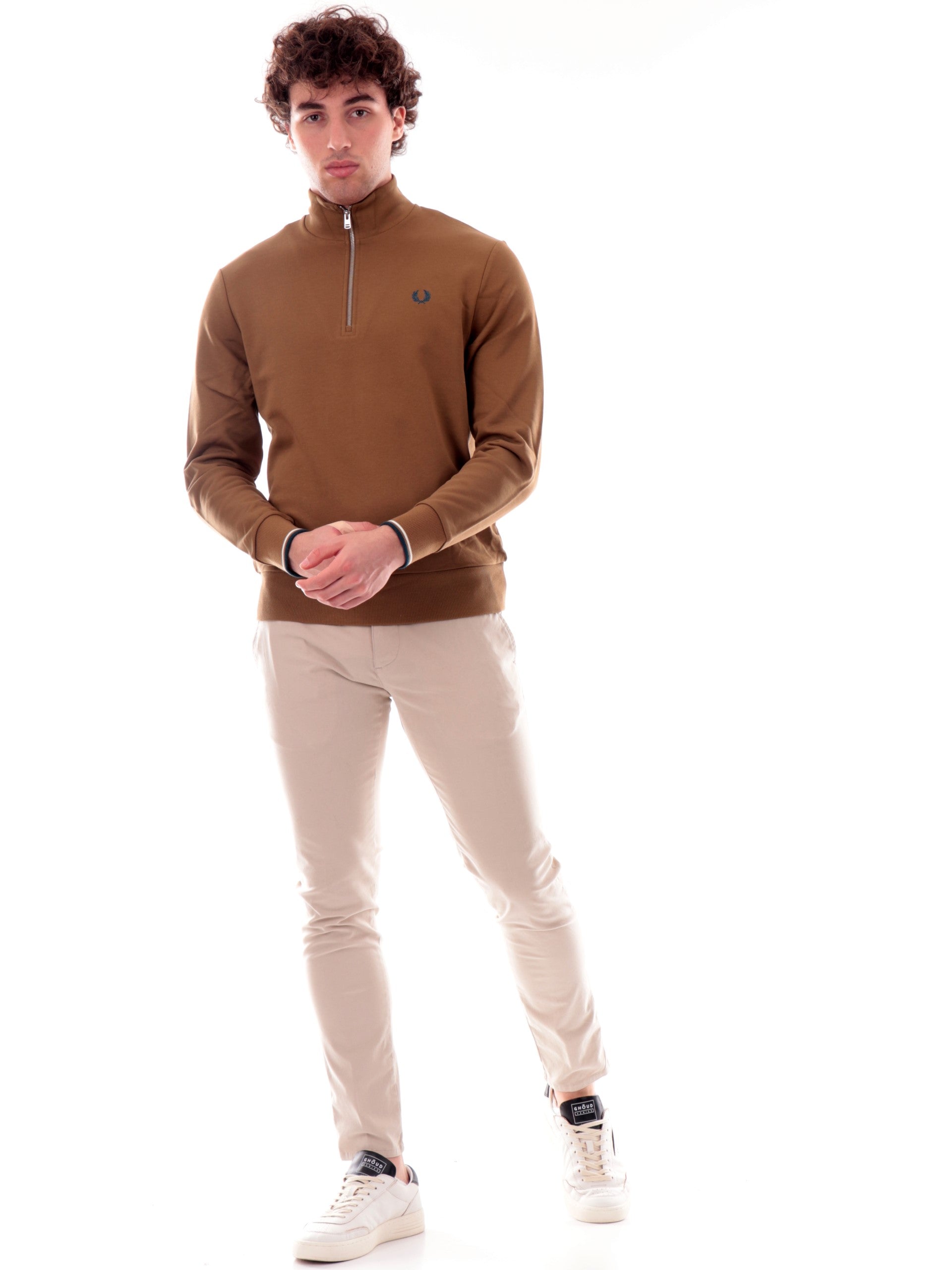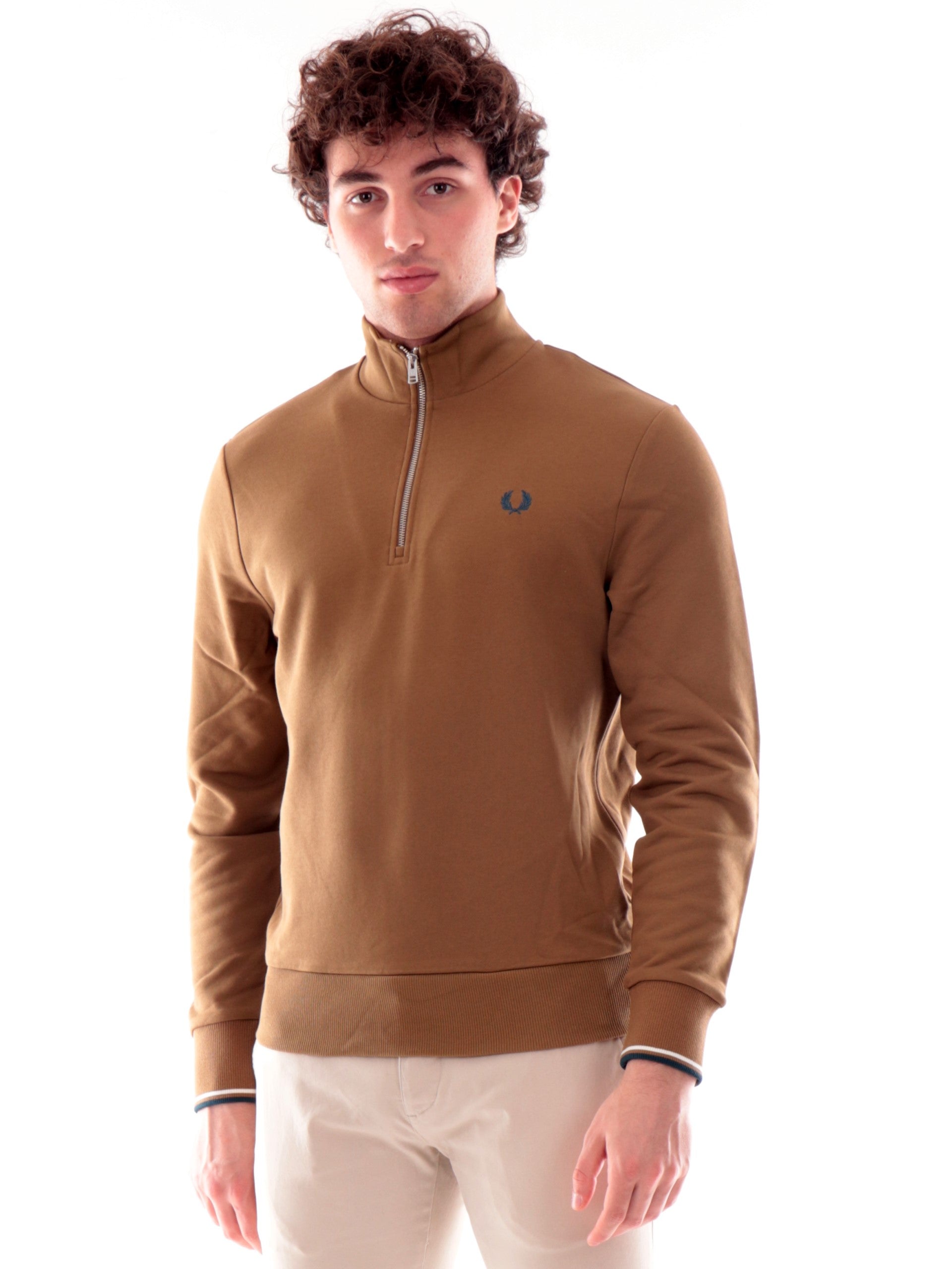 Felpa Fred Perry marrone da uomo mezza zip M3574Z60
