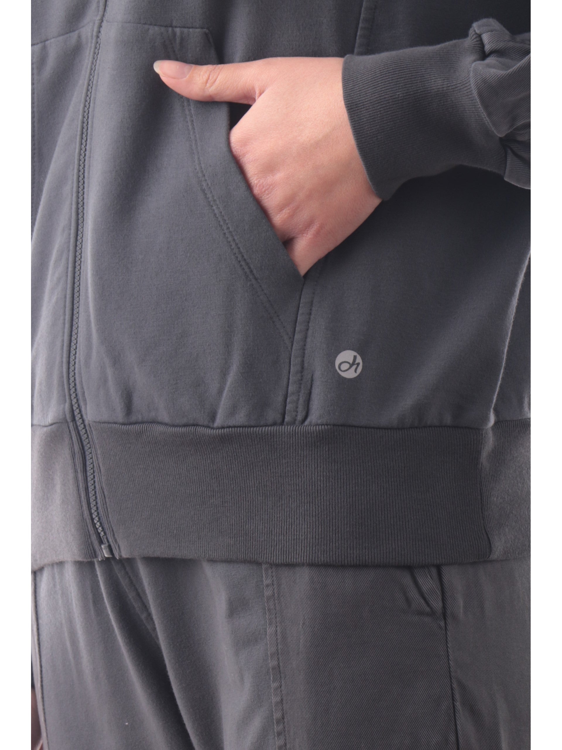 Felpa grigia Deha con cappuccio felpata. Questa felpa grigia Deha realizzata in cotone è caratterizzata da un cappuccio regolabile con lacci, chiusura centrale full zip, due tasche laterali aperte, polsini e fondo elasticizzati a costine. Questa felpa con cappuccio grazie alla sua versalità è un Must-have comodo e adatto sia per i momenti di attività fisica sia da tutti i giorni. Al suo interno troviamo un tessuto felpato perfetto per la stagione autunno-inverno
