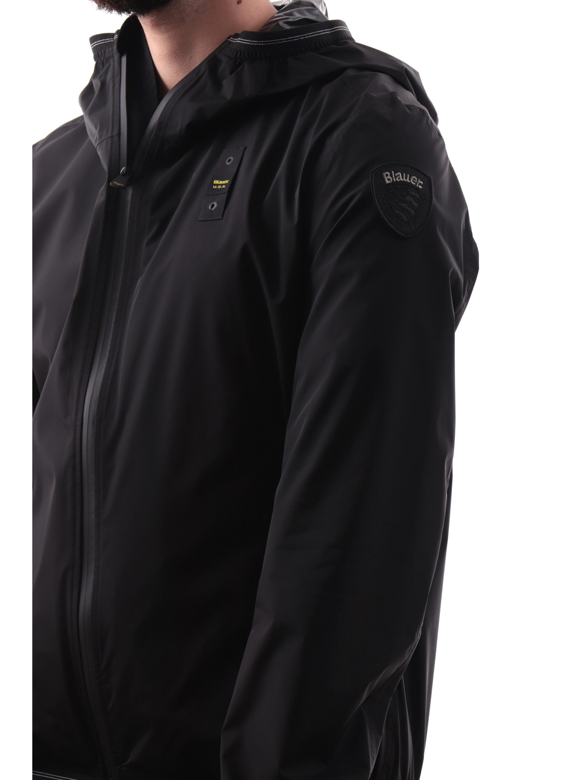 Giacca Blauer Farrin nera da uomo tessuto tecnico C11541007110. Questo giubbino Blauer nero ha il cappuccio fisso con banda elastica, la chiusura full zip centrale termonastrata, due tasche laterali con zip, il patch del brand applicato sulla manica sinistra, polsini e fondo elasticizzati.