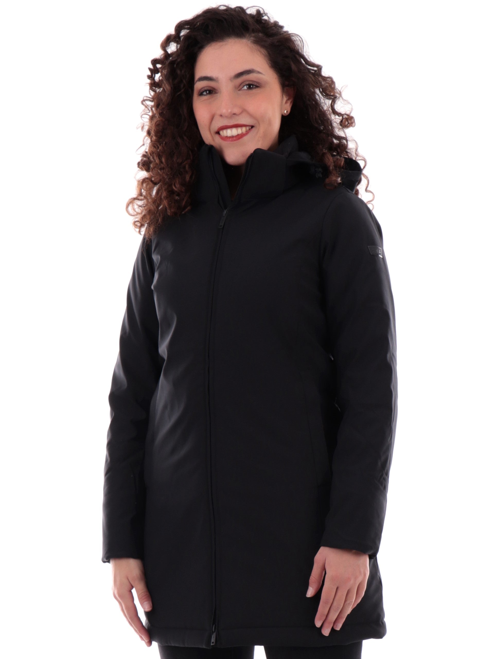 Cappotto CMP nero da donna con cappuccio e chiusura full zip 33K3556