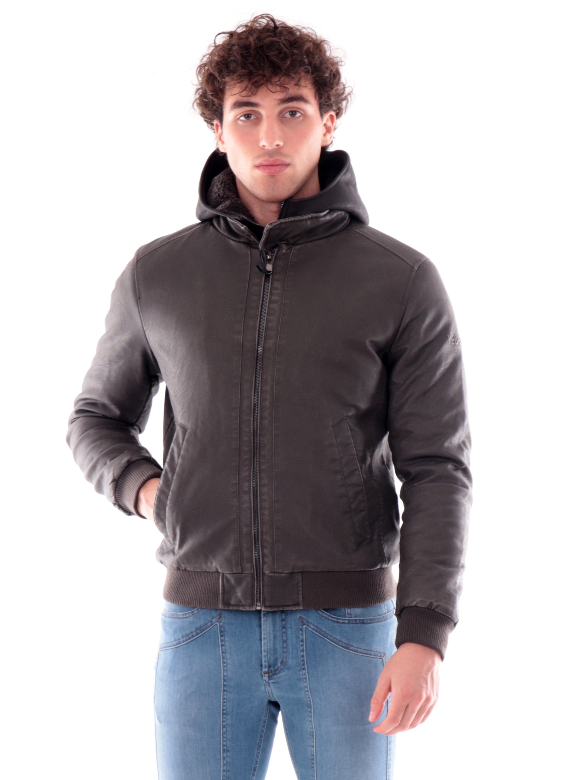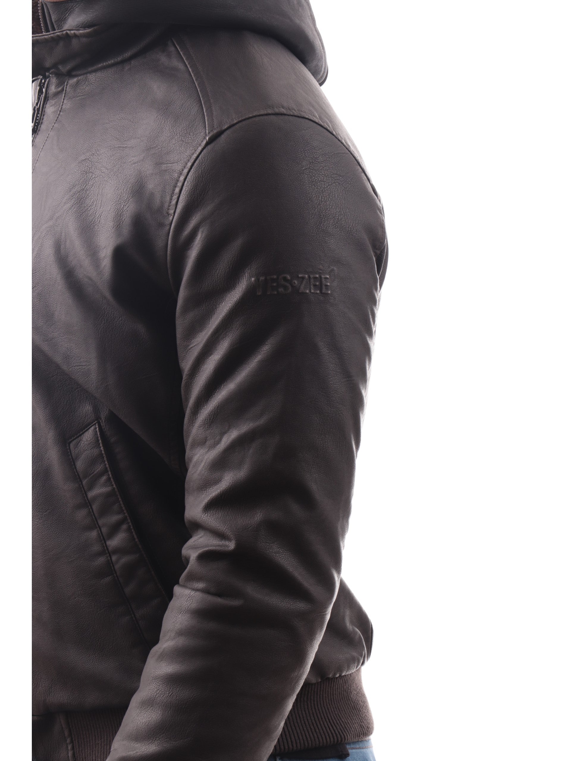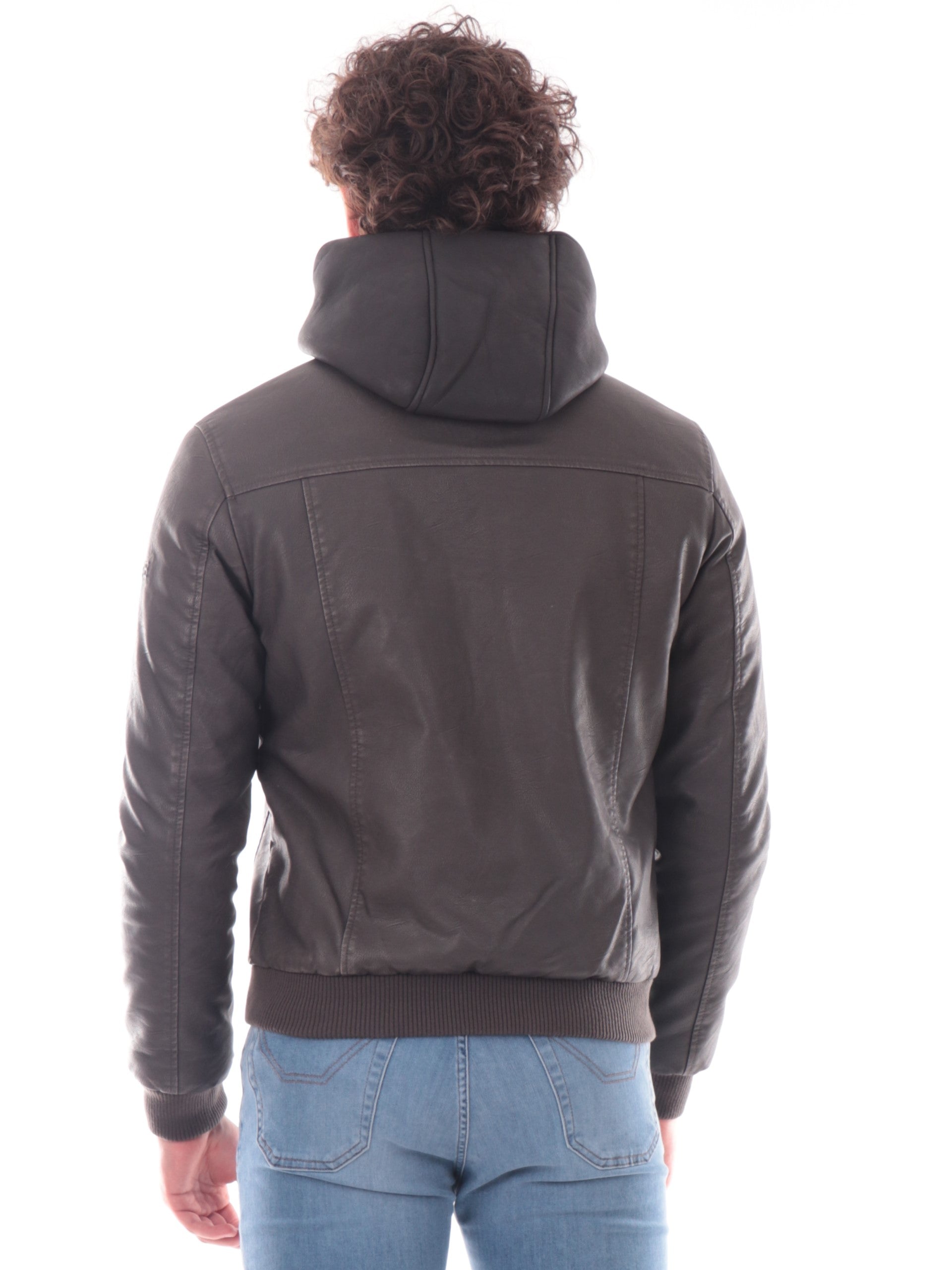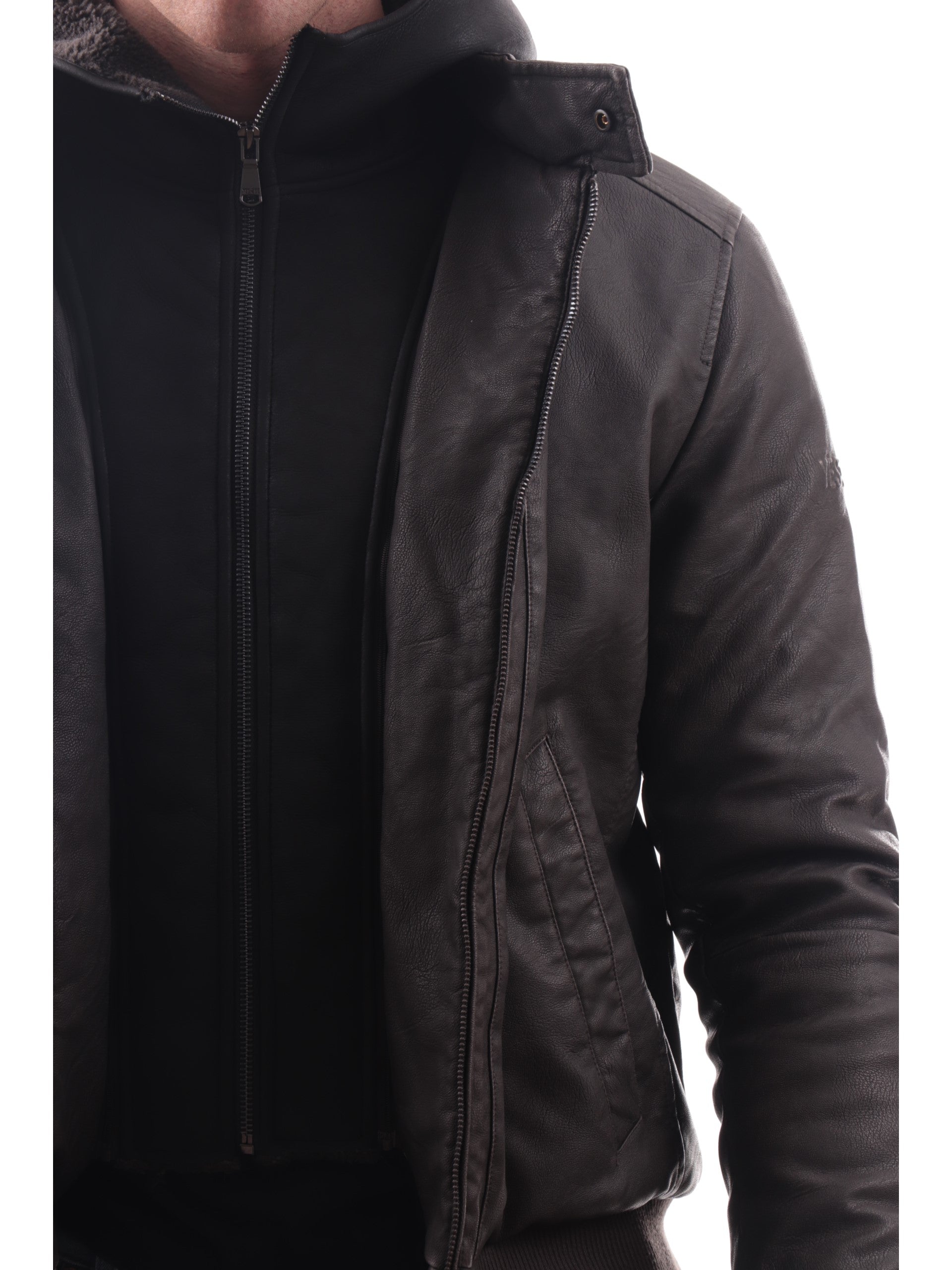 Giacca ecopelle con gilet finto removibile YES ZEE da uomo marrone. Questa giacca di pelle è caratterizzata da un gilet finto removibile (rimuovendolo verrà tolto anche il cappuccio), realizzato conun'imbottitura teddy eco. Questa giacca di pelle è caratterizzata da una chiusura full zip centrale, due tasche laterali aperte, polsini il fondo elasticizzati a costine e il logo del brand sulla manica sinistra
