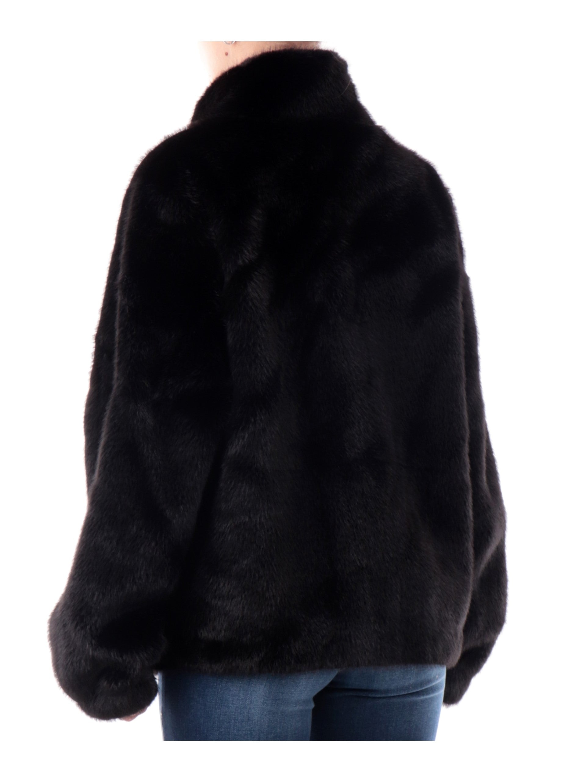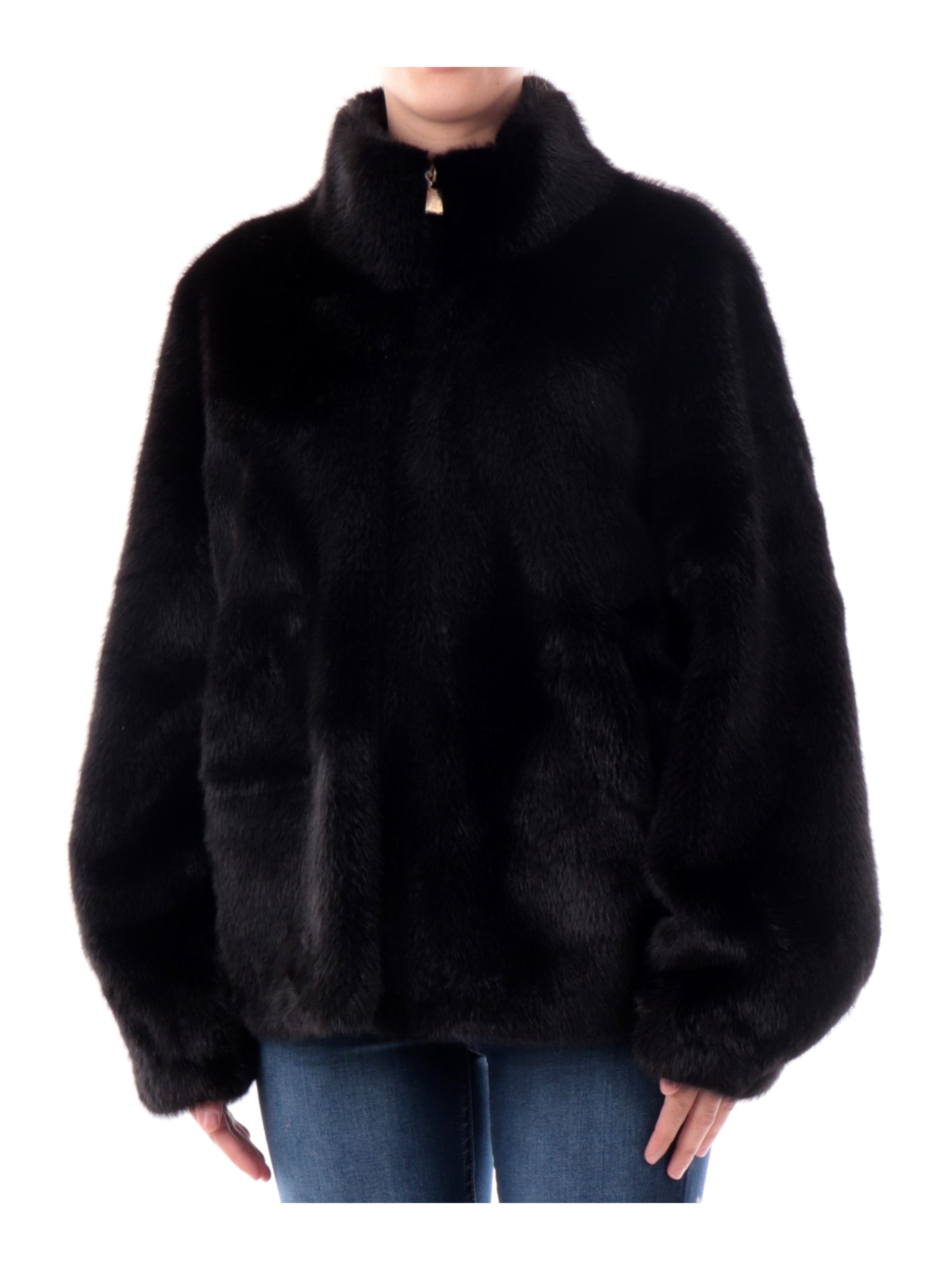 Giacca Yes Zee ecopelliccia nera da donna con tasche e collo alto J046KI00-0801