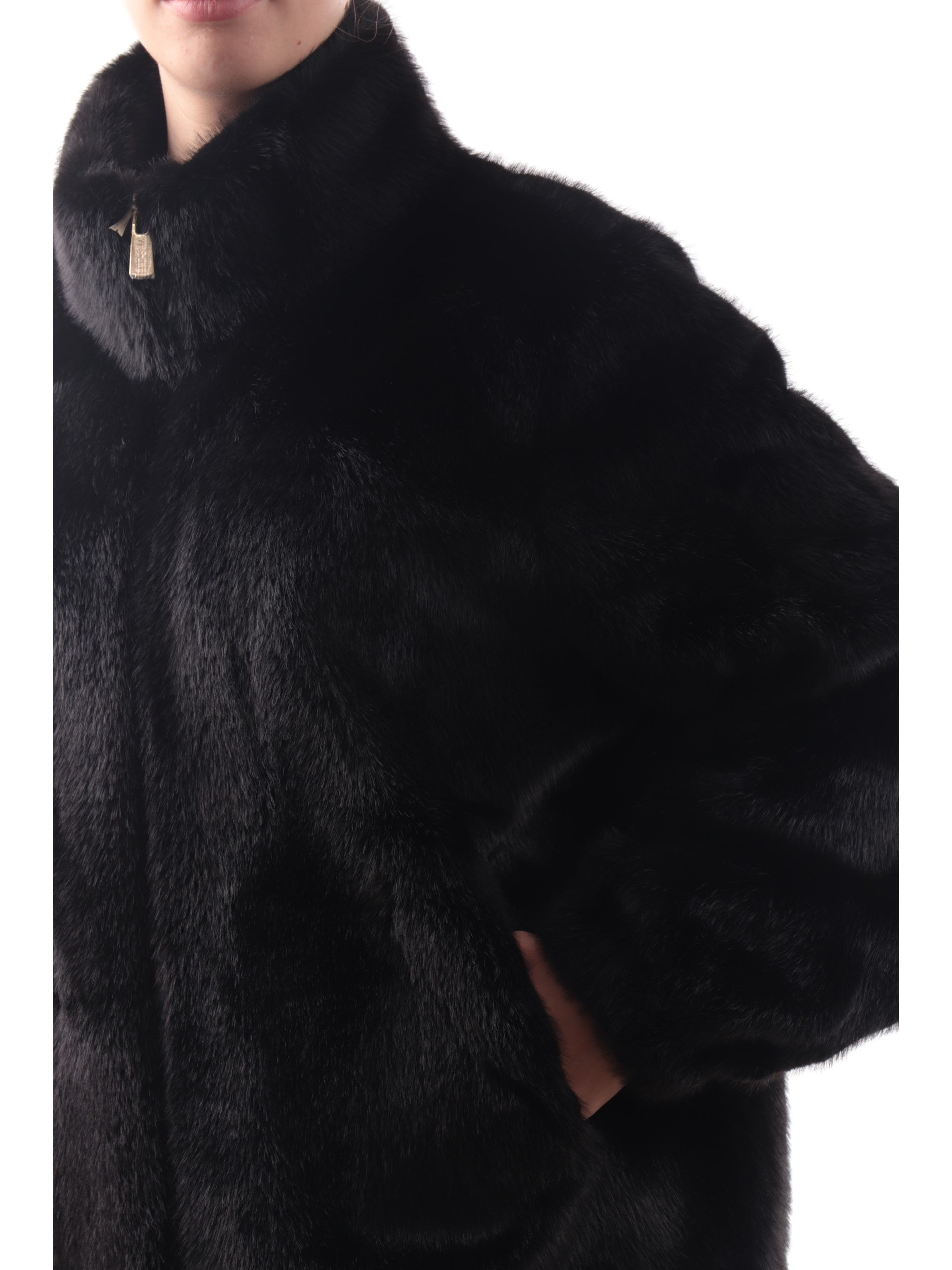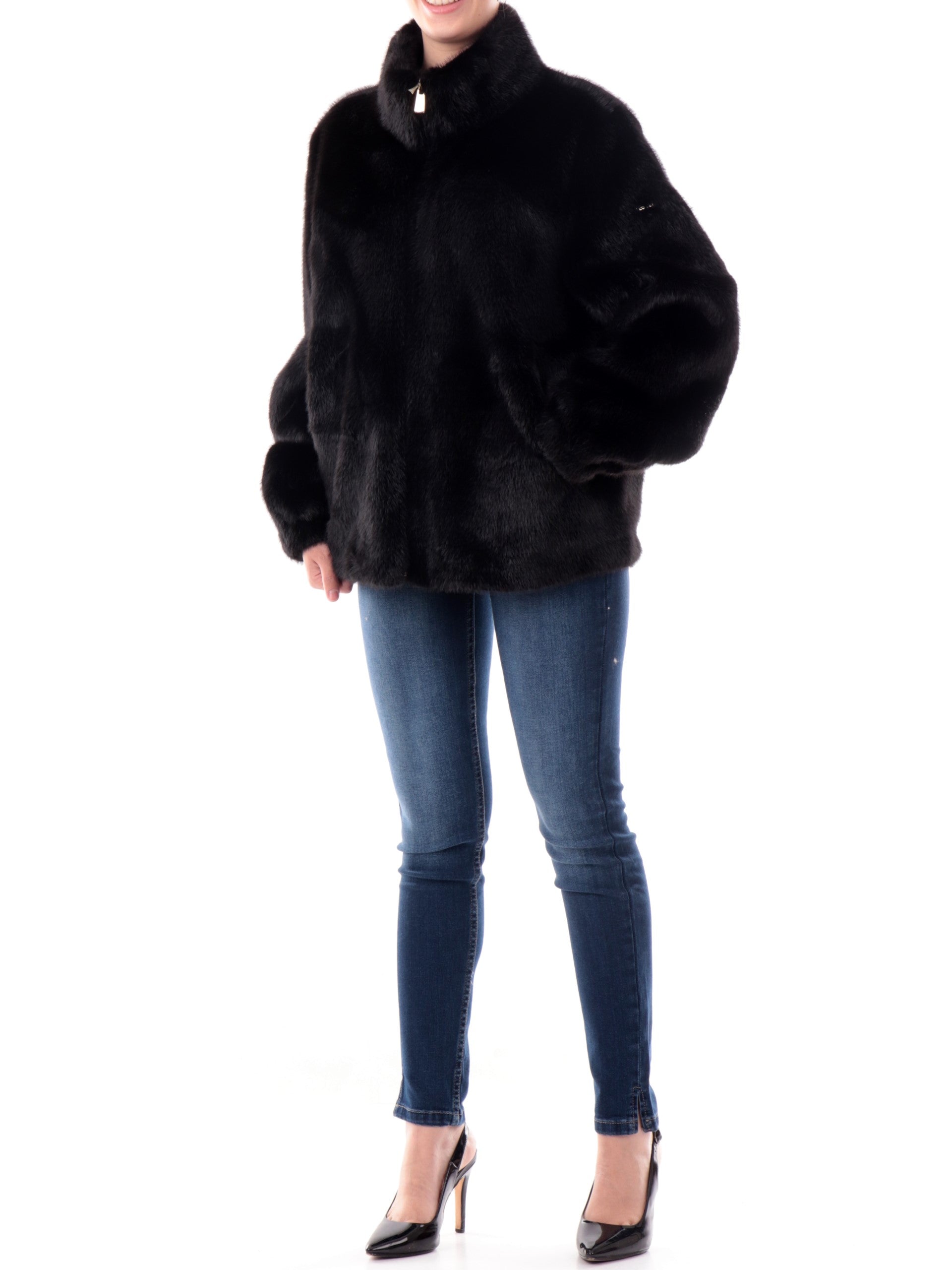 Giacca Yes Zee ecopelliccia nera da donna con tasche e collo alto con cerniera. Questa Giacca donna è realizzata in morbido tessuto caldo e morbido. Questa ecopelliccia donna unisce praticità e tendenza con un occhio alla sostenibilità.