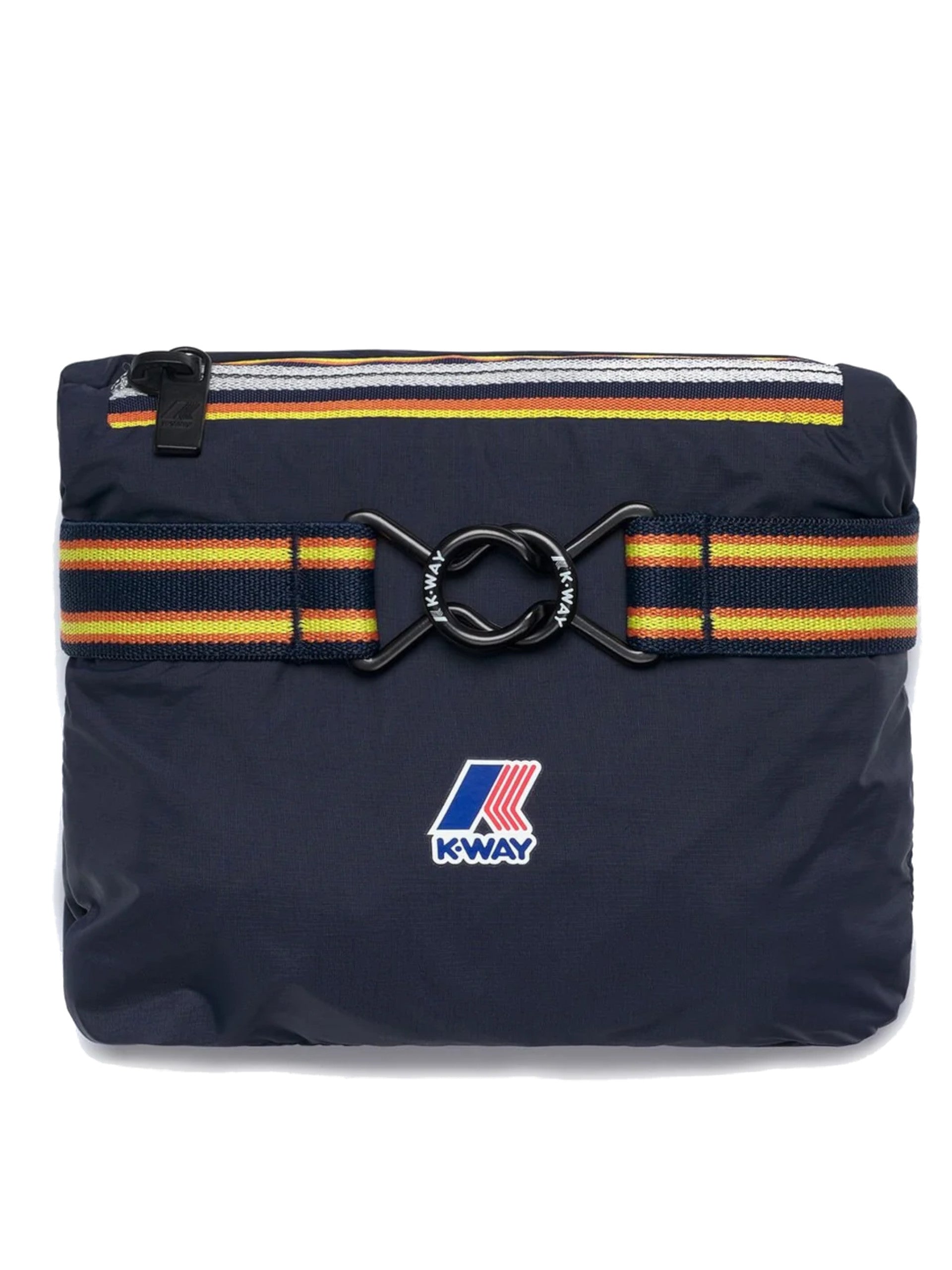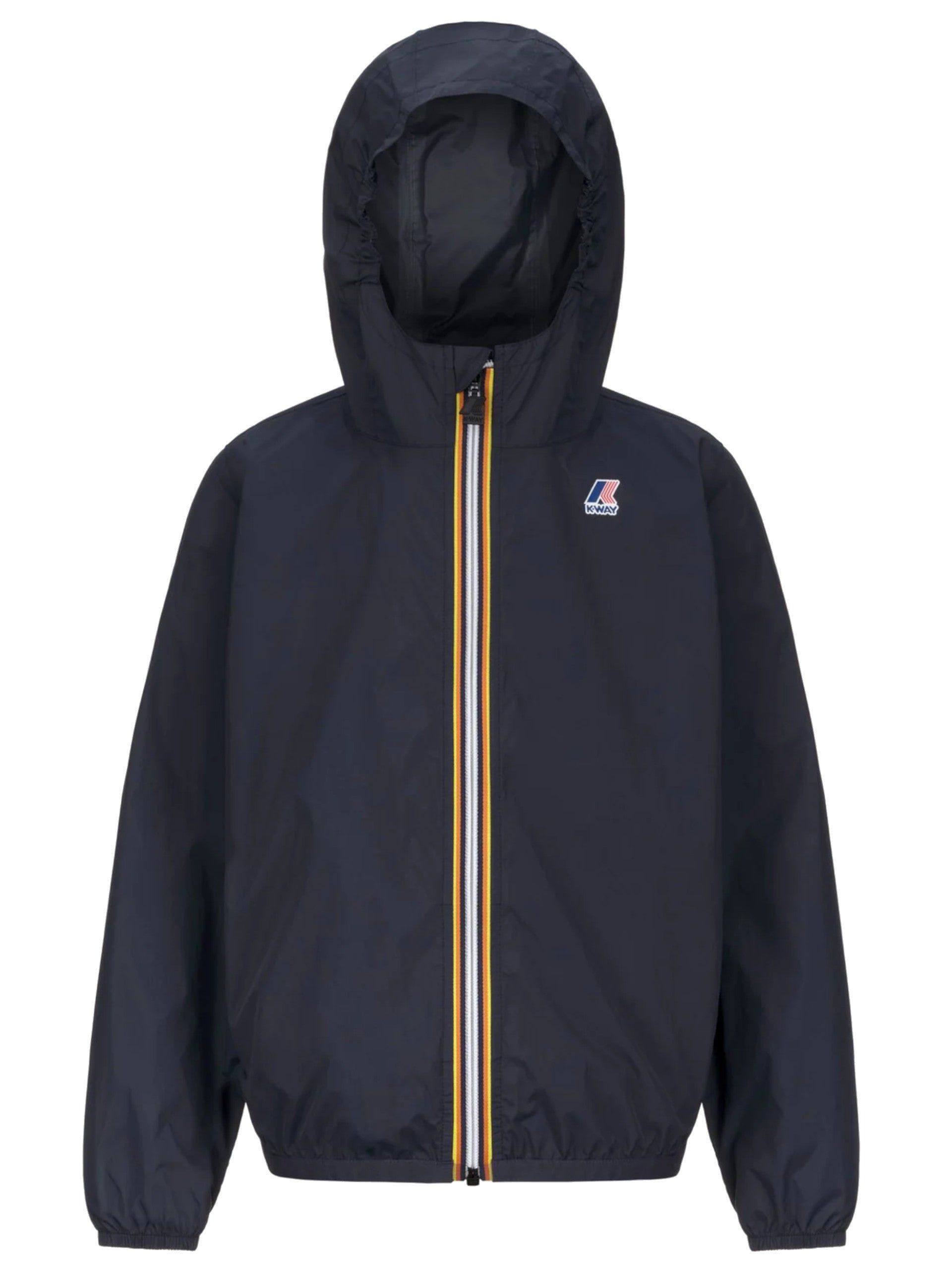 Giubbino K-Way blu da bambino Le Vrai 4.0 Claude Warm. Questo giubbino K-Way verde da bambino è realizzato da un tessuto tecnico impermeabile, resistente all'acqua perfetto per le gornate piovose ed è caratterizzato da cappuccio fisso, chiusura centrale full zip, due tasche laterali con zip, polsini e fondo elasticizzati e il logo del brand applicato a lato cuore.