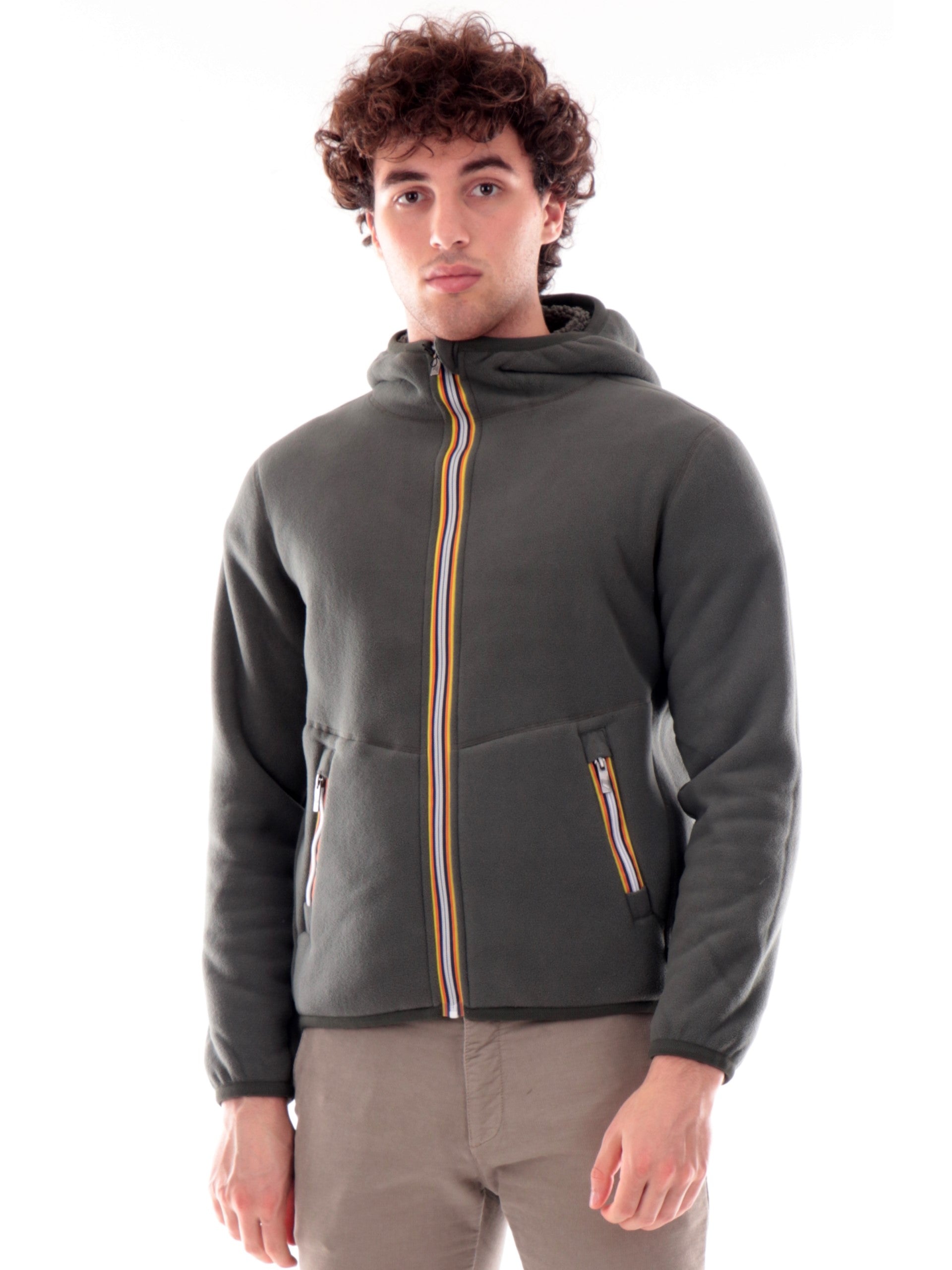 Giubbino K-Way verde da uomo reversibile Jack Sherpa Polar. Questo giubbino K-Way verde reversibile è caratterizzato da cappuccio fisso, chiusura centrale full zip, due tasche laterali con zip, polsini e fondo elasticizzati. Questo giubbino reversibile da uomo verde K-Way è realizzato da una parte in pile e da un lato è realizzato da un tessuto eco teddy, questo giubbino caldo, soffice ed avvolgente al tatto è perfetto per la stagione invernale