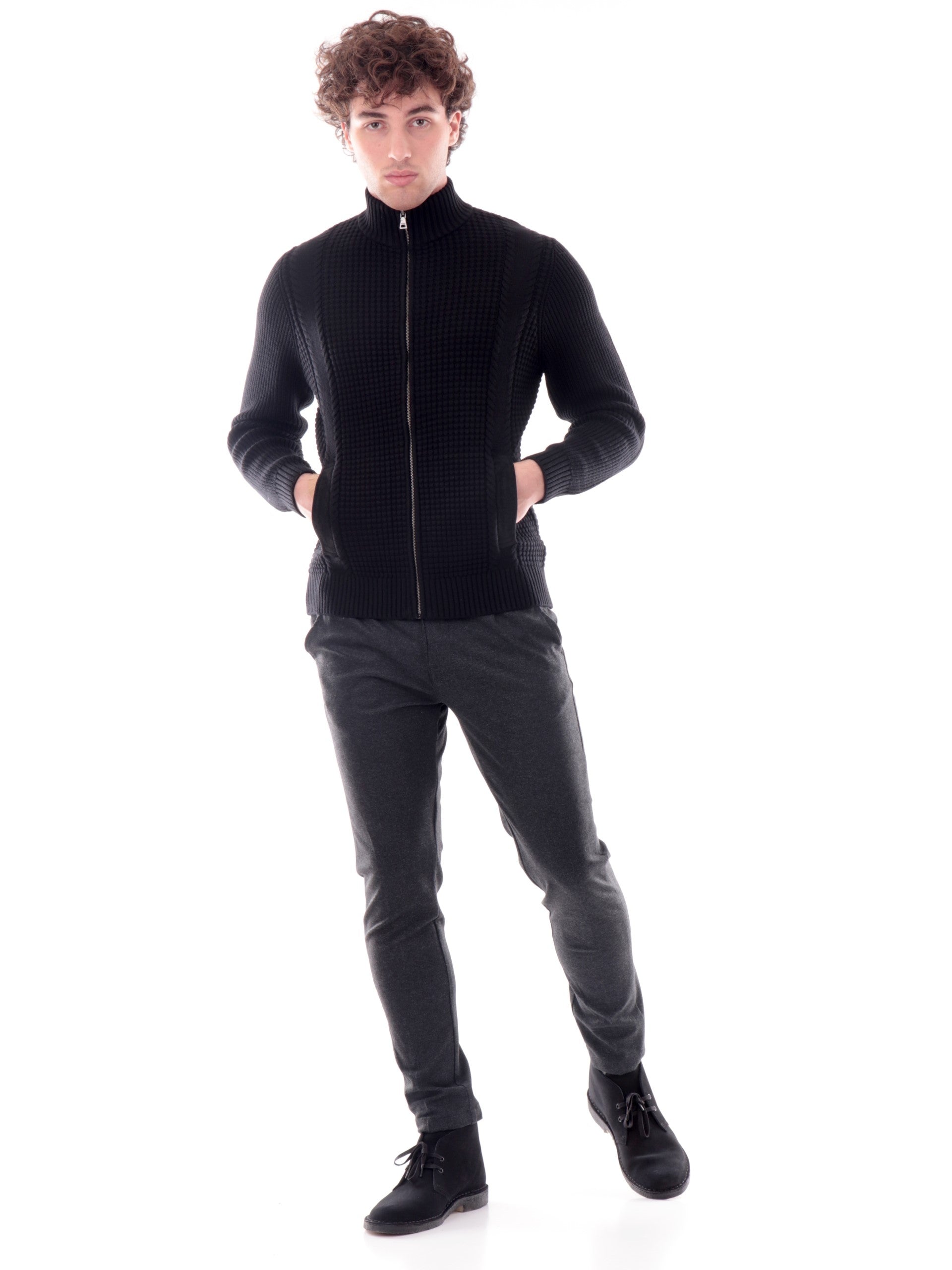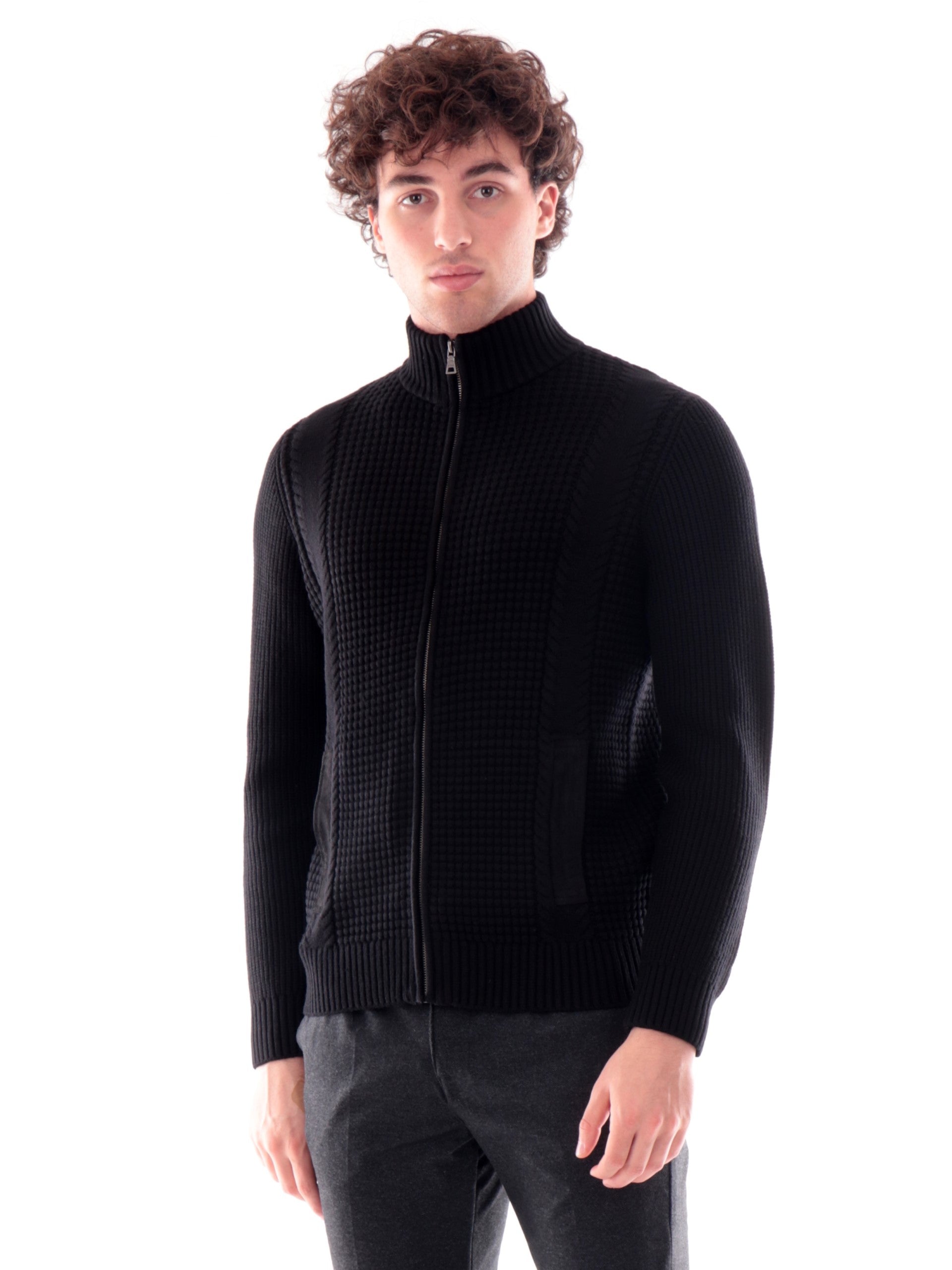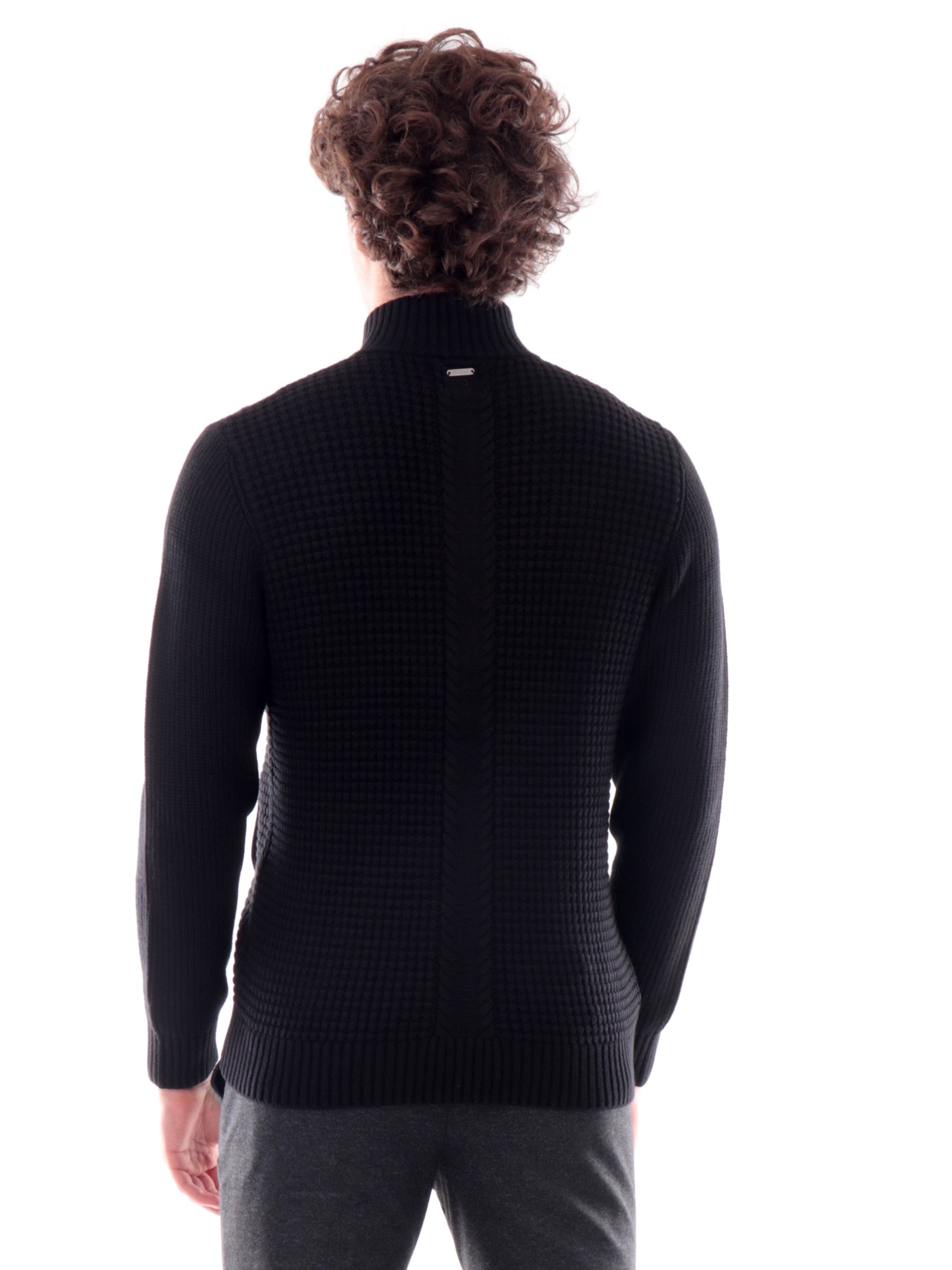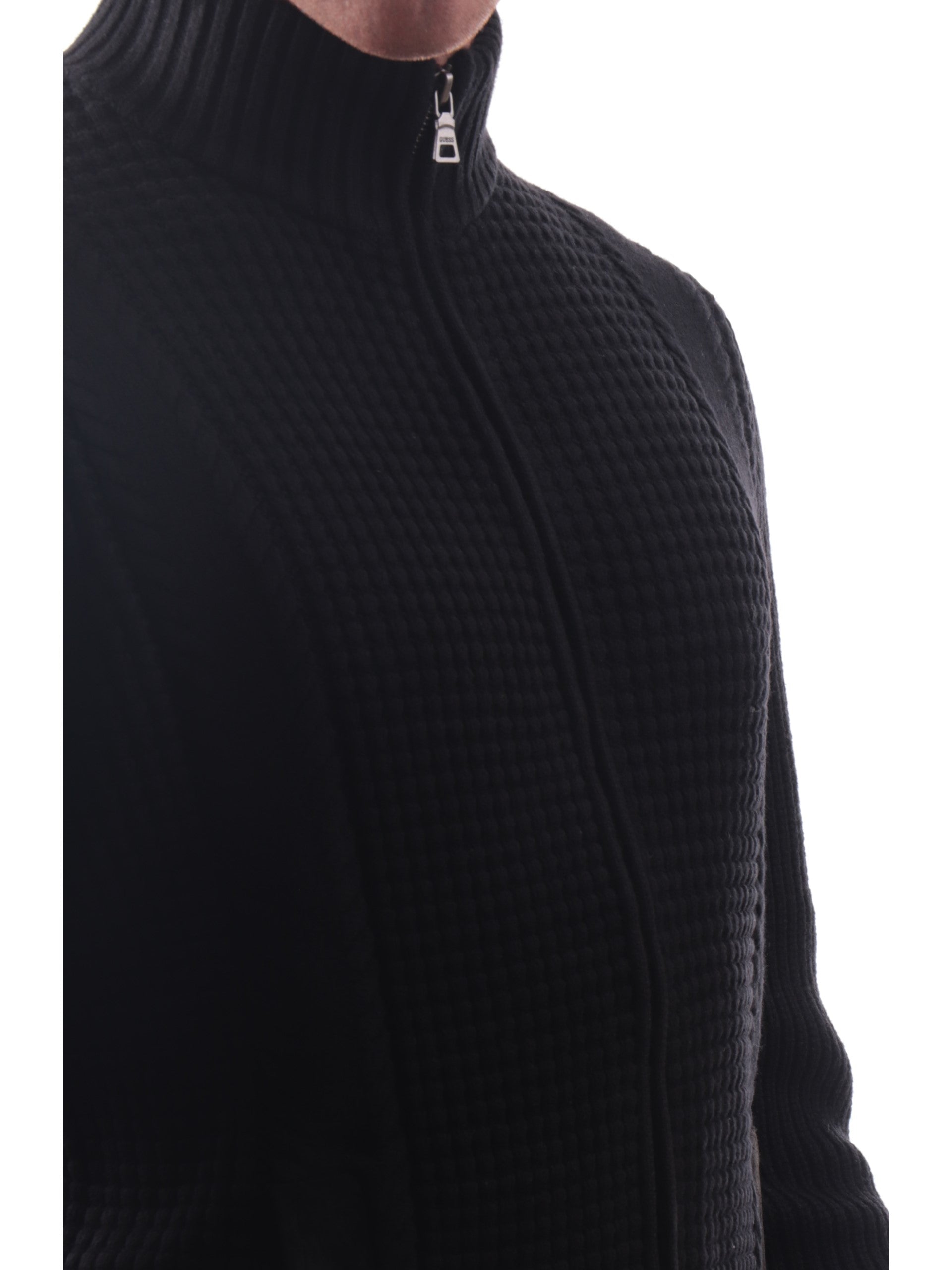 Maglione Guess nero da uomo con cerniera trama Waffle M5BR40Z2ZK2