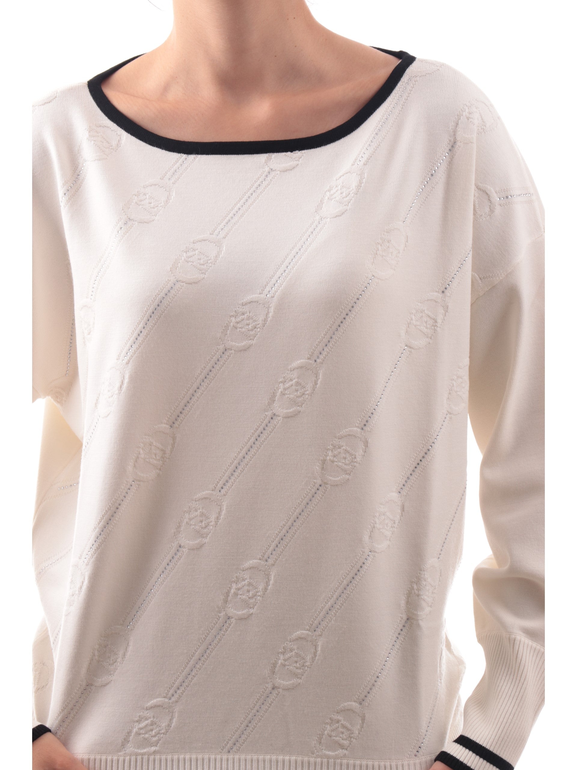 Maglione Liu Jo bianco girocollo da donna con strass TF5206MS63L