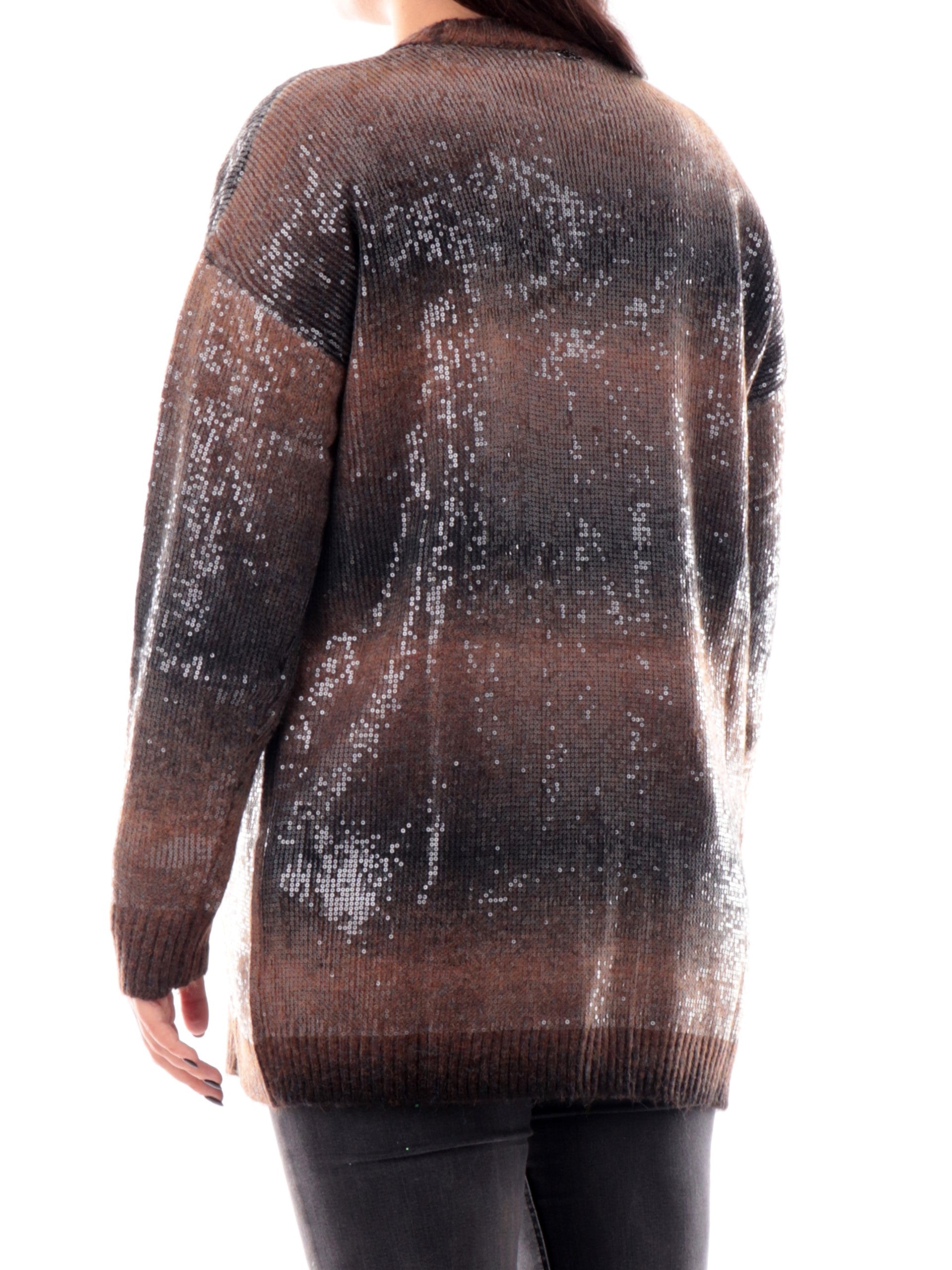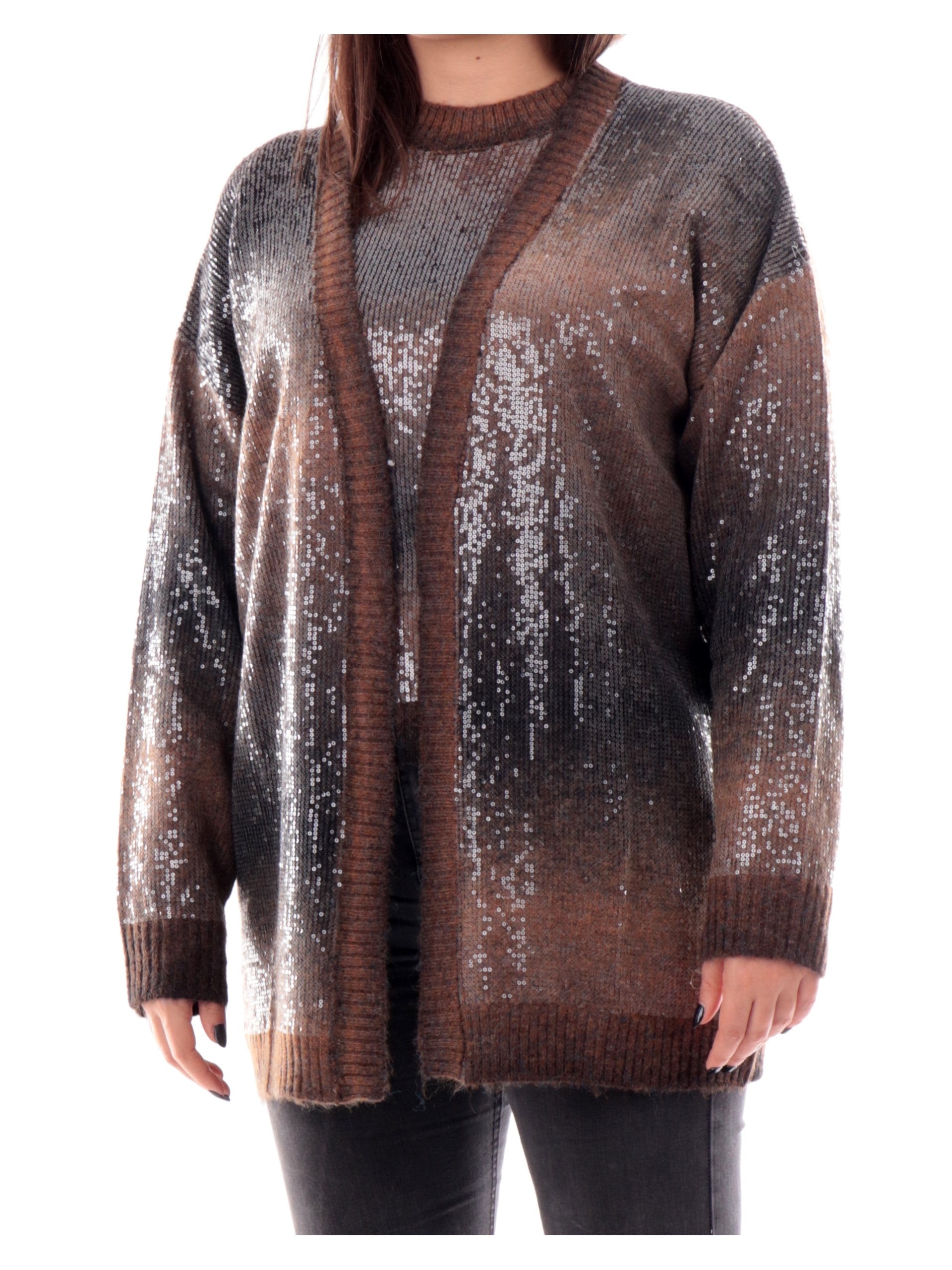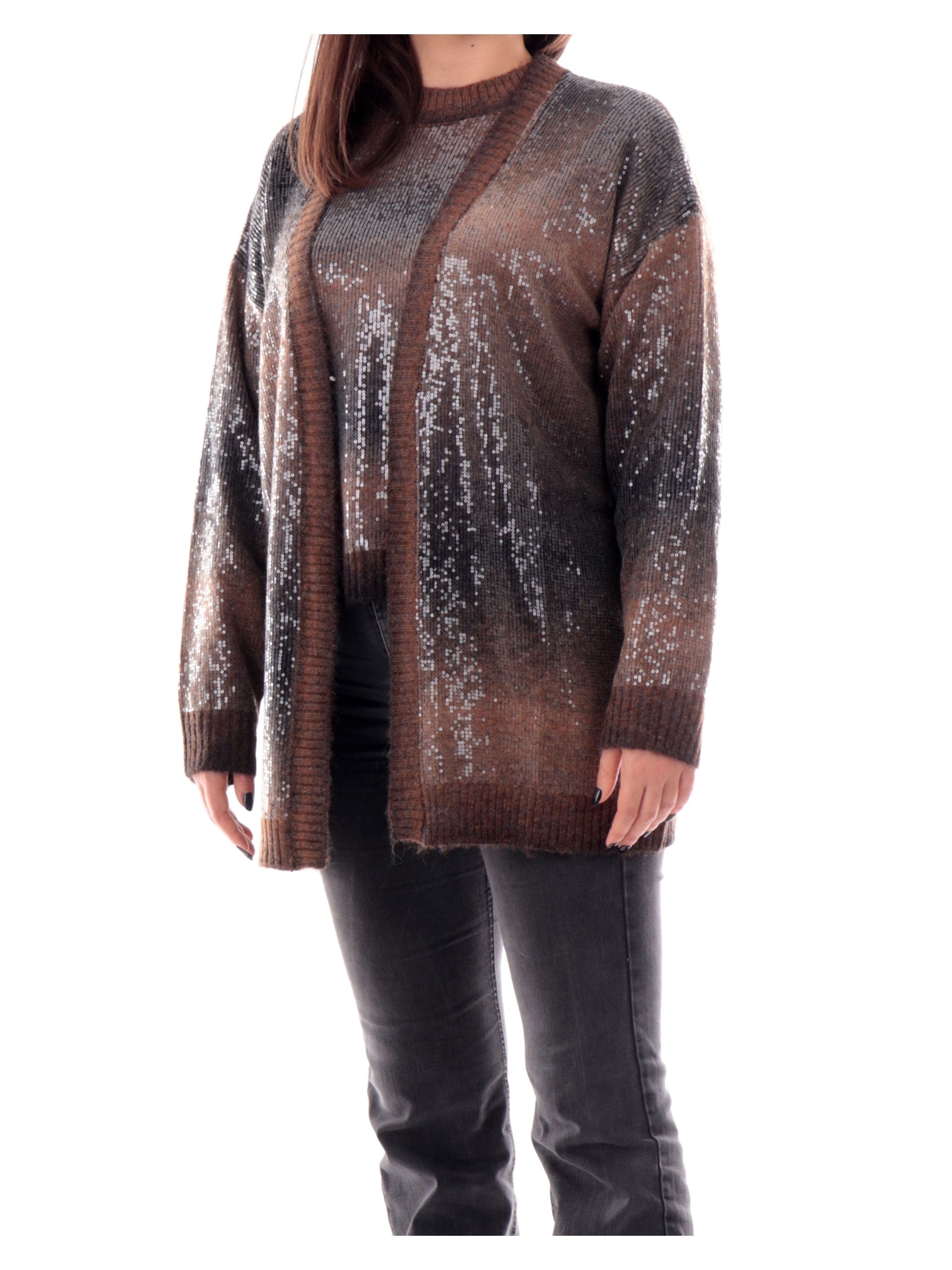 Maglione lungo cardigan sfumato con pailletes marrone Liu Jo MF5248MA14RS9472