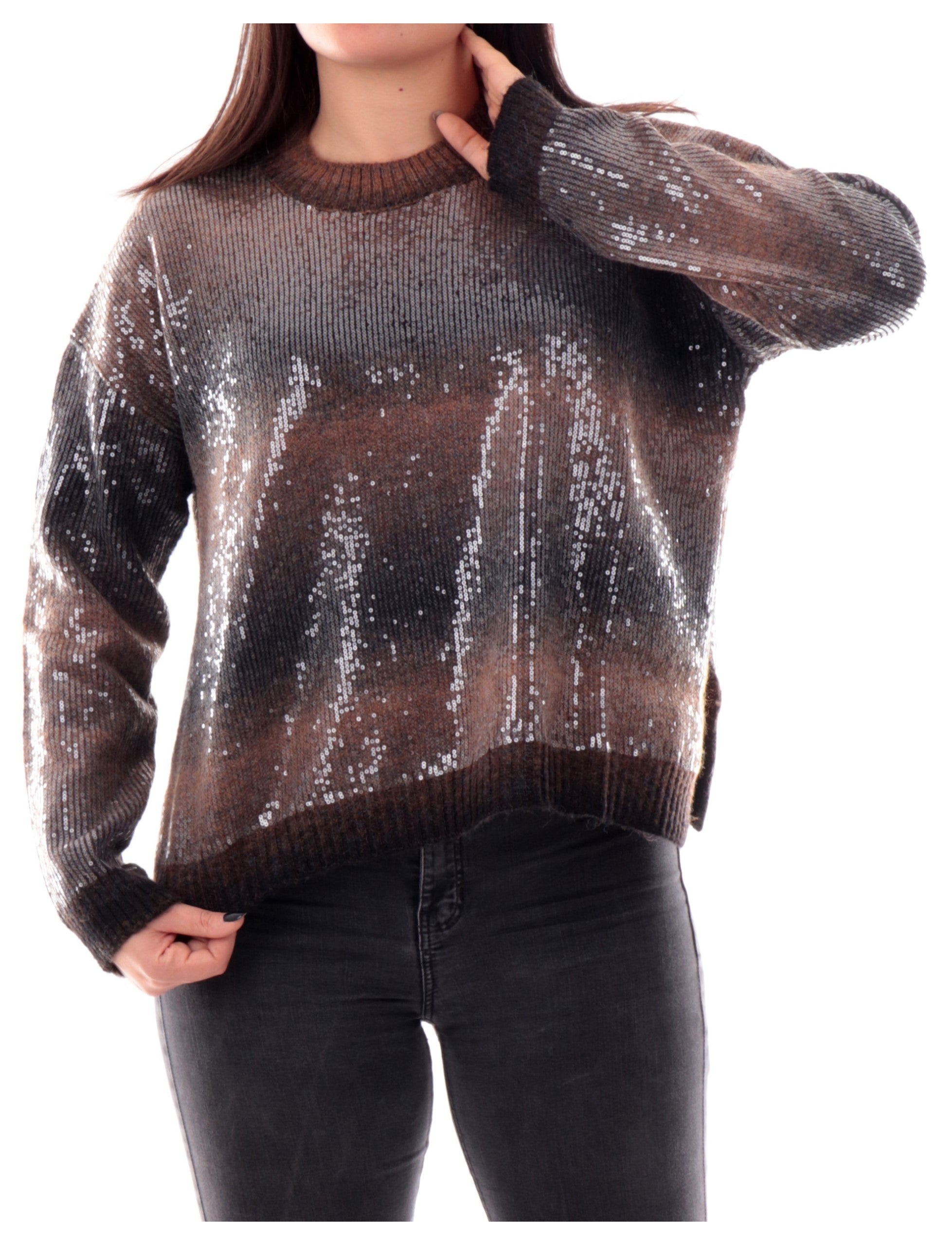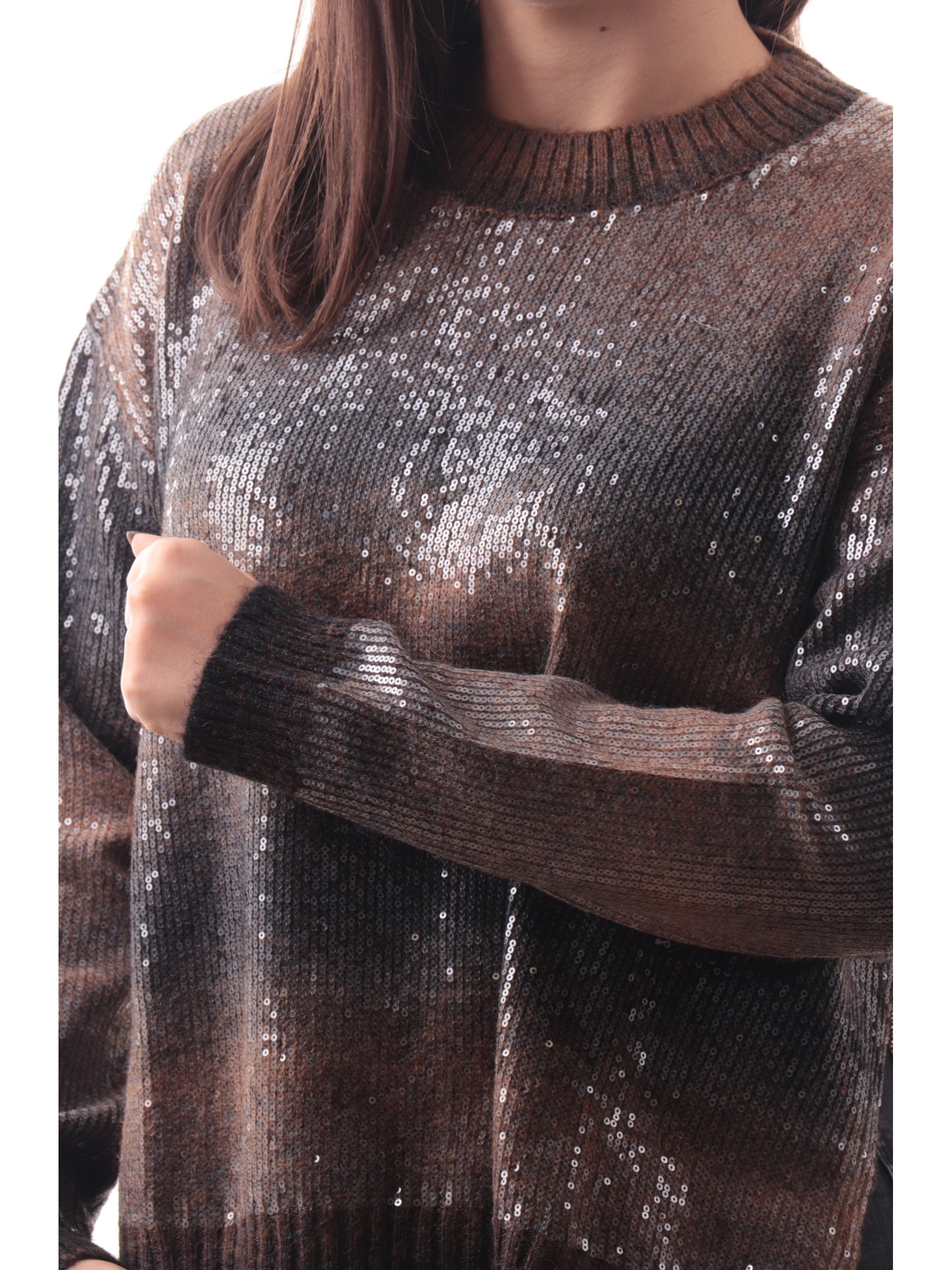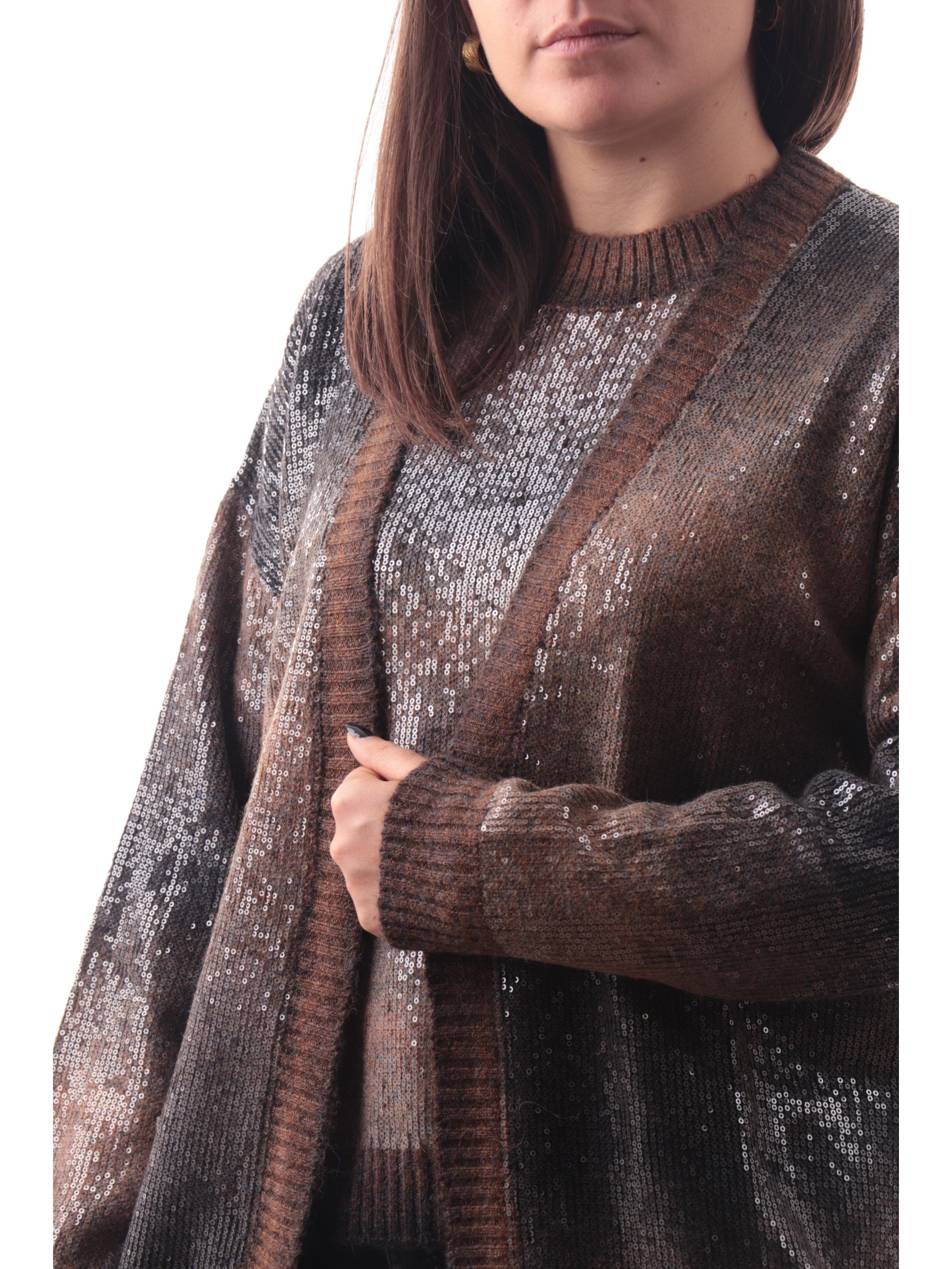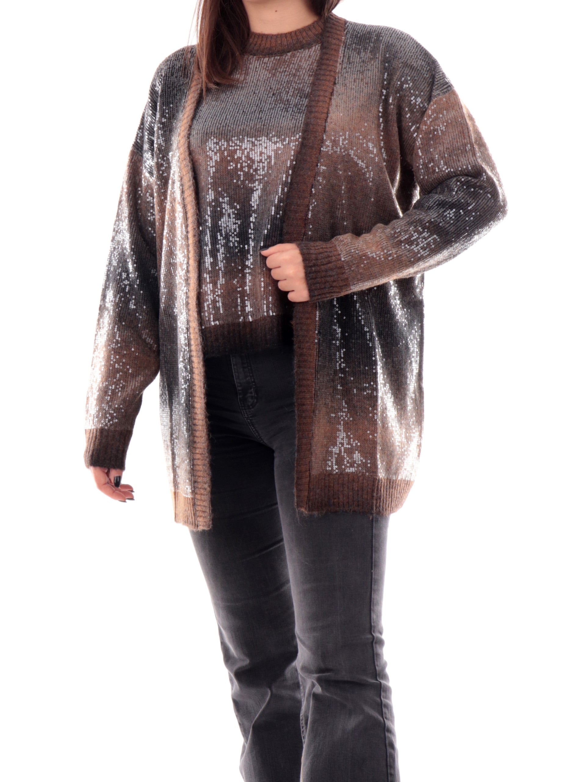 Maglione lungo cardigan sfumato con pailletes marrone Liu Jo MF5248MA14RS9472
